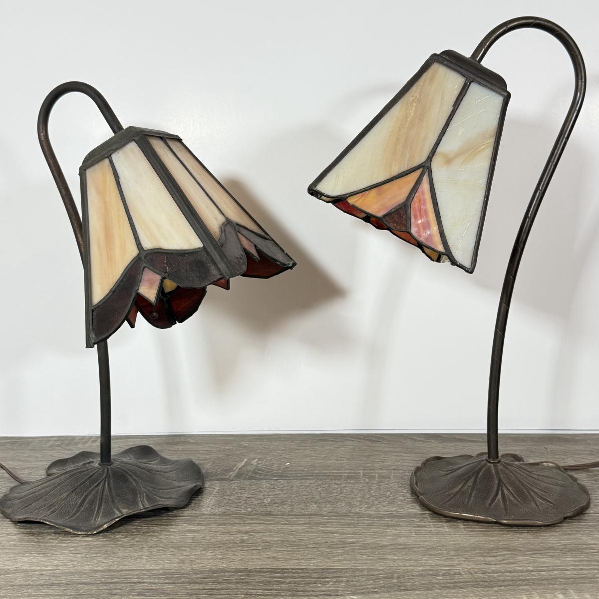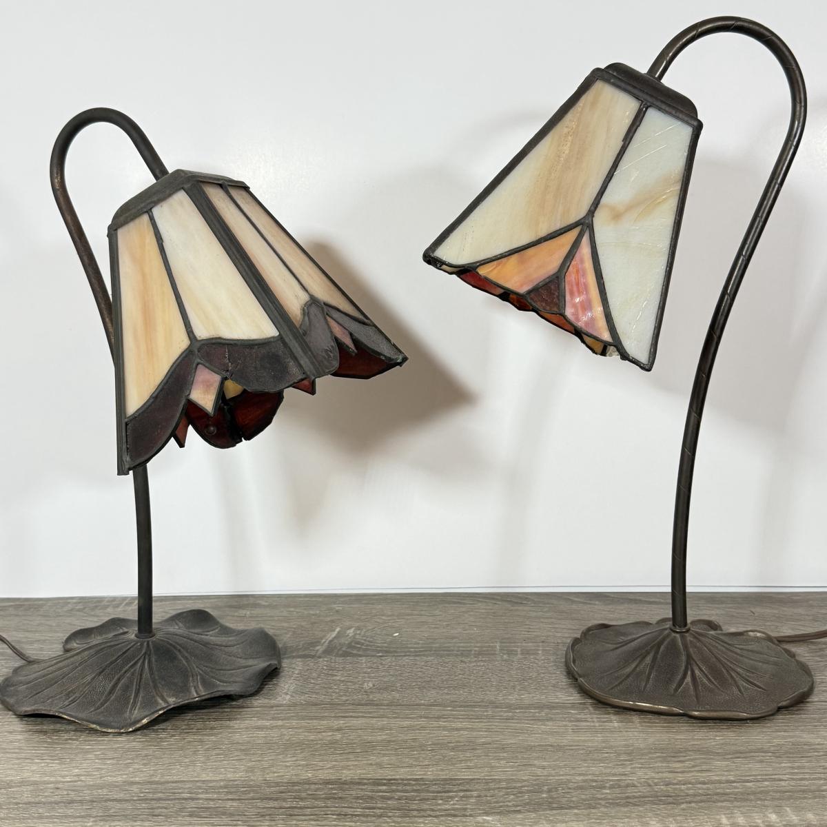 LOT 111L: Pair of Vintage Tiffany Style Glass Gooseneck Lamps