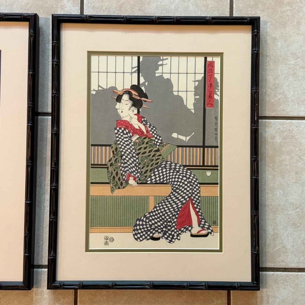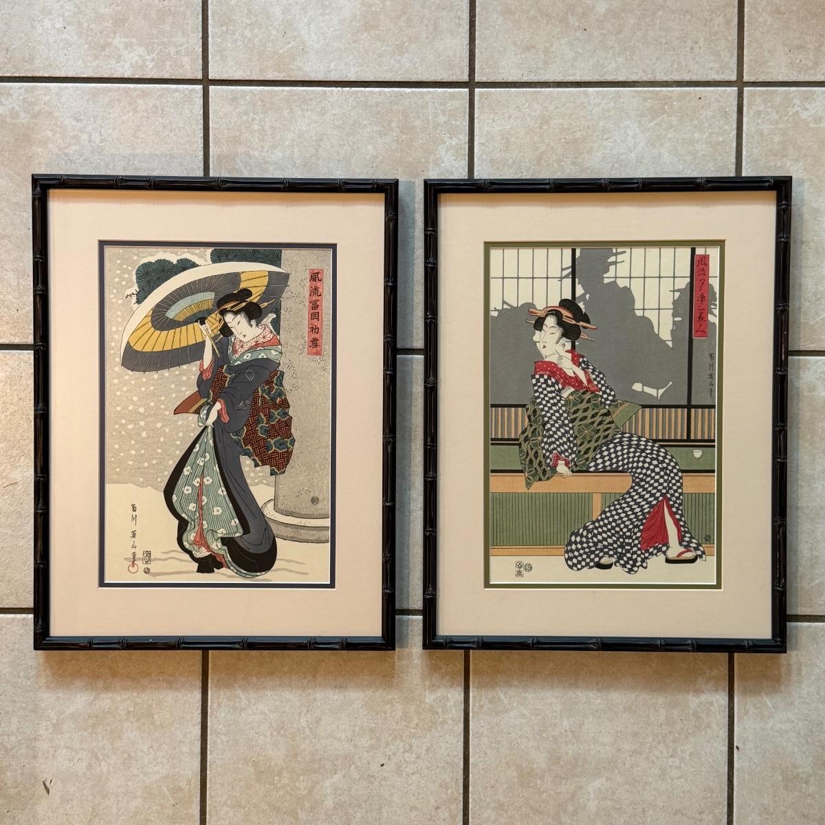 LOT 9L: Two Framed Prints by Kikugawa Eizan
