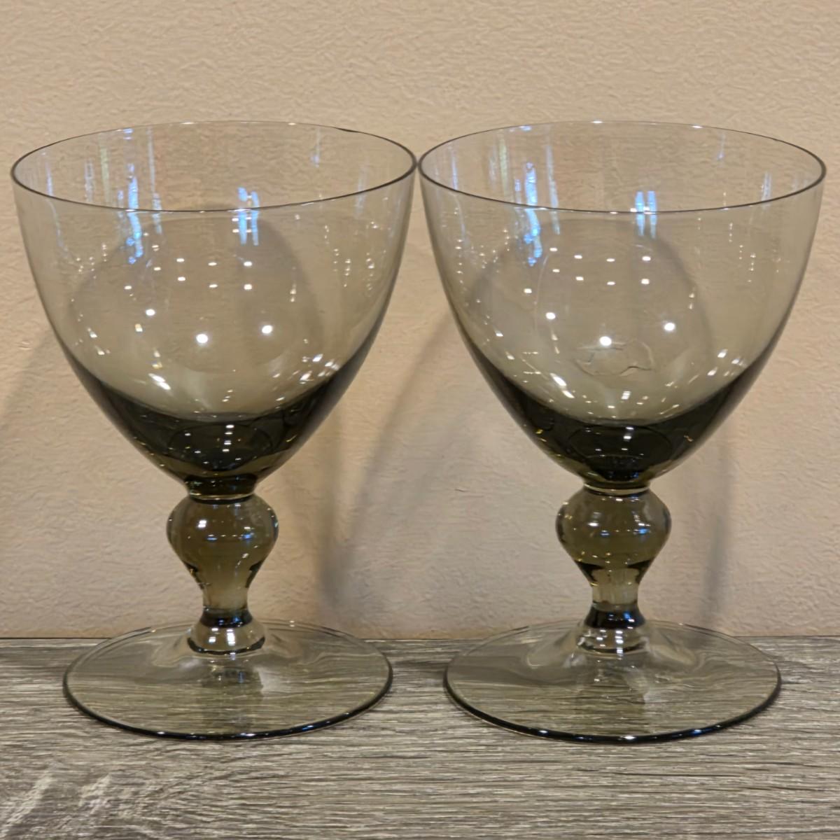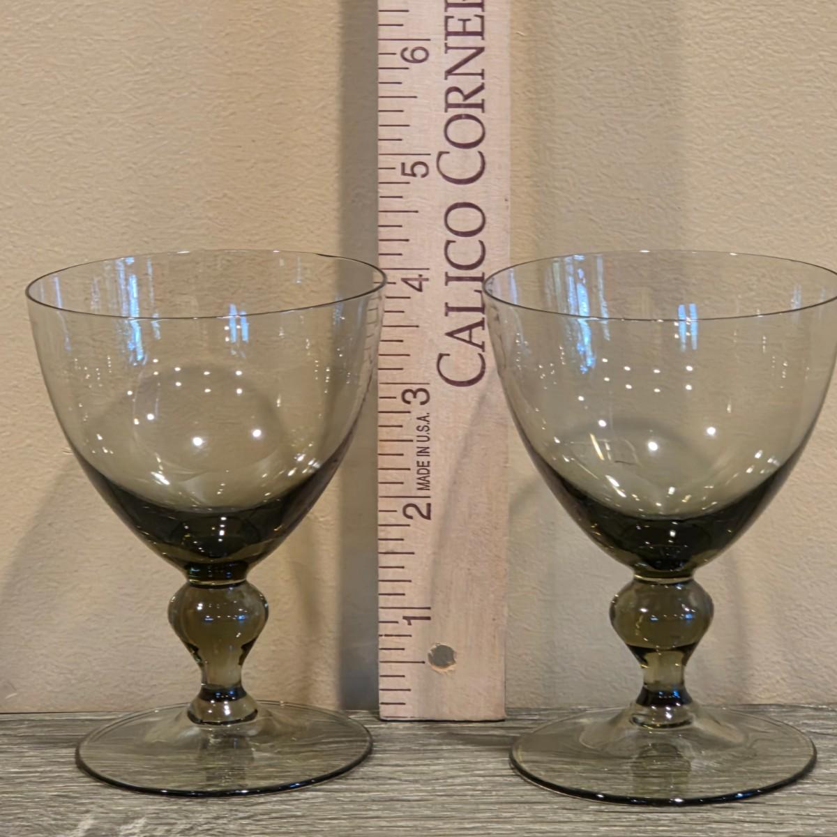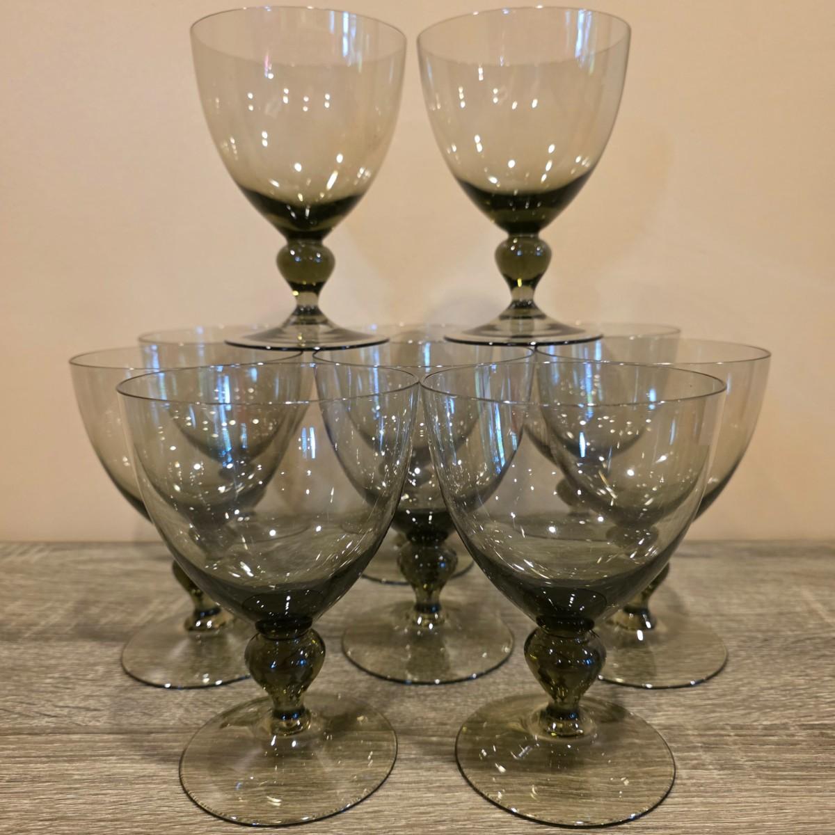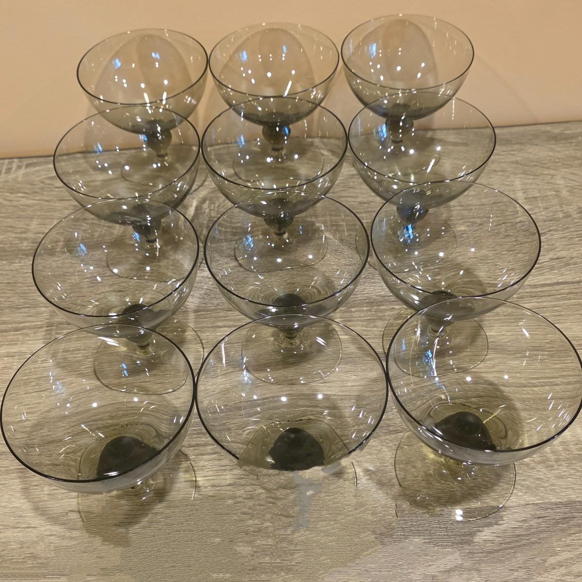 LOT 26K: Incomplete Set Of Circa 1980's, Smokey Colored Glasses, 12 Champagne Goblets, 10 Wine Goblets, & 2 Small Goblets