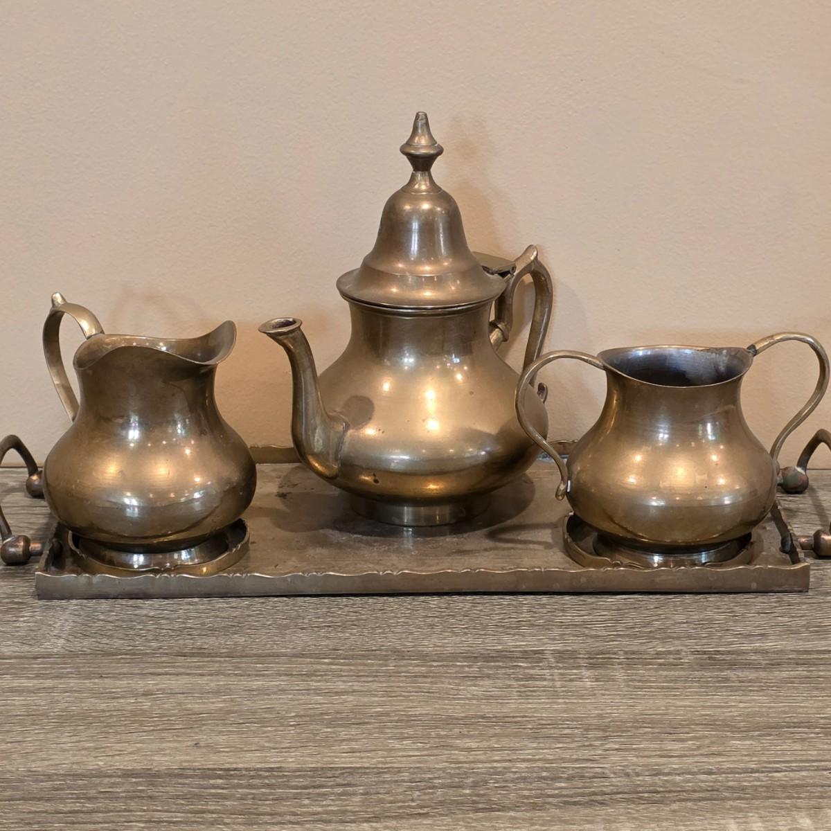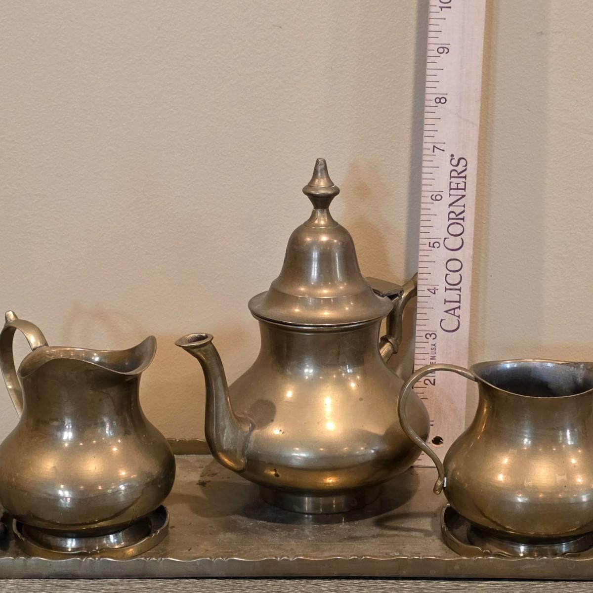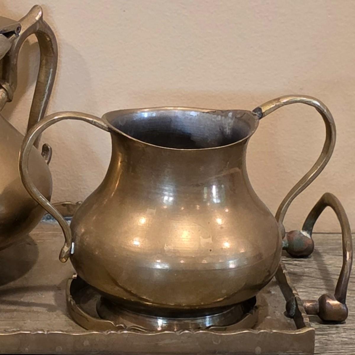 LOT 38K: Mid Century Brass Tea Pot, Creamer & Sugar Bowl With Tray
