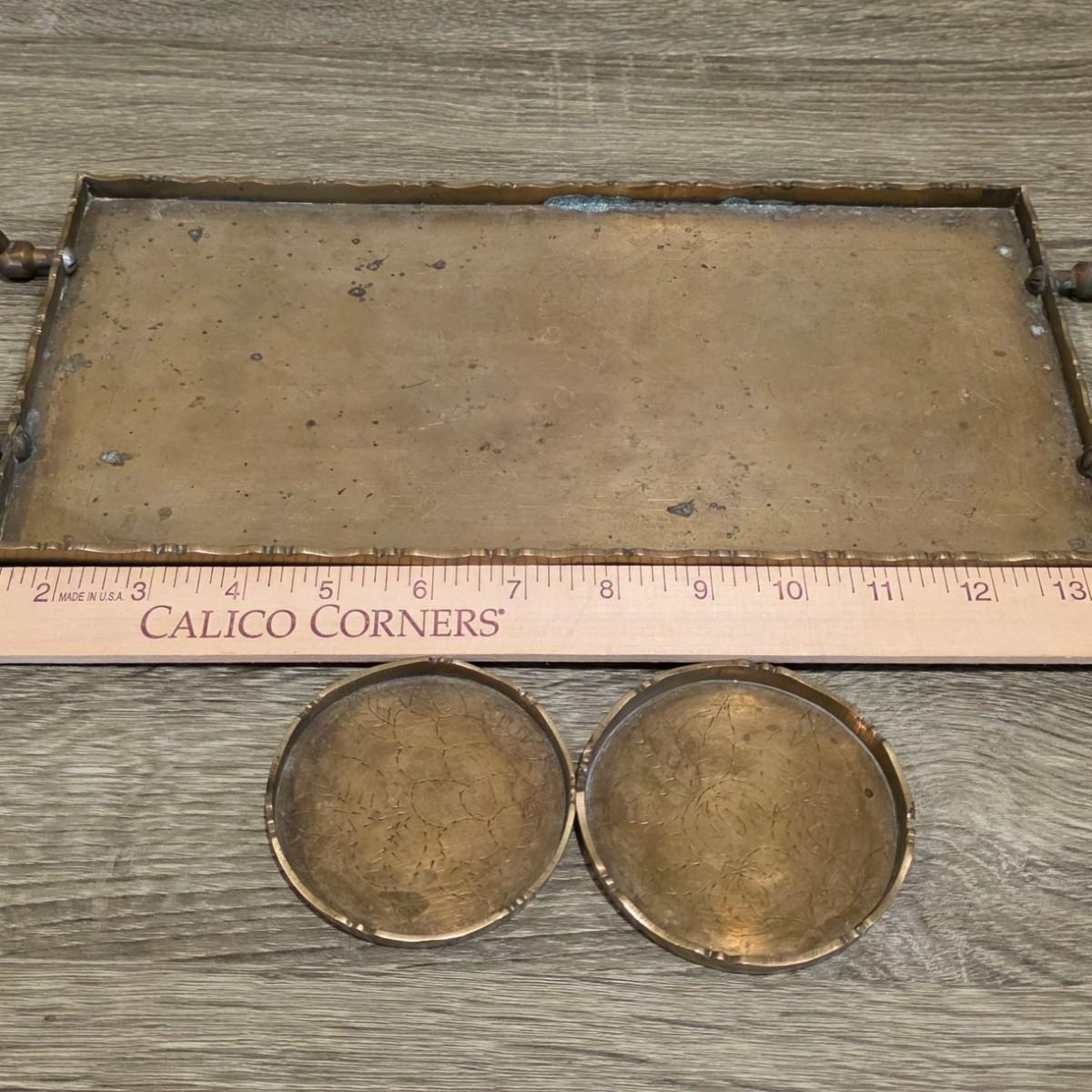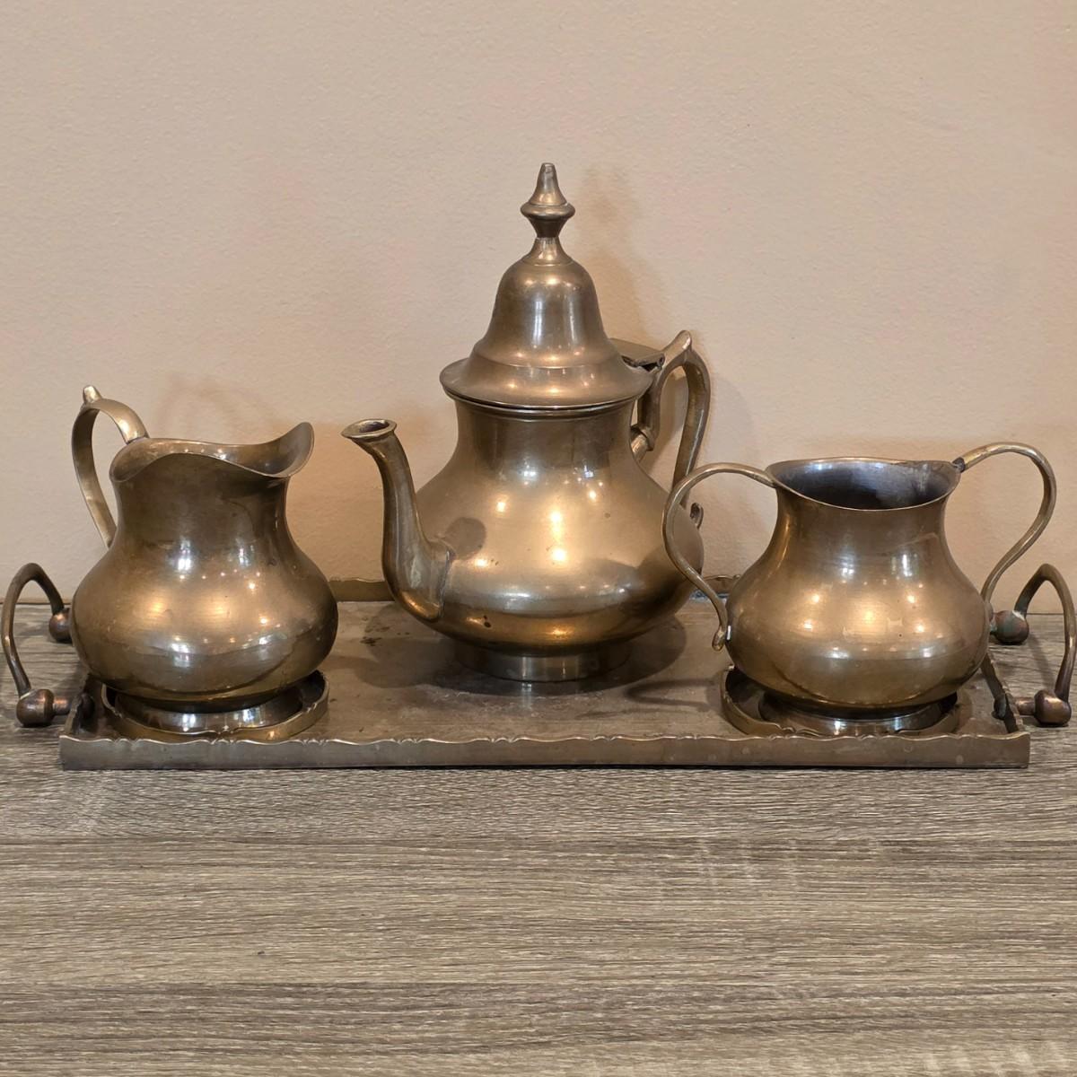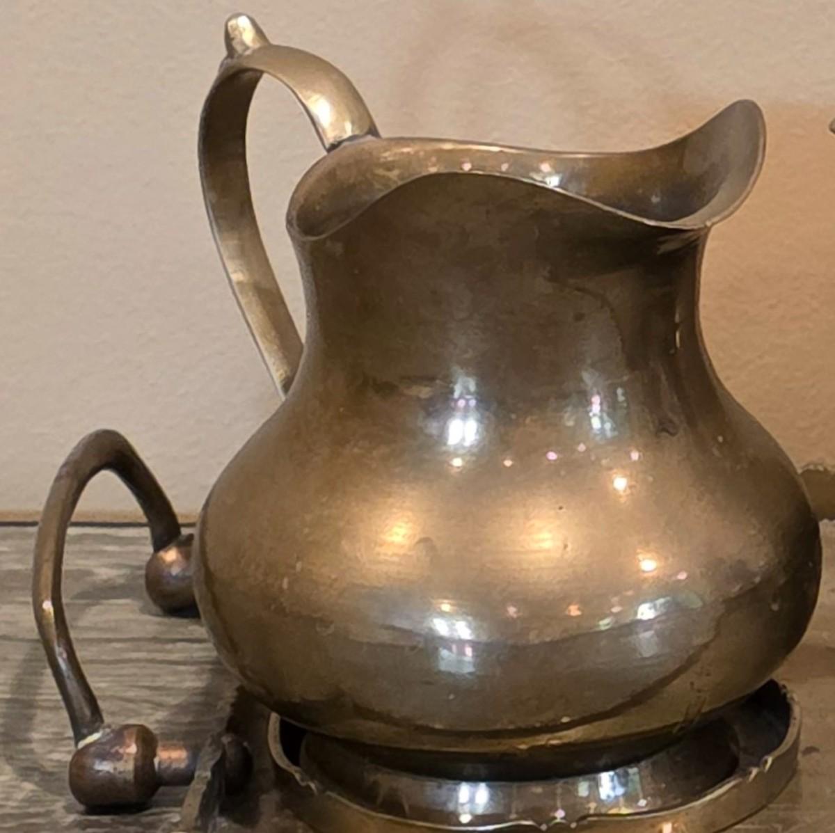 LOT 38K: Mid Century Brass Tea Pot, Creamer & Sugar Bowl With Tray