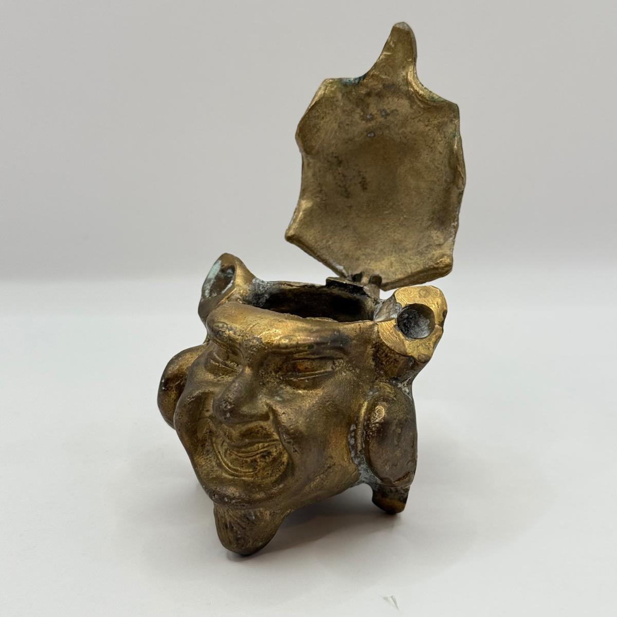 LOT 62D: Antique / Vintage Grotesque Devil Imp Gargoyle Demon Figural Brass Inkwell