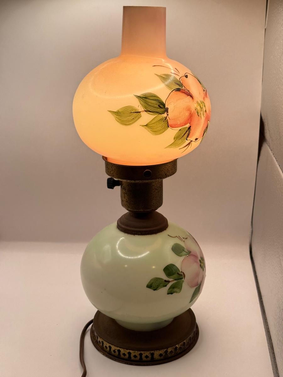 LOT 75K: Vintage Hand Painted 14” Electric Hurricane Lamp