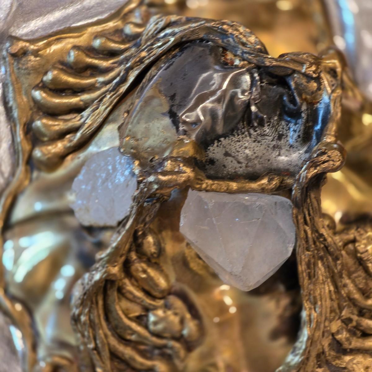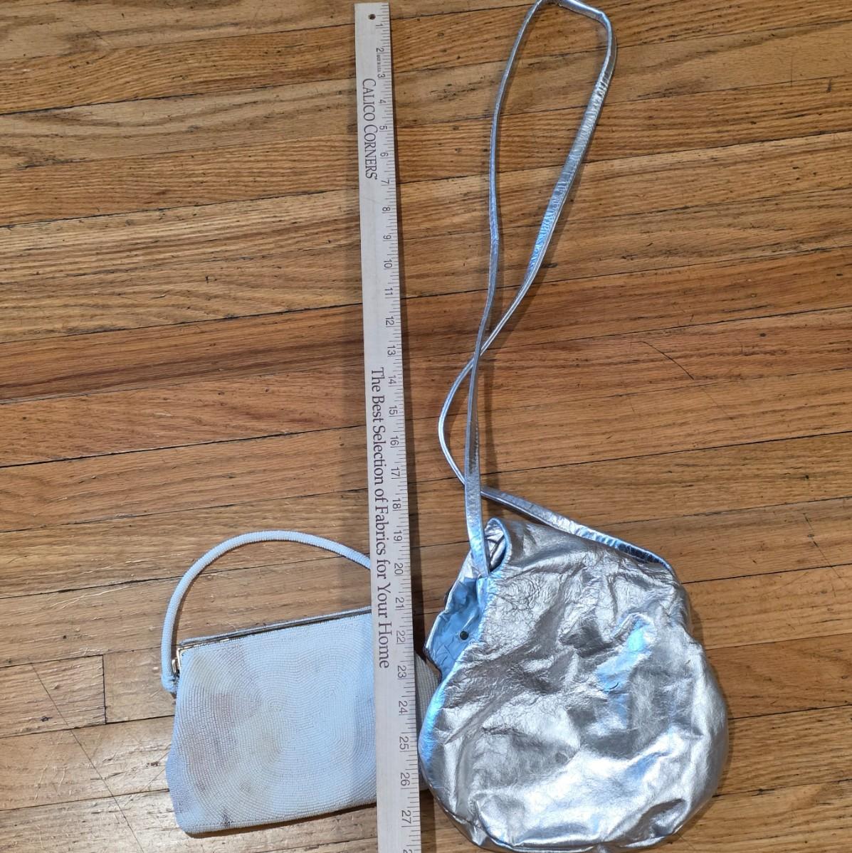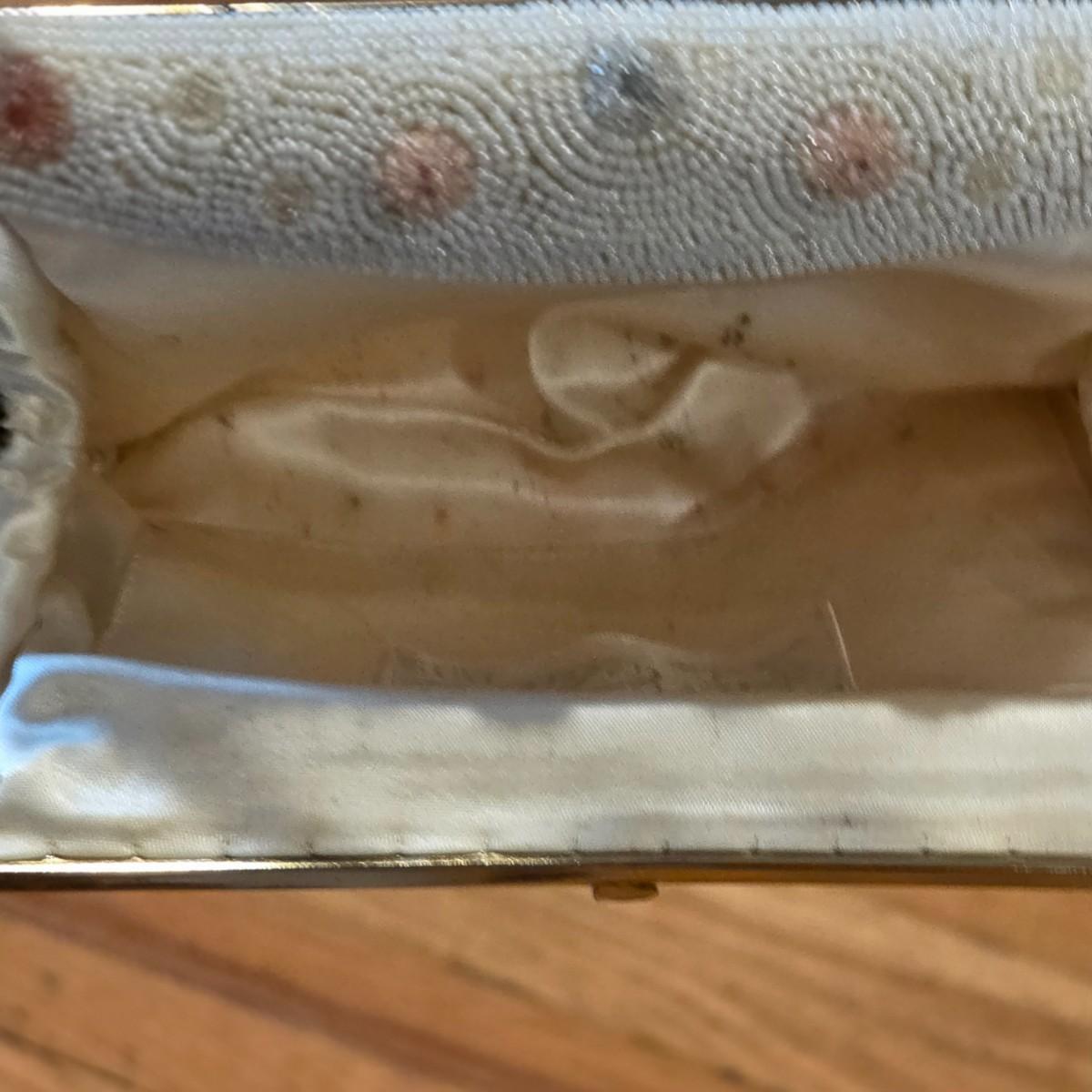 LOT 85K: Vintage 1980's Brass Metal/Crystals Leather Metallic Purse & Beaded Charlet Bag Made In Japan