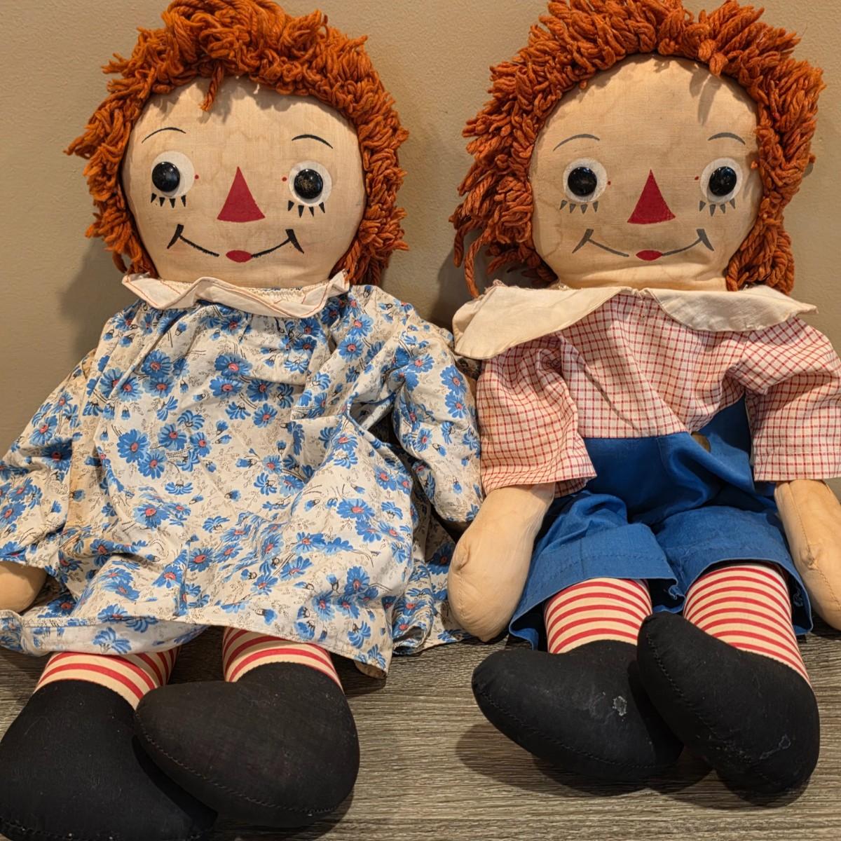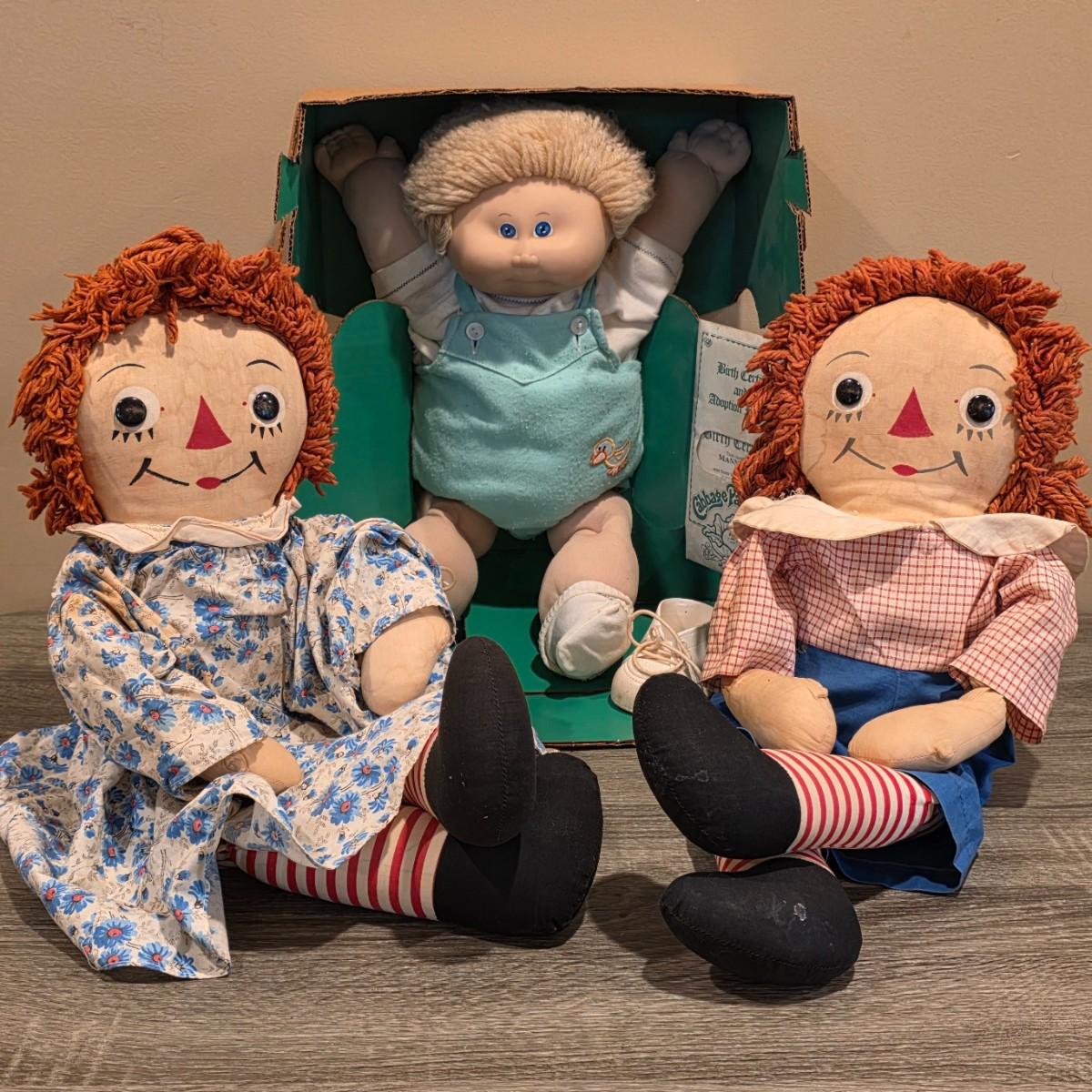LOT 86K: Vintage Raggedy Ann & Andy Ragdolls & 1980's Coleco Cabbage Patch Kid Doll "Mannie Willie:
