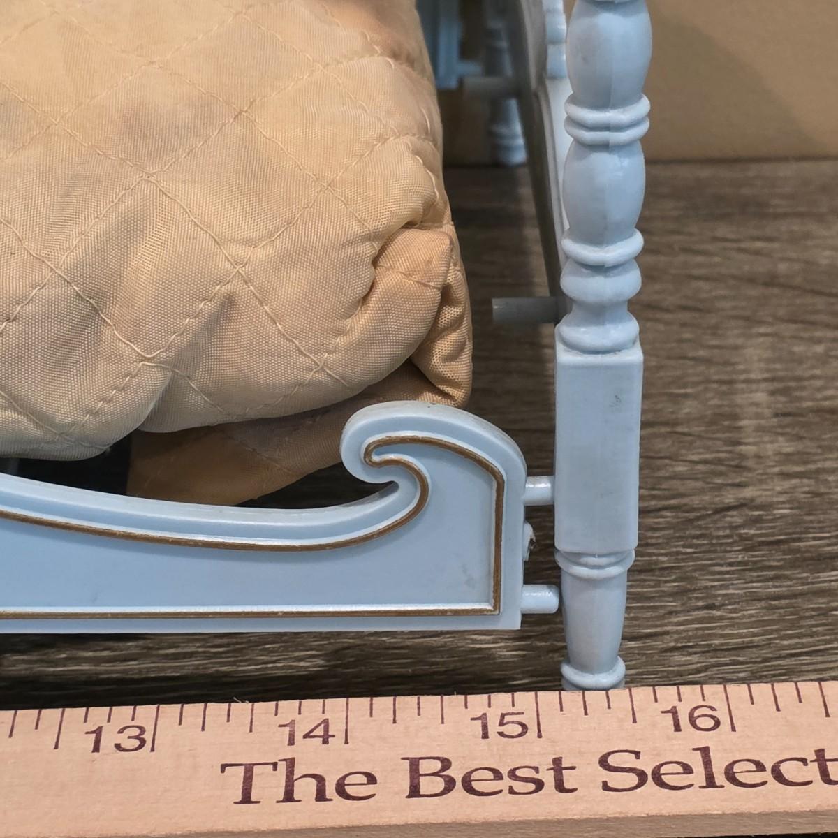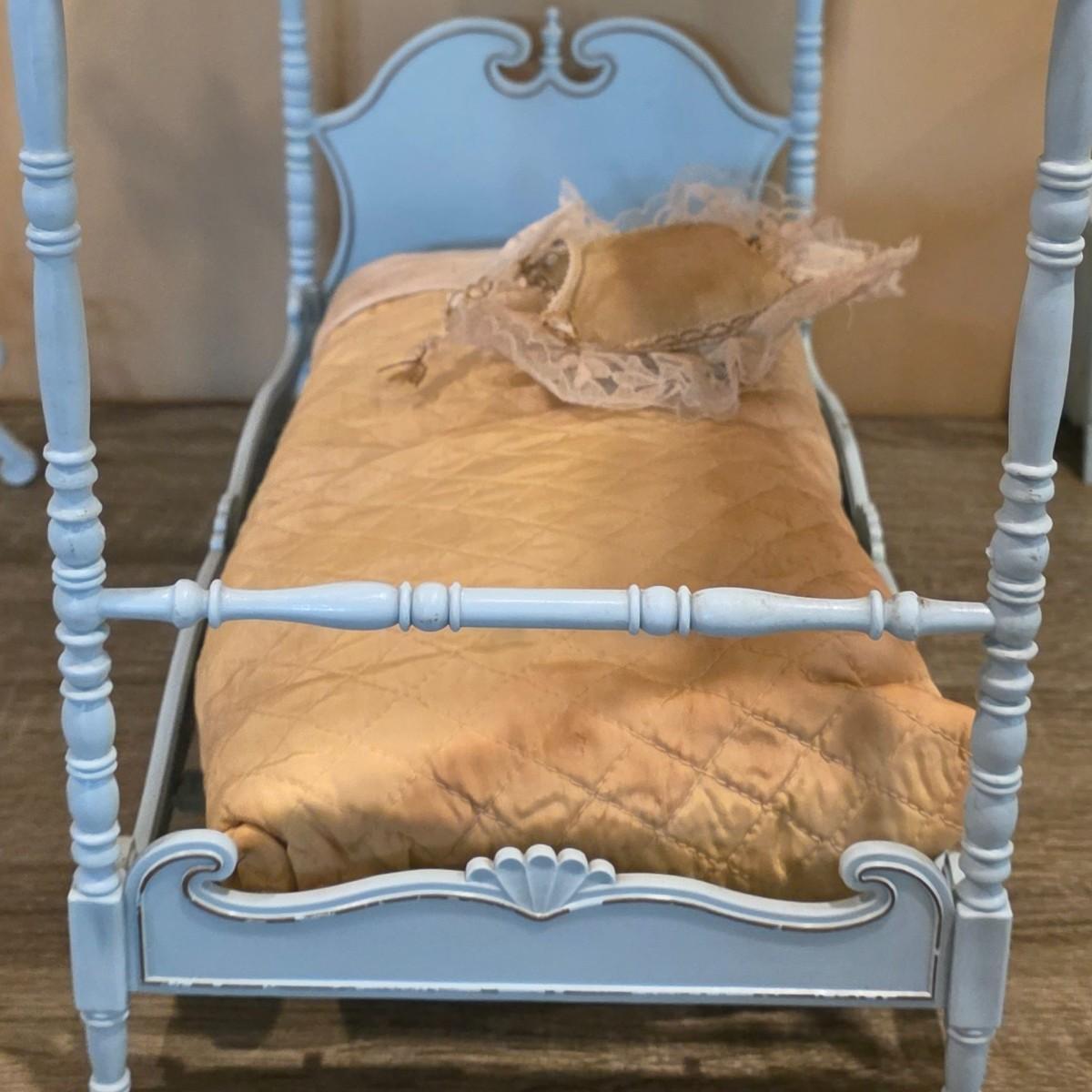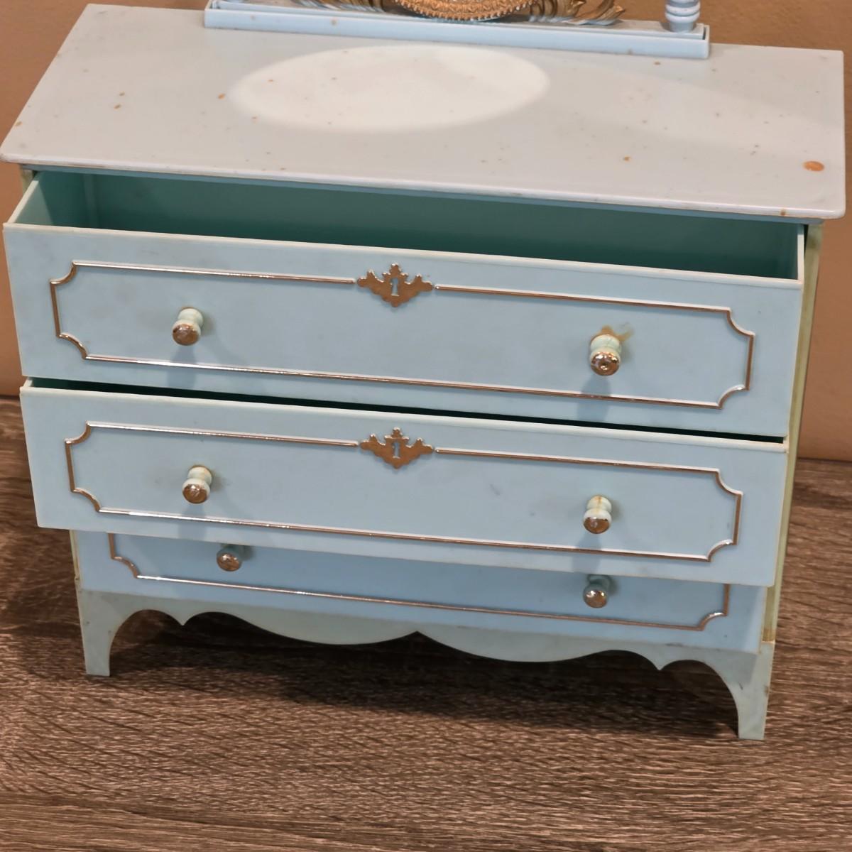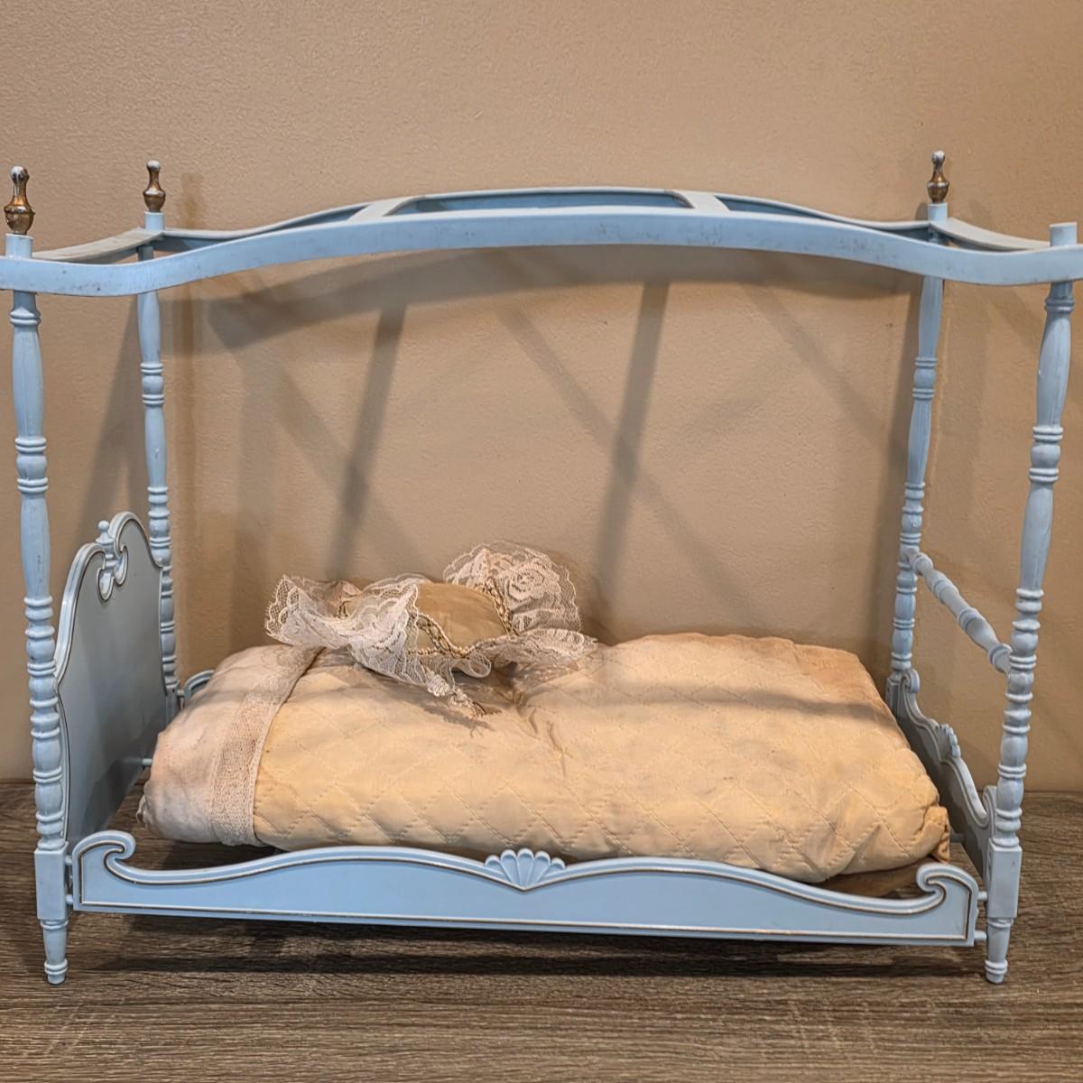 LOT 90K: Vintage Italian "Serie Milady" Doll Bedroom Furniture, Canopy Top Bed, Nightstand W/Lamp, Coat Rack, Dresser W/Mirror, Vanity W/Mirror & Stool W/Accesories & Double Door Armoire
