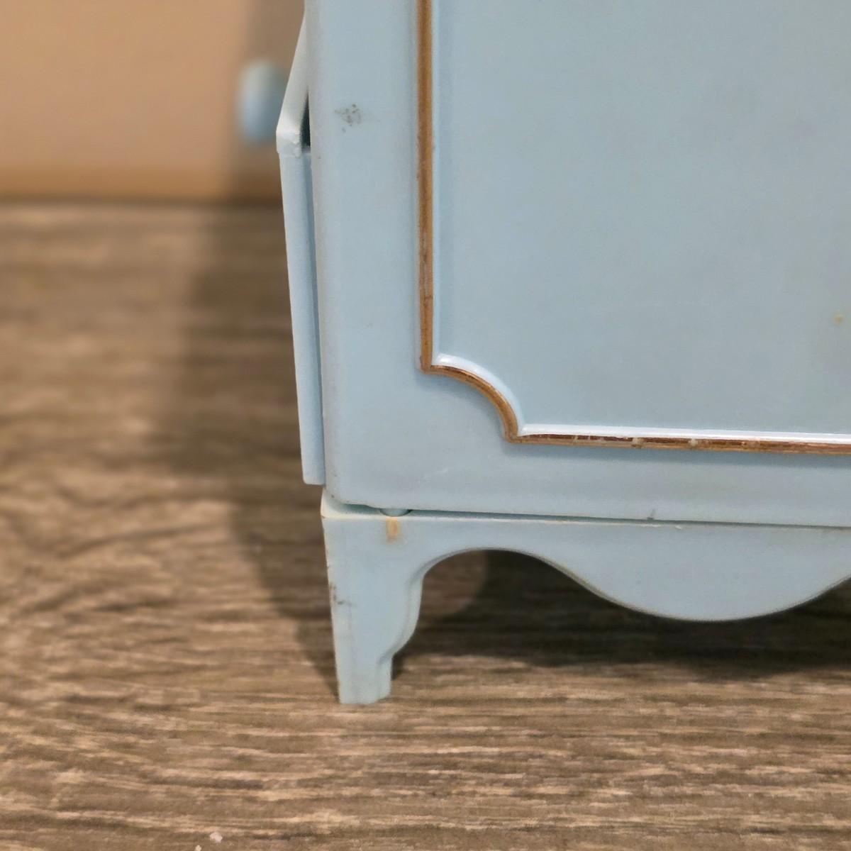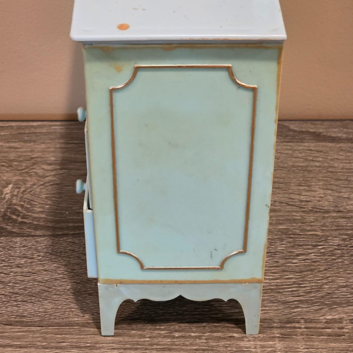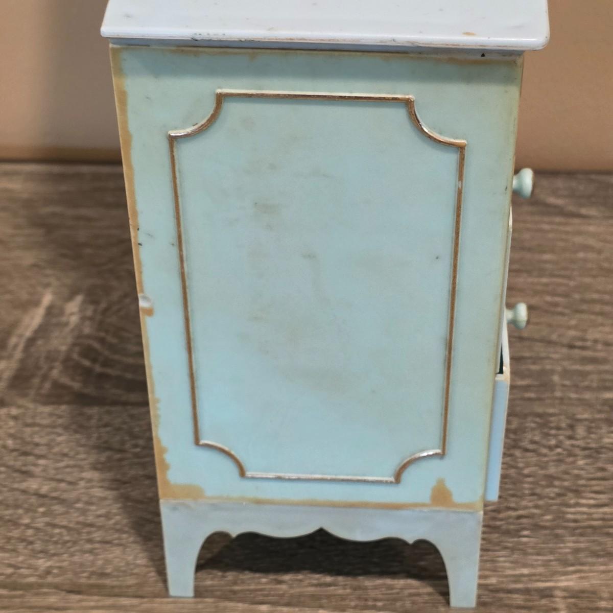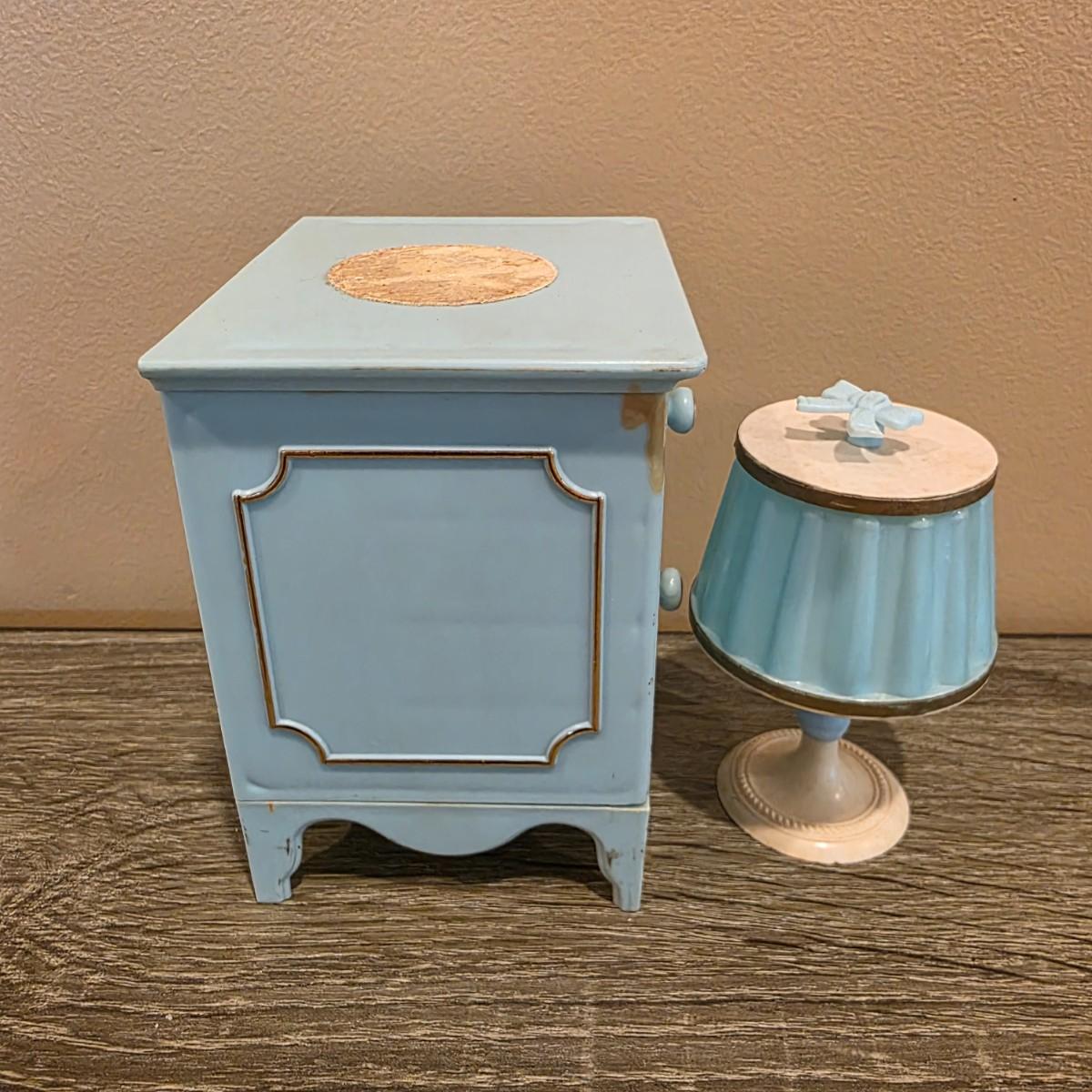 LOT 90K: Vintage Italian "Serie Milady" Doll Bedroom Furniture, Canopy Top Bed, Nightstand W/Lamp, Coat Rack, Dresser W/Mirror, Vanity W/Mirror & Stool W/Accesories & Double Door Armoire