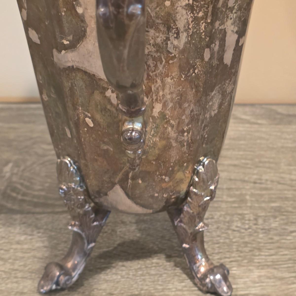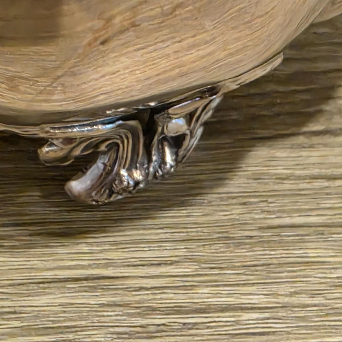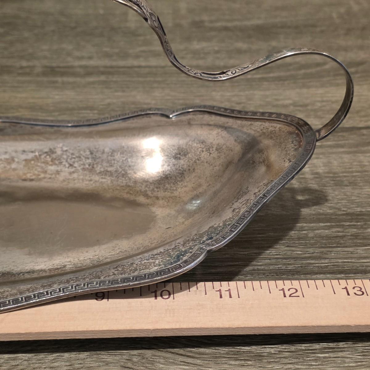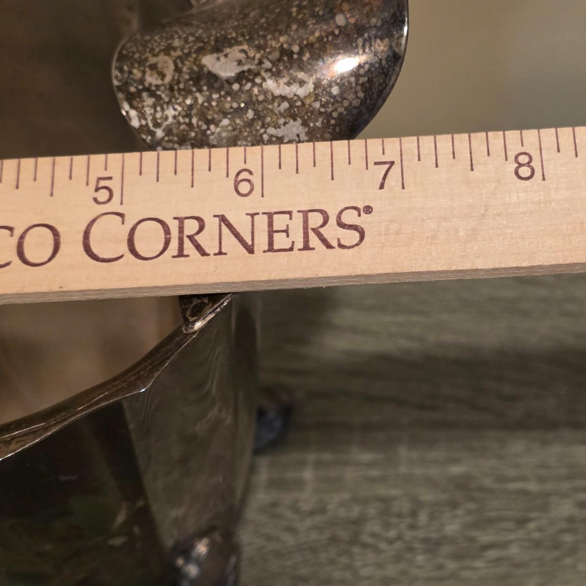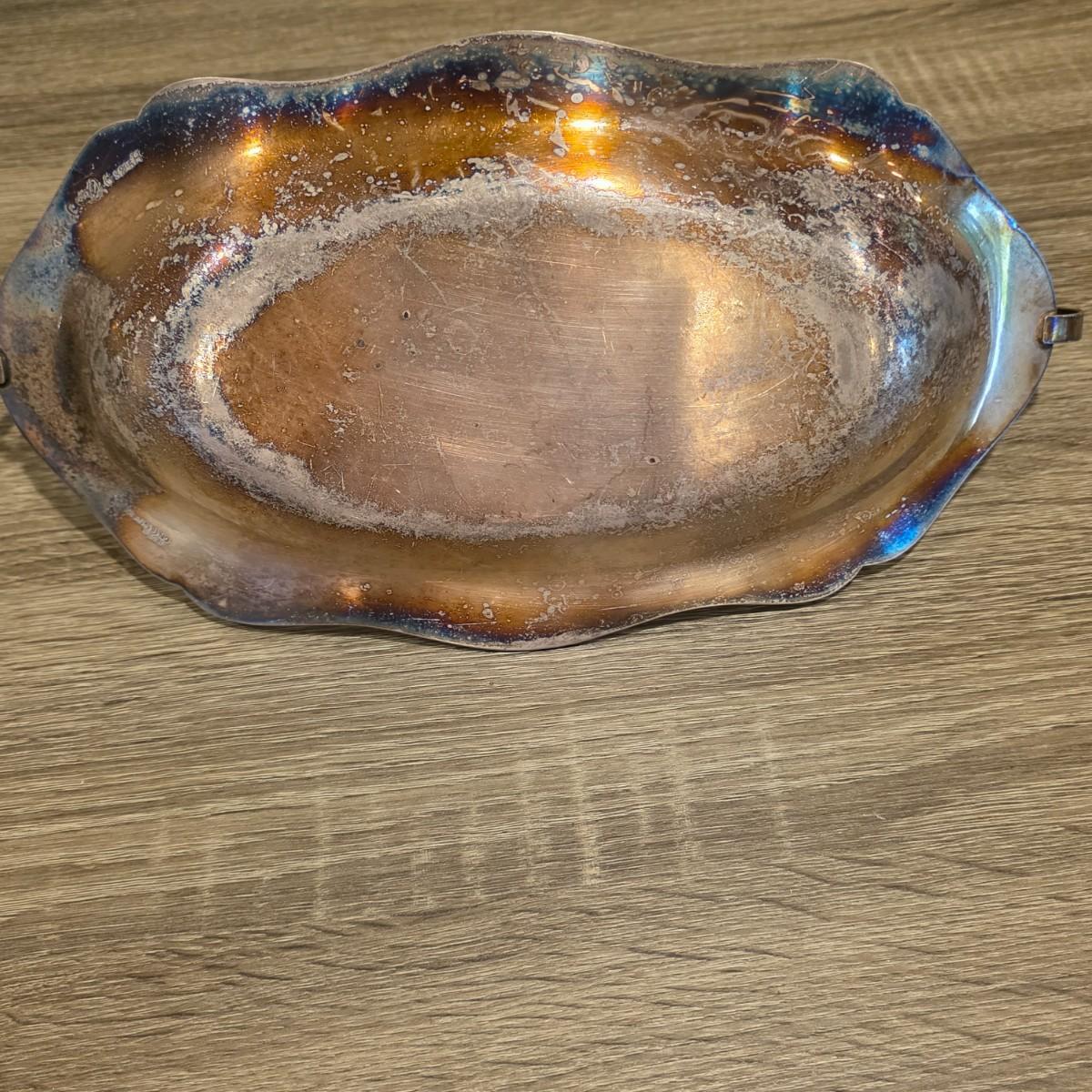LOT 92 W: Vintage Silver Plated Pitcher, Serving Tray, Plate, Bowl & Wooden Handle Chafing Dish W/Jeweled Paper Mache` Fruit
