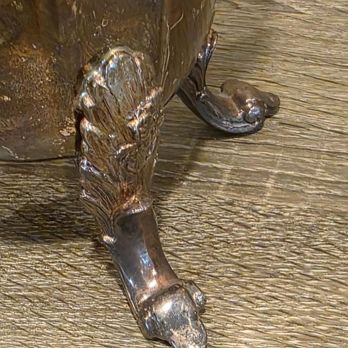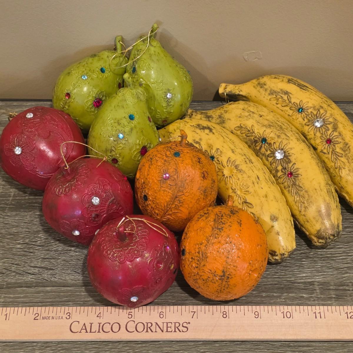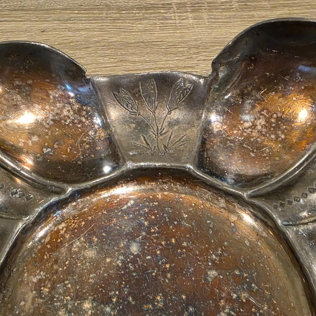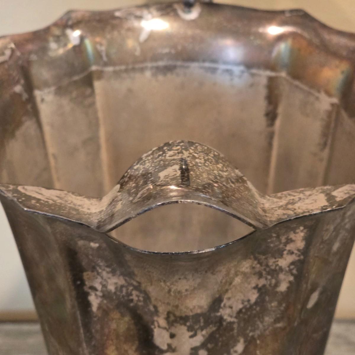 LOT 92 W: Vintage Silver Plated Pitcher, Serving Tray, Plate, Bowl & Wooden Handle Chafing Dish W/Jeweled Paper Mache` Fruit
