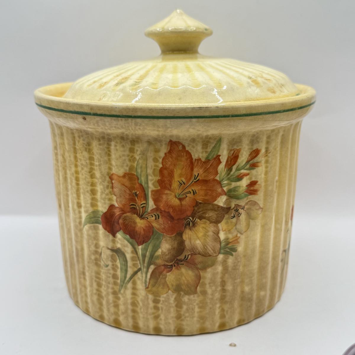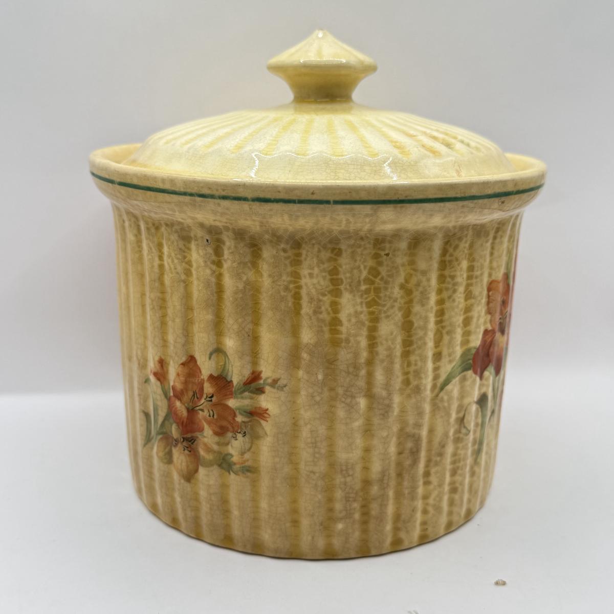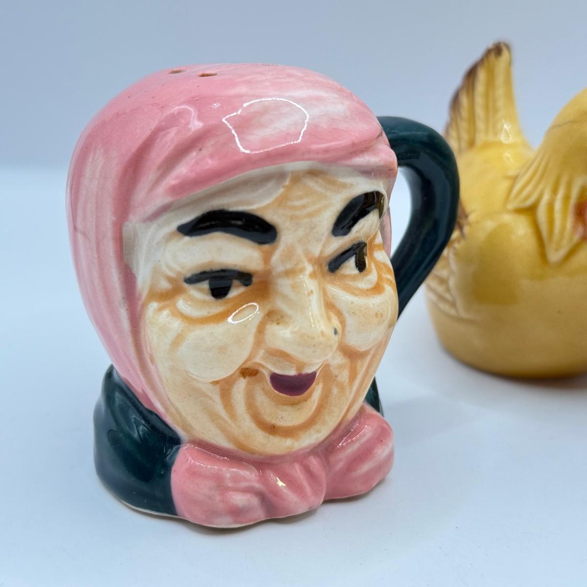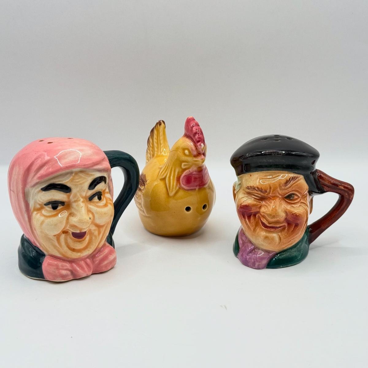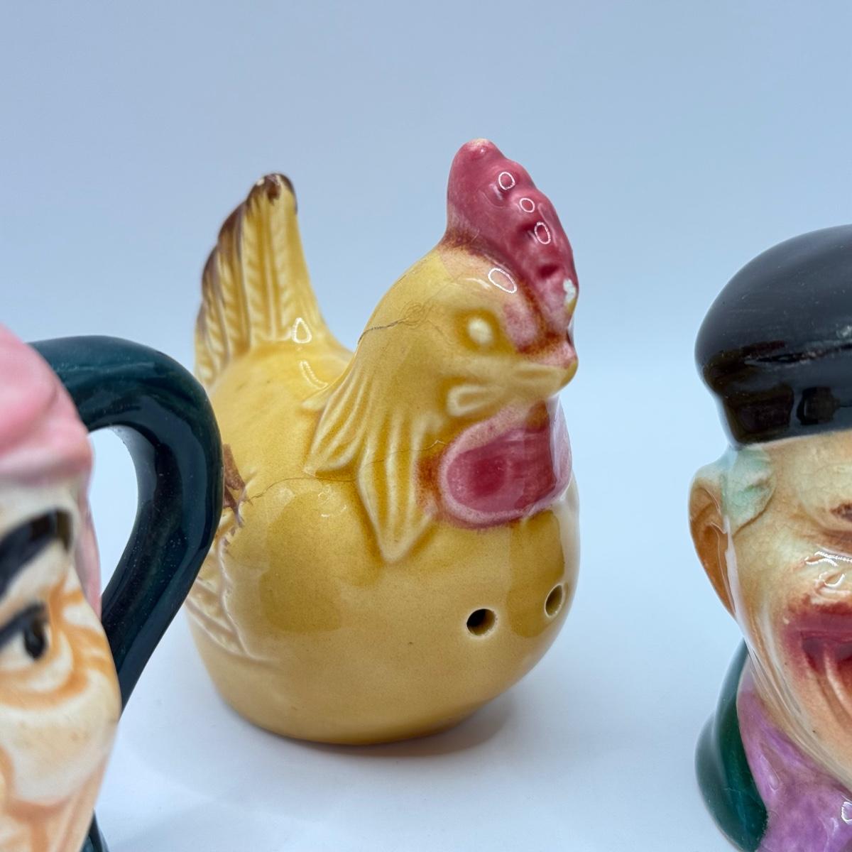 LOT 101K: Vintage Mini Toby Mugs, Purple Cabbage Sugar Bowl Creamer Set & Bake Rite Canister