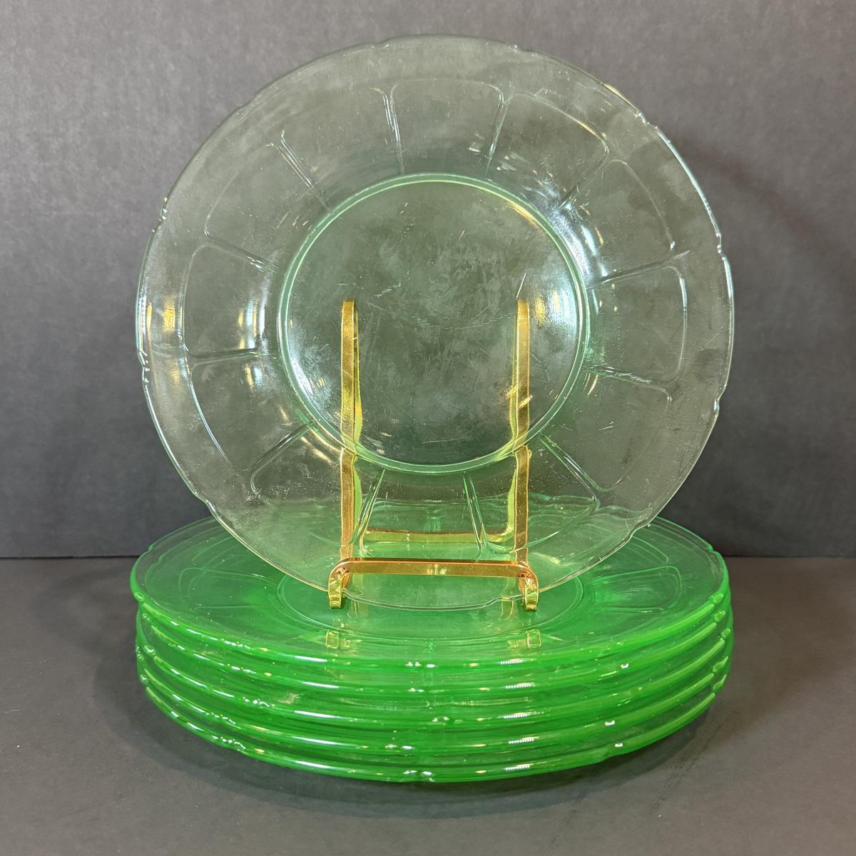 LOT 115W: Vintage 9” Uranium Glass Plates (6)