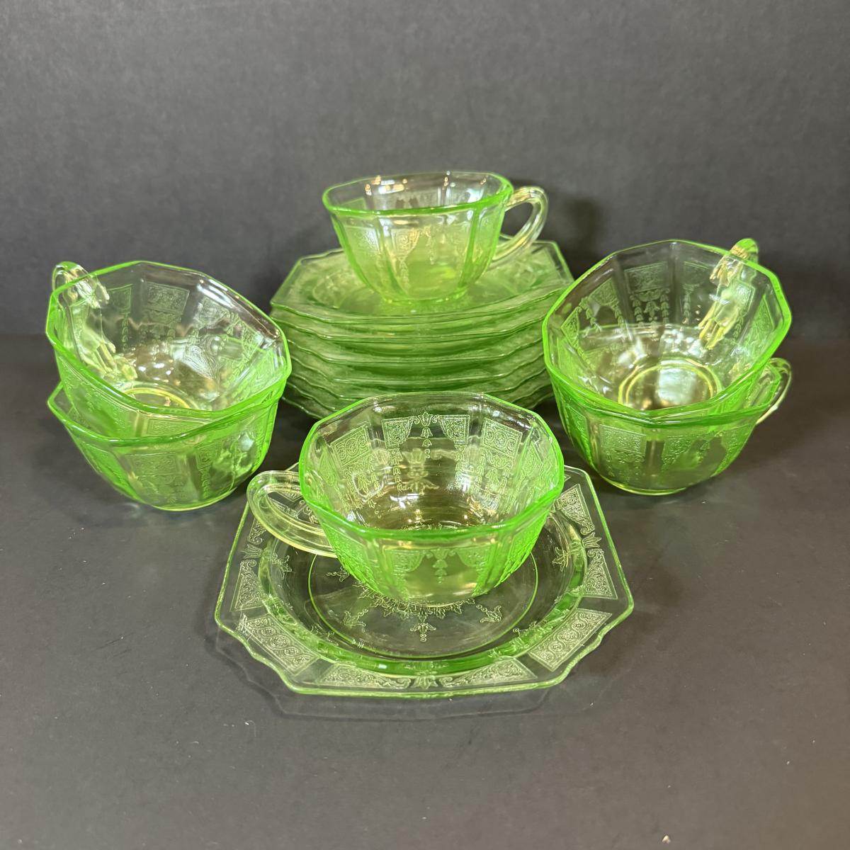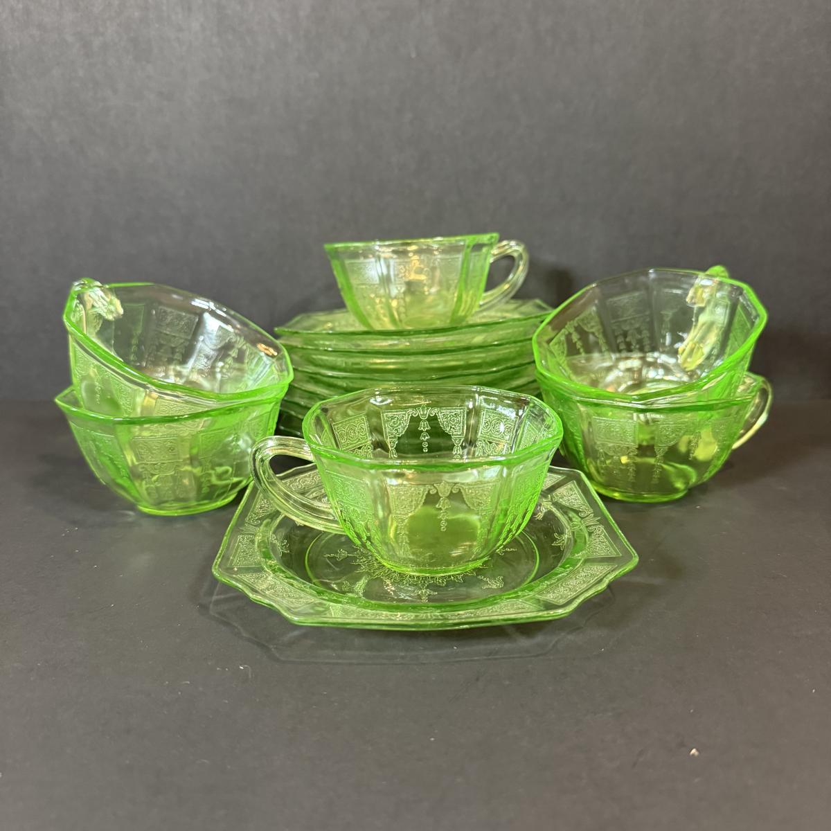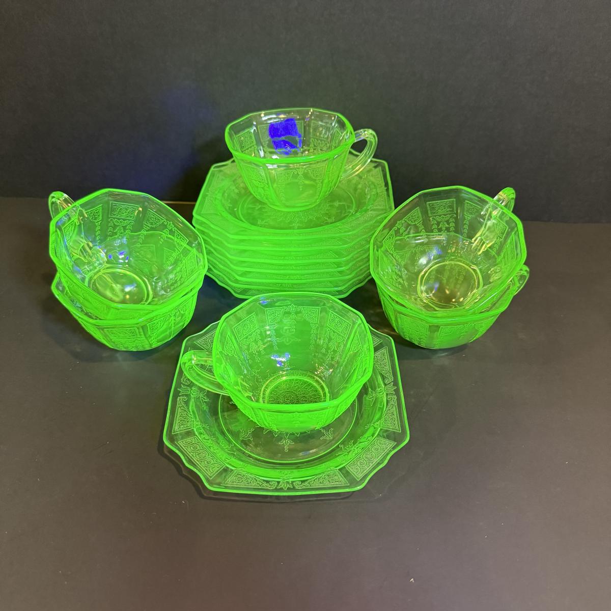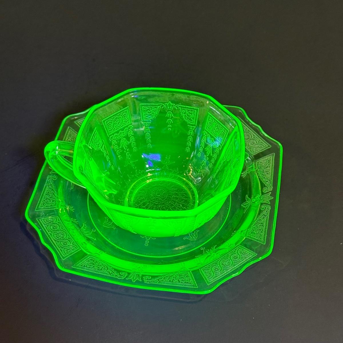 LOT 118W: Vintage Uranium Glass Teacups & Saucers