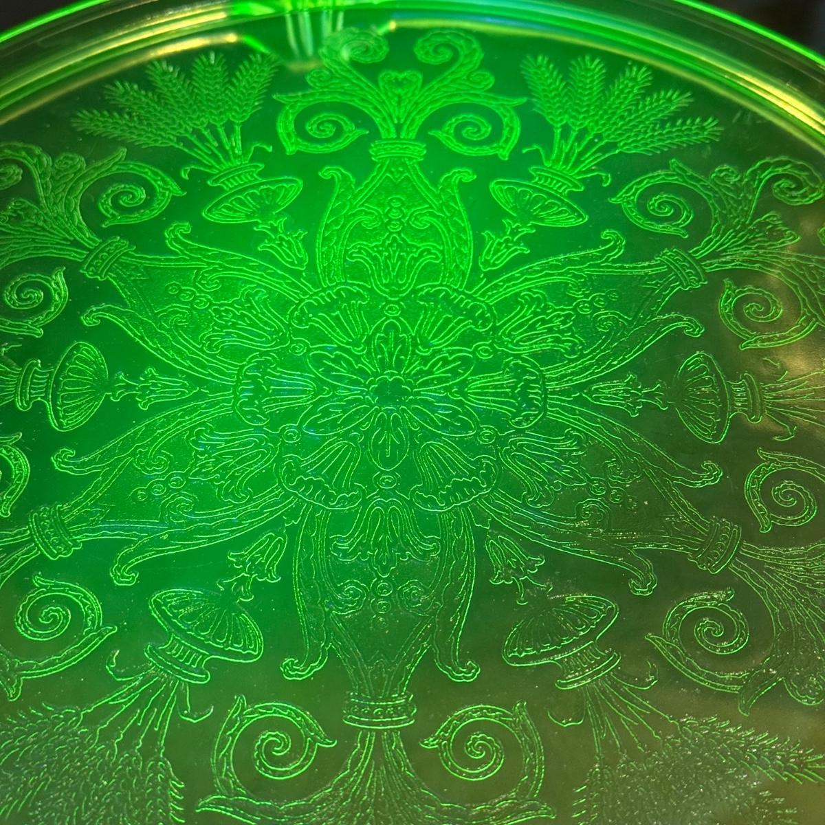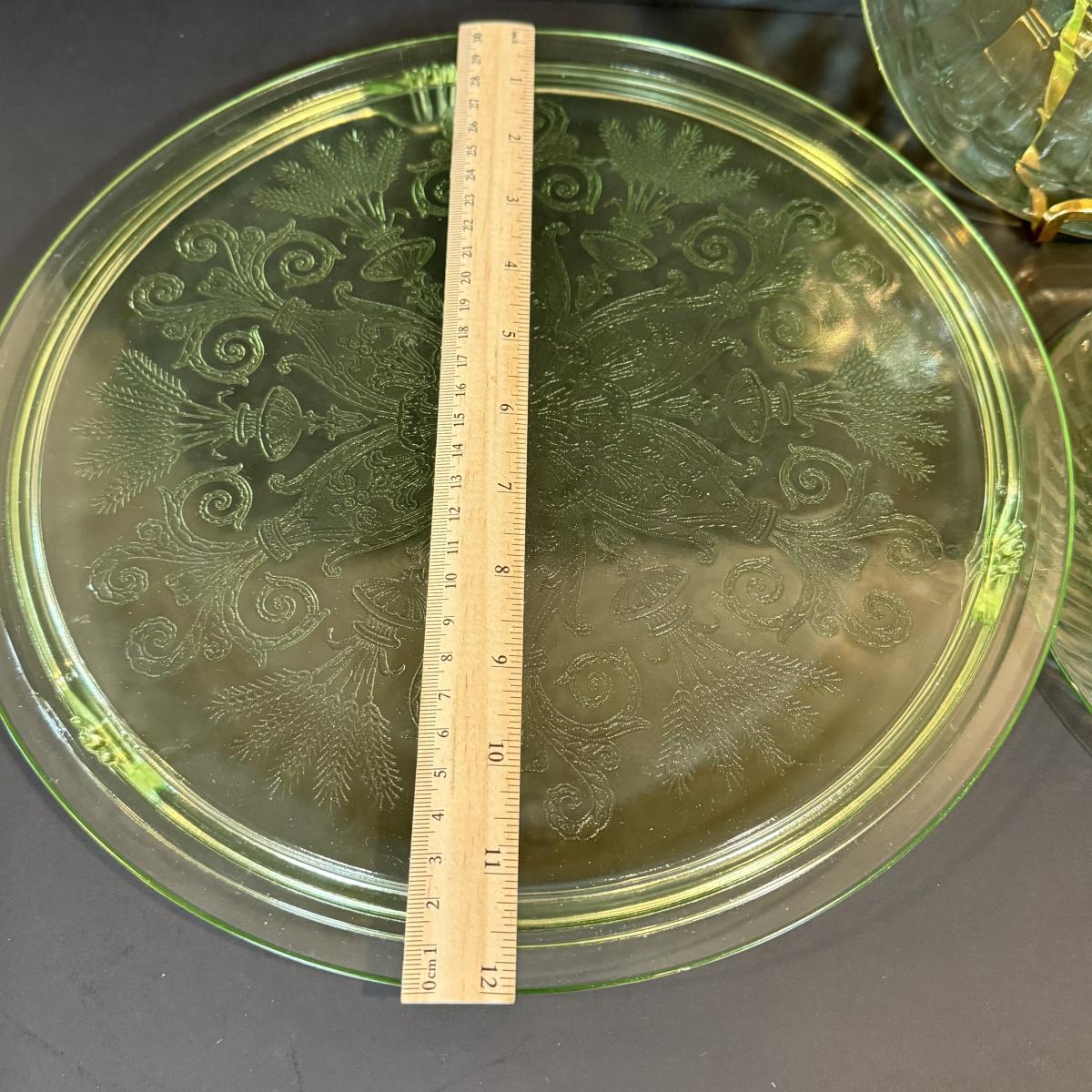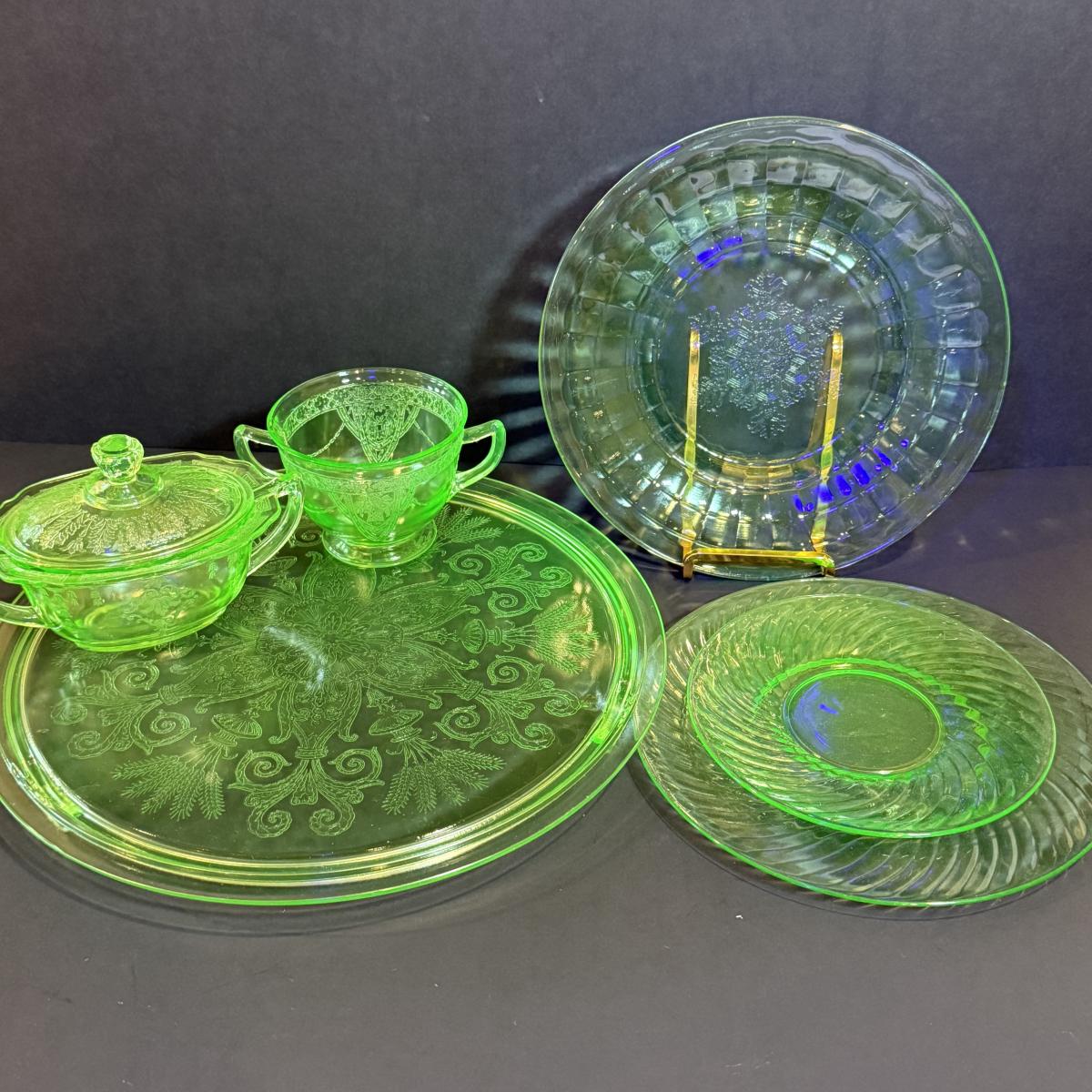 LOT 119W: Vintage Uranium Glass Collection: Sugar Bowls, Plates & Platter