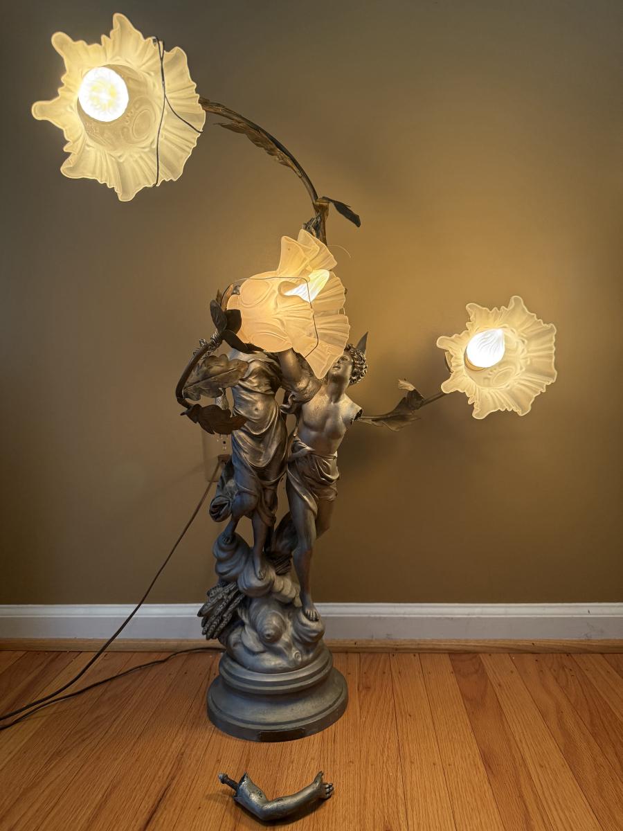 1 arm is broken off - Please see all pictures as they are the best representation of the items. The pictures show condition, measurements if taken, and what is included in the lot. Due to the large amount that we photograph and the time frame, we are not always able to take measurements. All items unless noted, are pre-owned and have been used. If you purchased furniture, you must bring help. We do not allow one person to carry large furniture out on their own. Bring help, tools and a truck for the safety of our client’s homes, and your personal safety. Any damages that result to the property including walls, and floors due to moving of the furniture will be charged to the buyer. Company policy. Thank you.