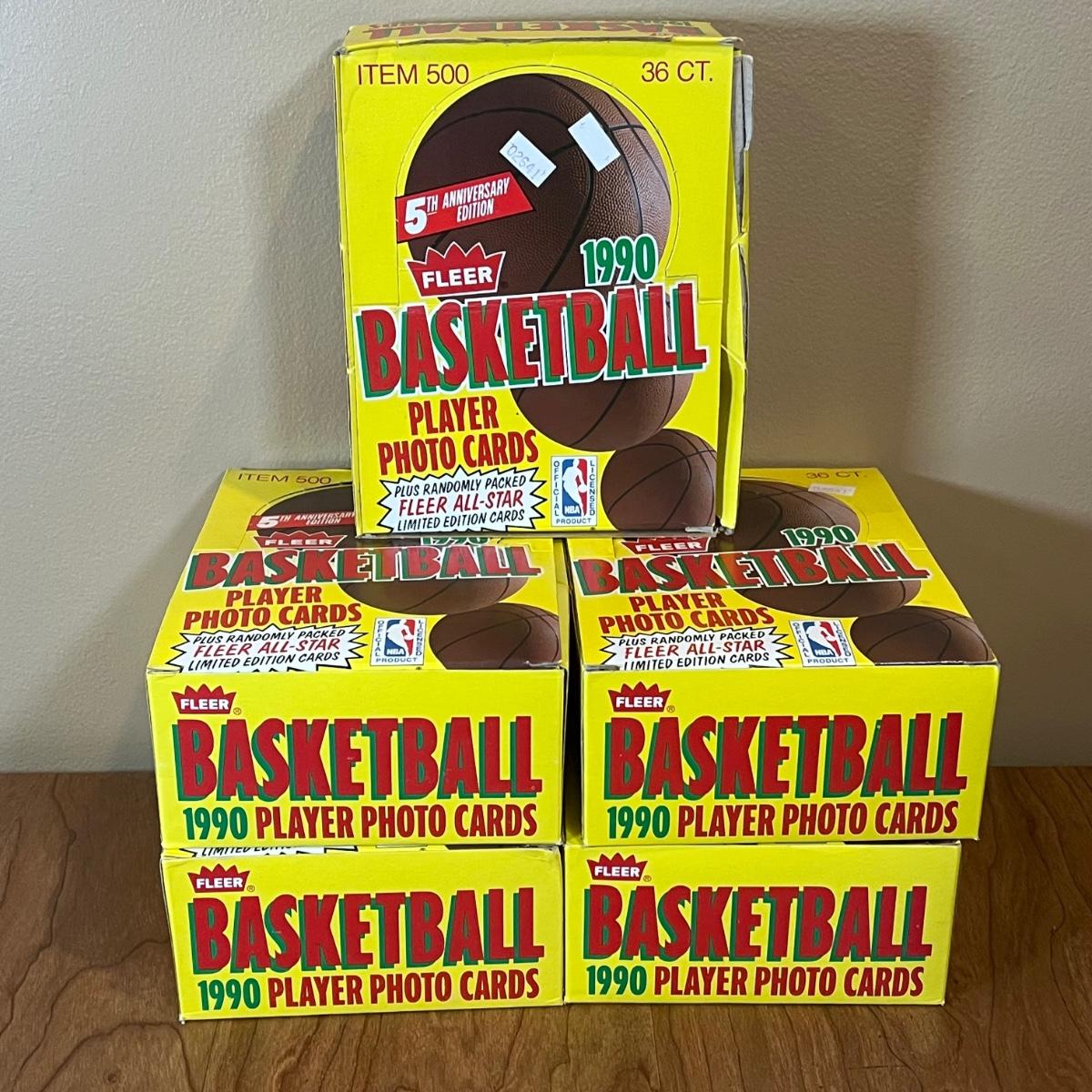 LOT 161K: Five Full Boxes of Sealed 1990 Fleer Basketball Cards