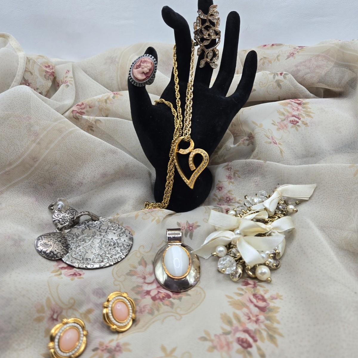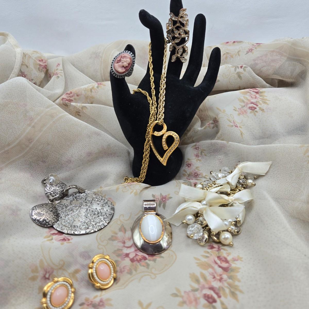 LOT 8: Vintage Costume Jewelry Including Cameo Ring and Ribbon and Bead Bracelet