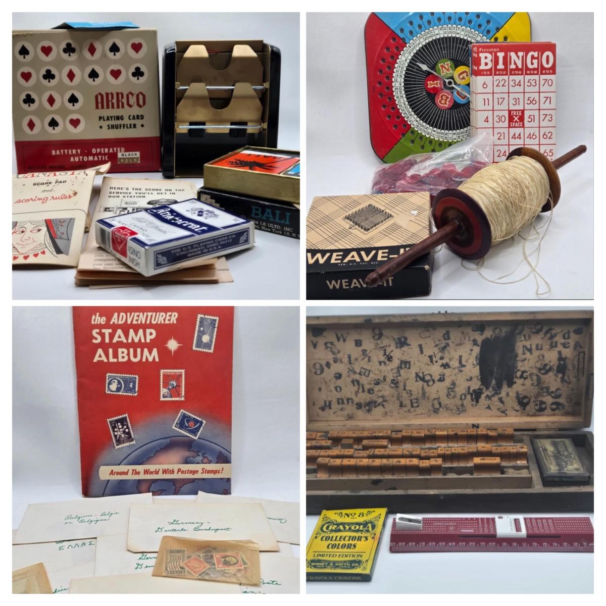 LOT 14: BINGO!!!!!, Deck of Cards, Card Shuffler, Stamps From Around the World, and More