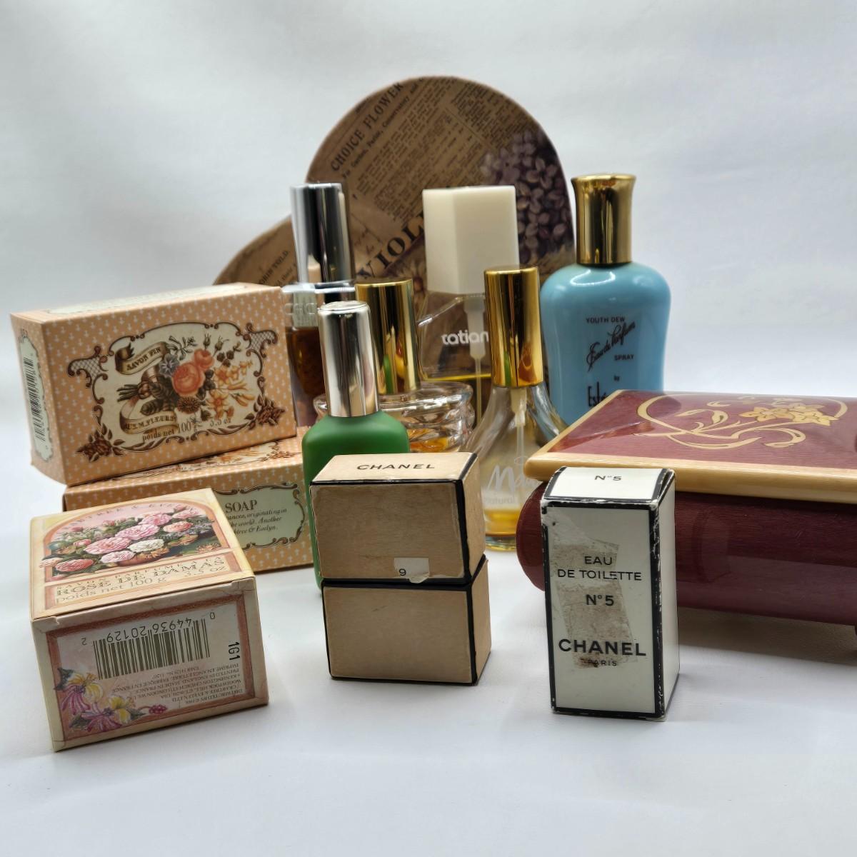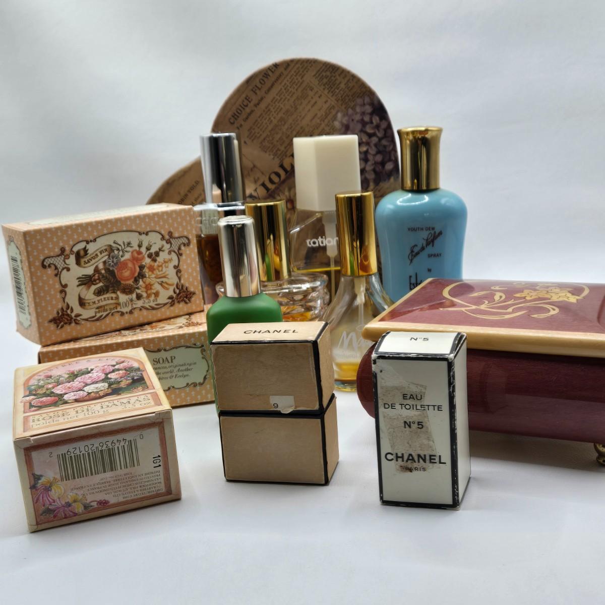LOT 15: Vintage Perfume Bottles, Musical Trinket Box, and More