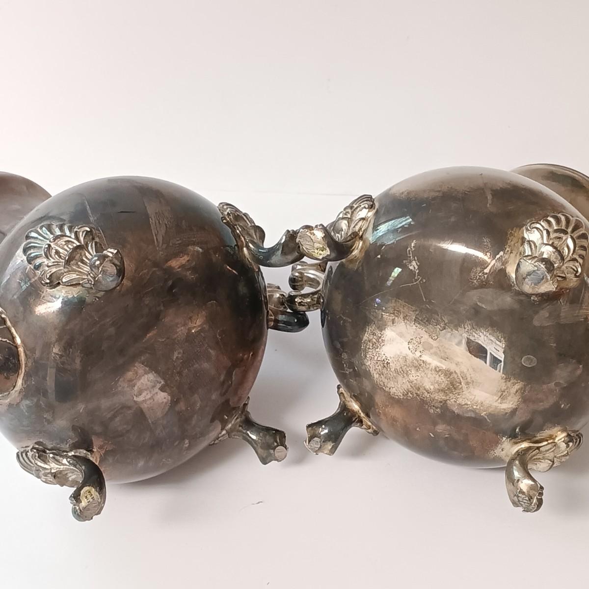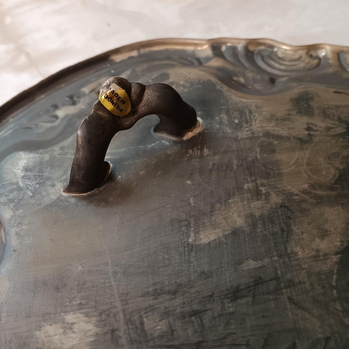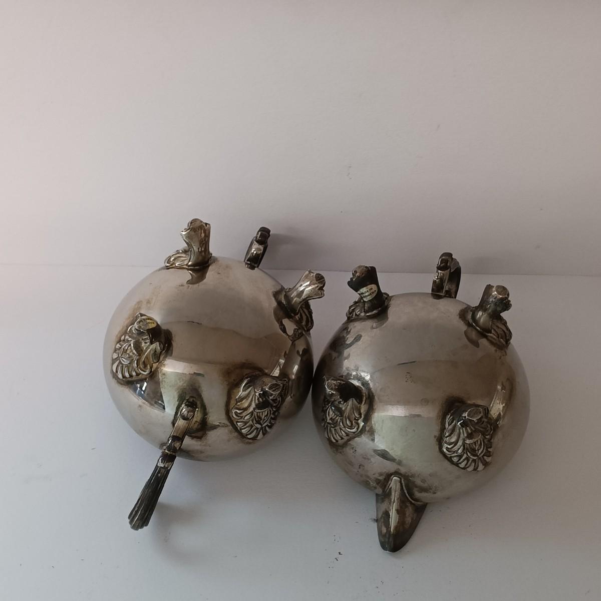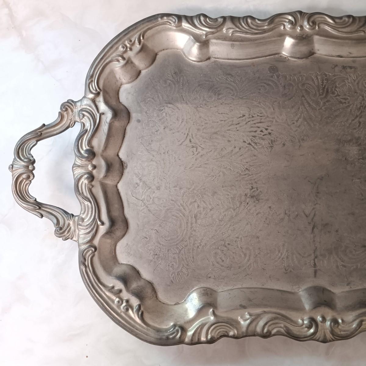 LOT 35: Plated Kitchenware - Tea Pots, Tea Tray, Creamer and Sugar Bowl & Wire Baskets