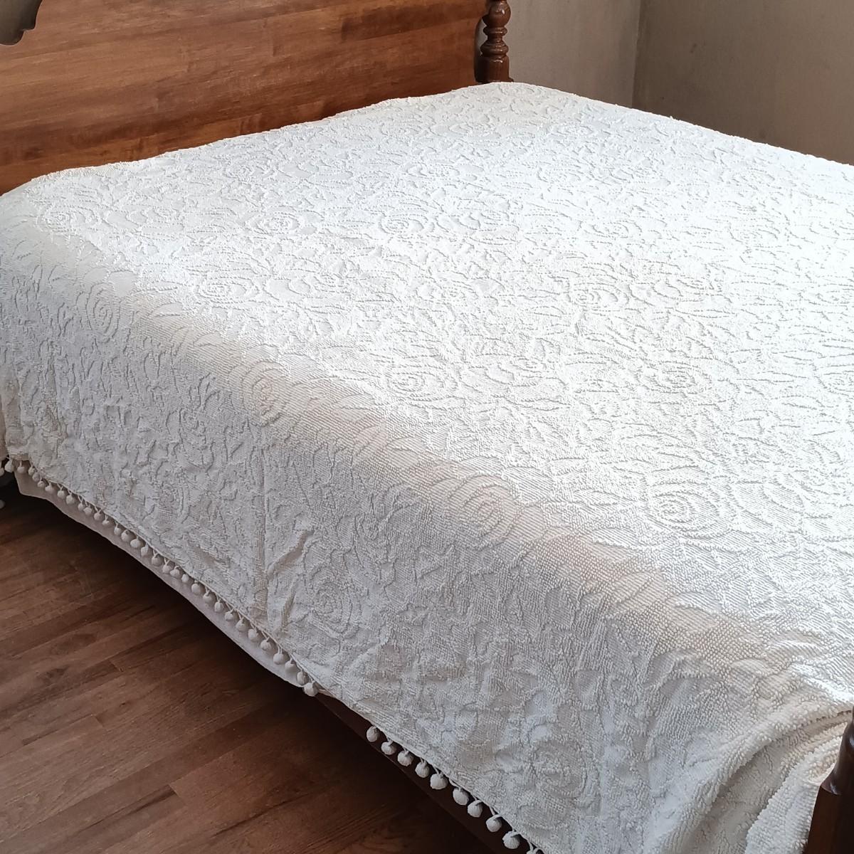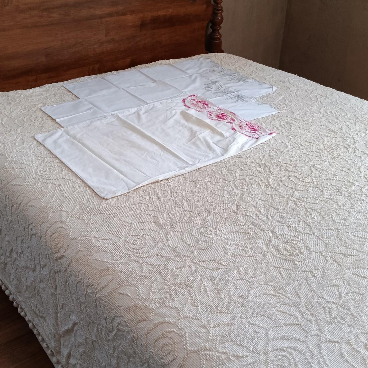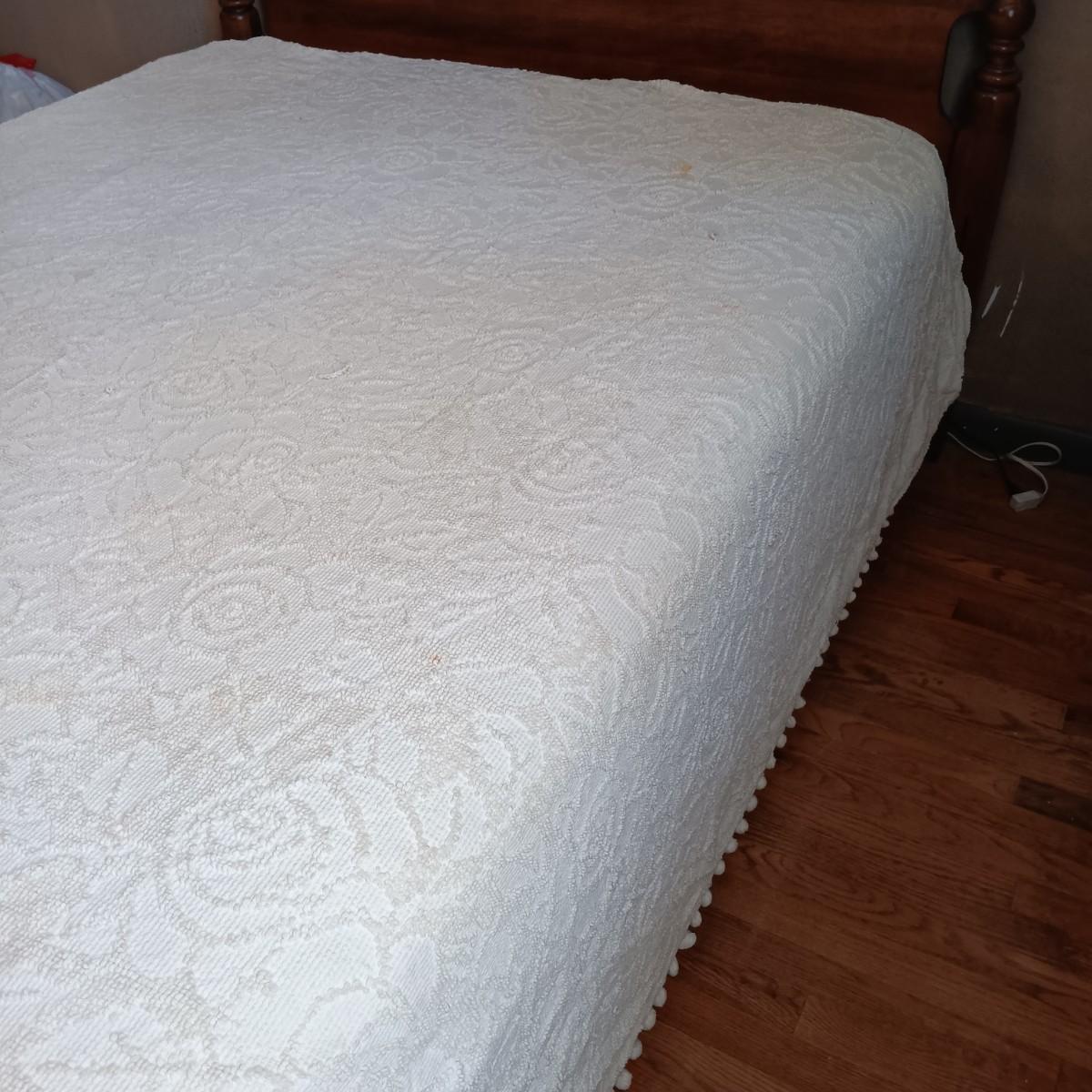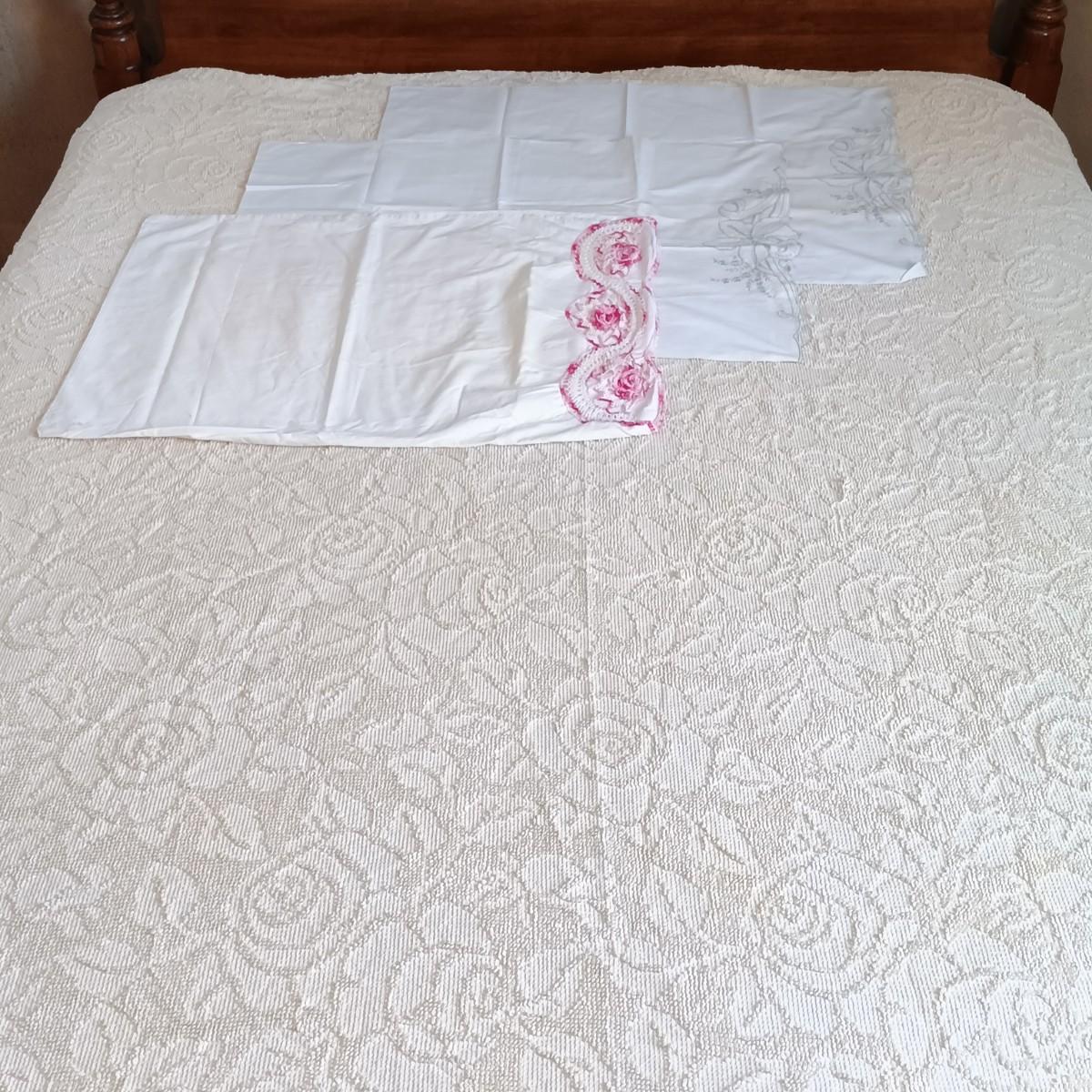LOT 44: Vintage Operator Hobnail Chenille Queen Bedspread with Embroidered Pillowcases