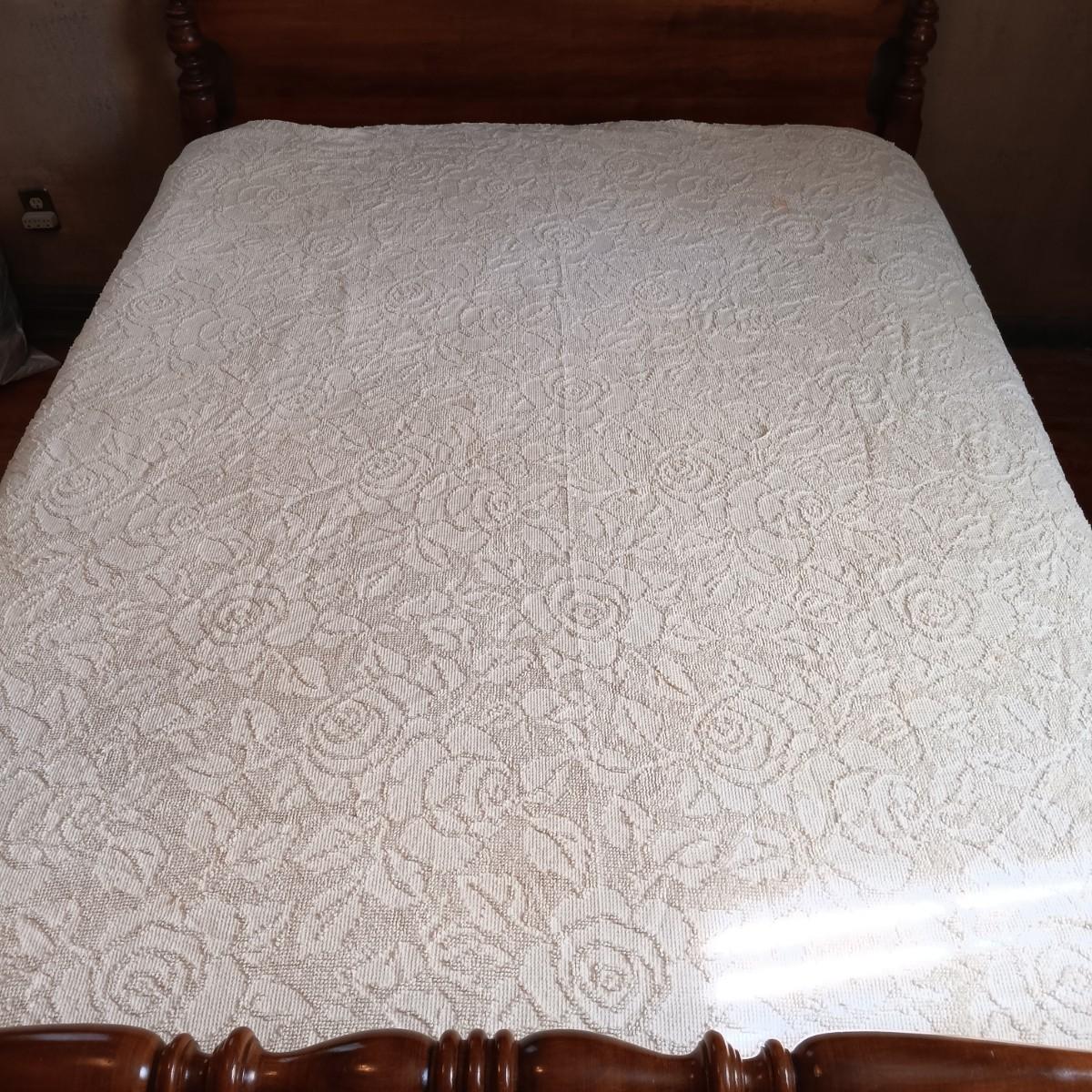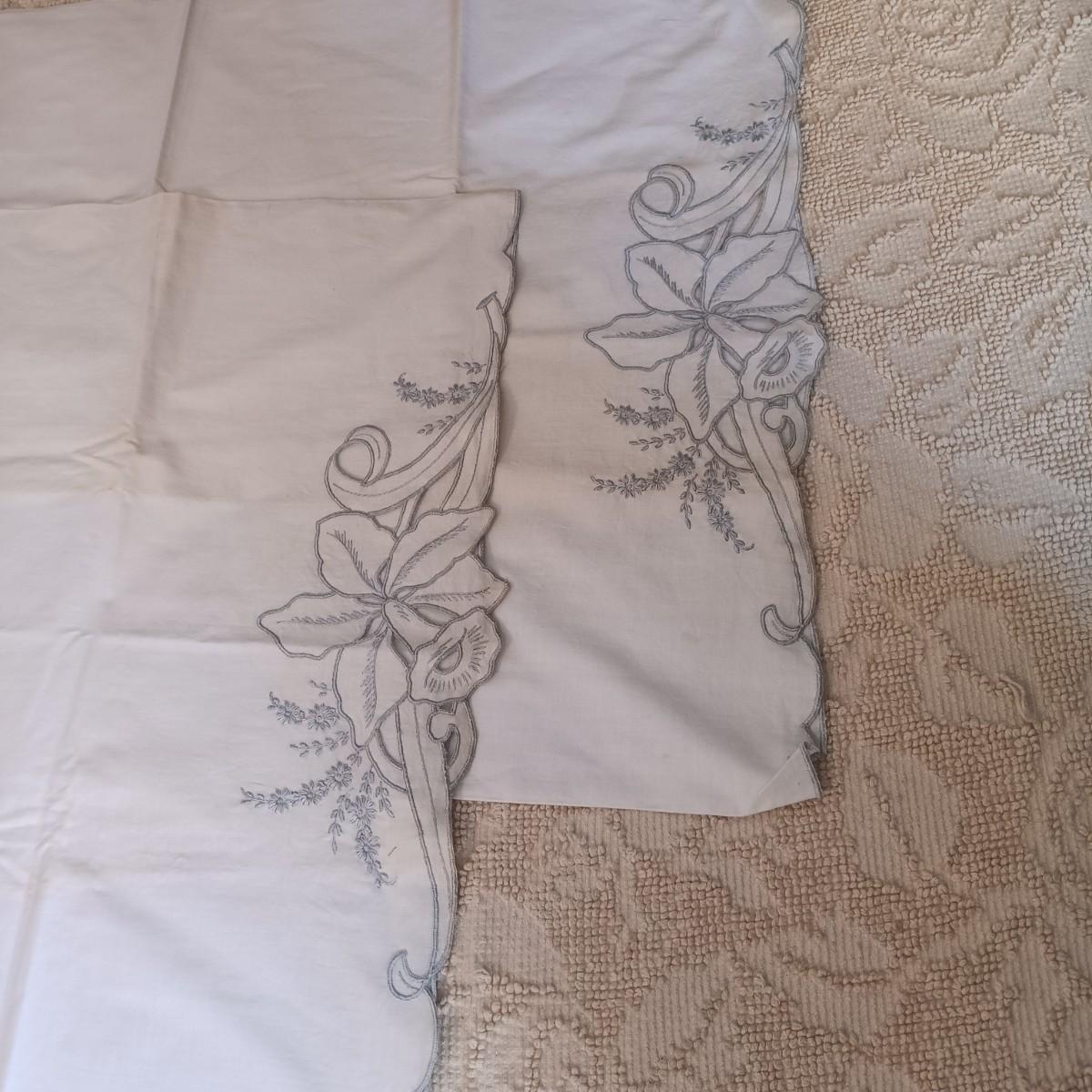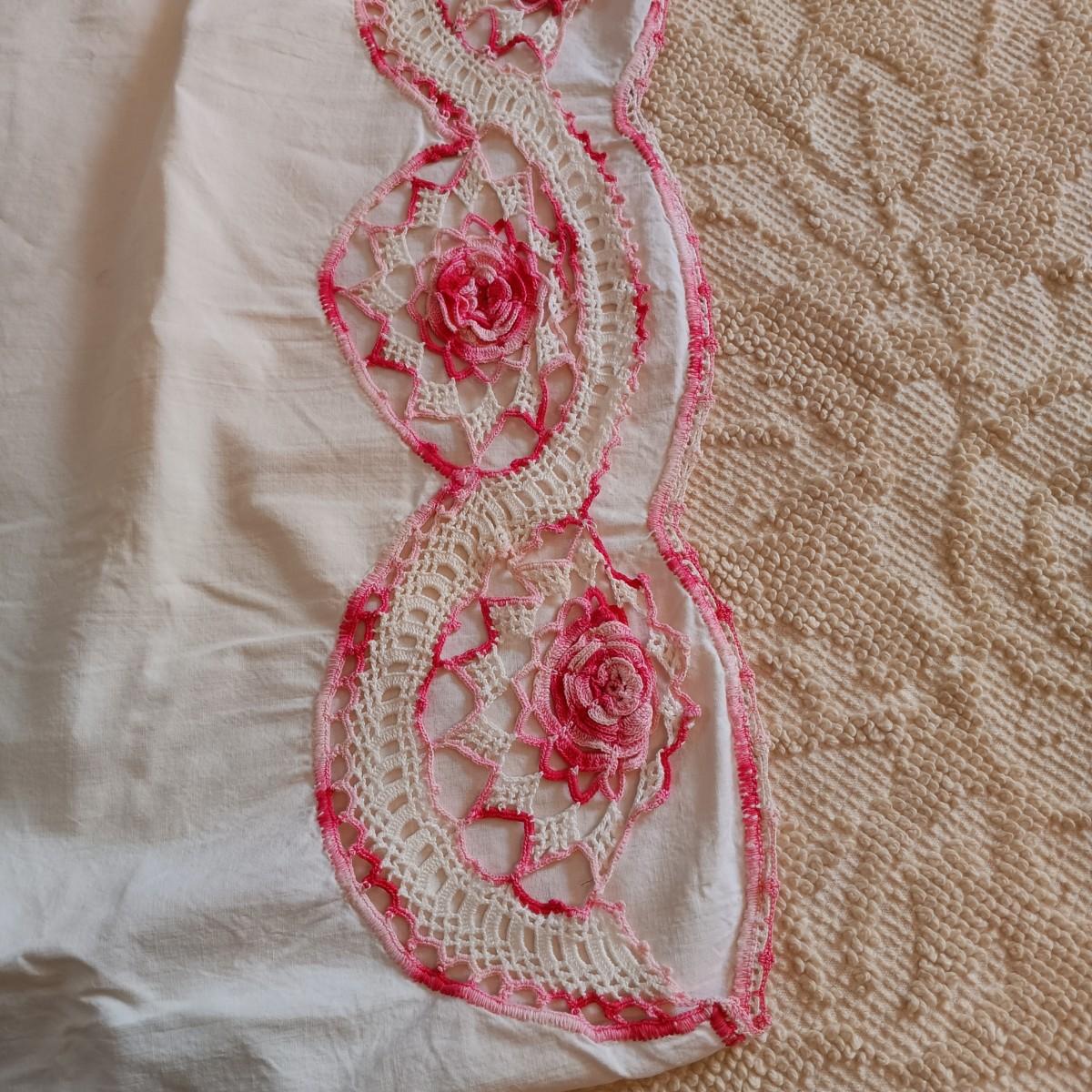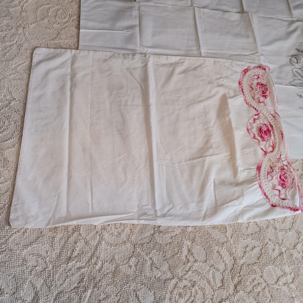 LOT 44: Vintage Operator Hobnail Chenille Queen Bedspread with Embroidered Pillowcases