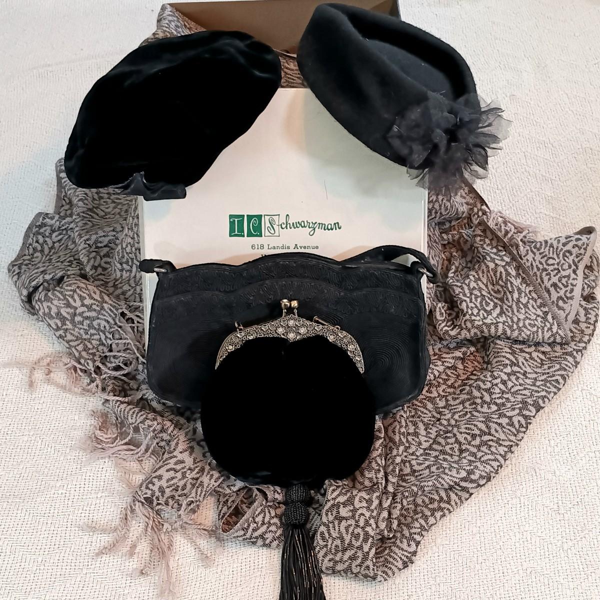 LOT 51: Limited Edition Velvet Embellished Evening Bag with Cordé Handbag, Velvet Beret & More