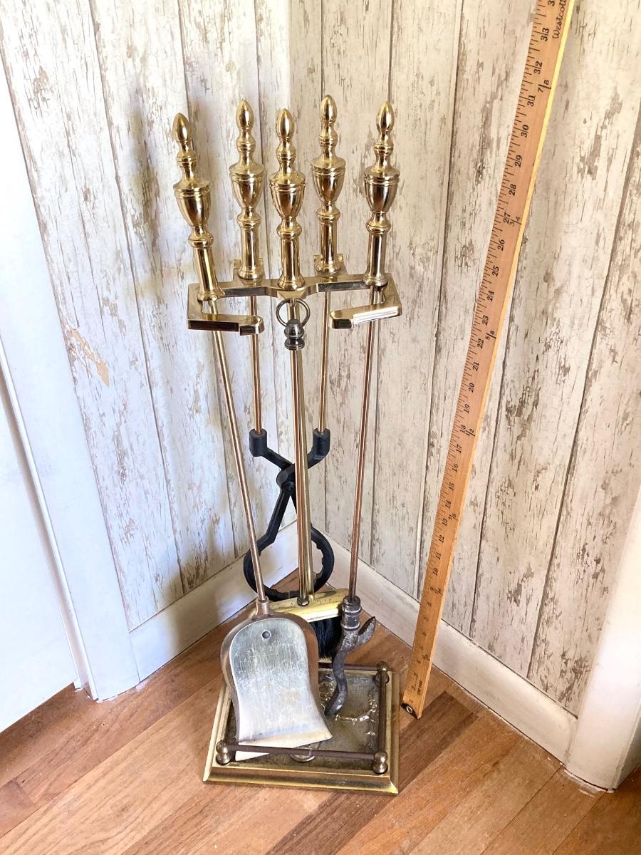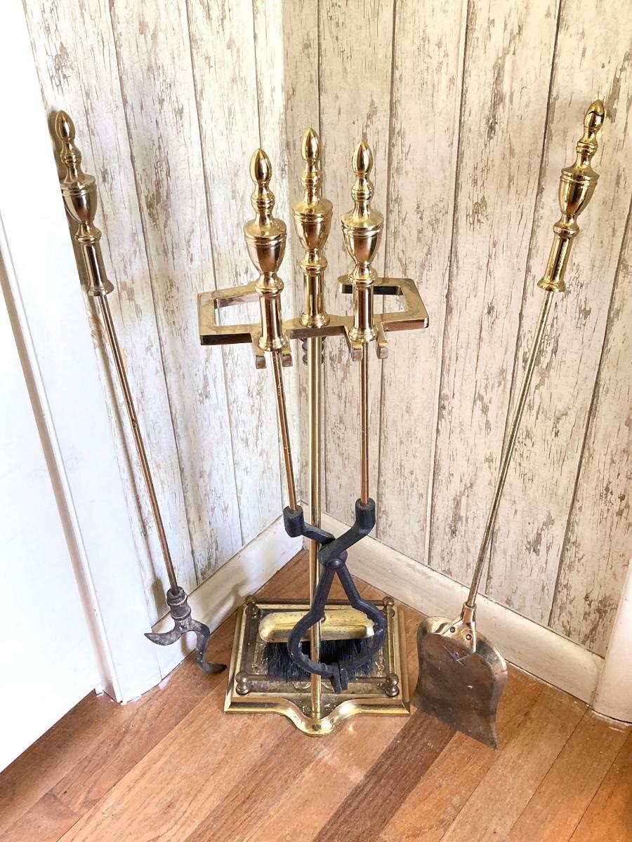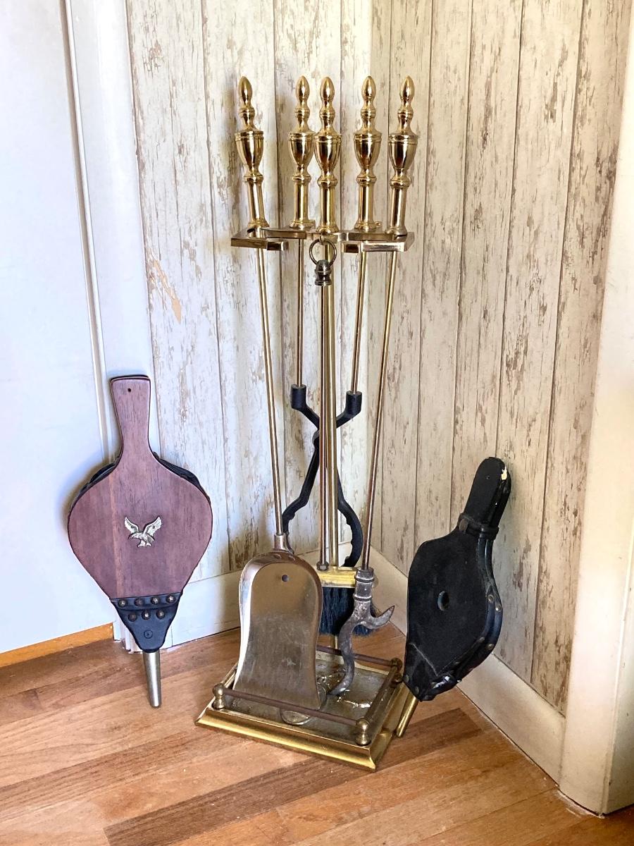 LOT 57: Brass Fireplace Tool Set with Two Air Bellows