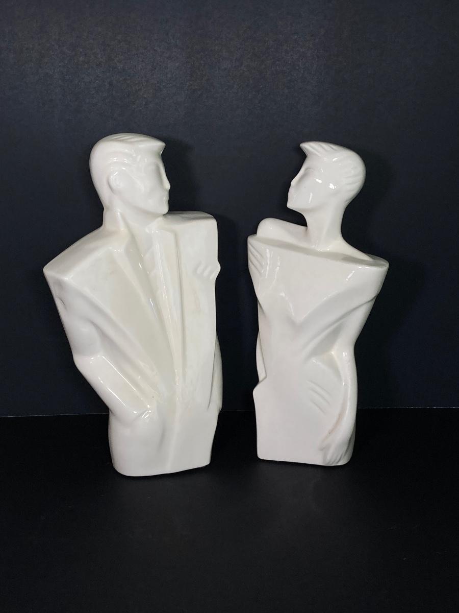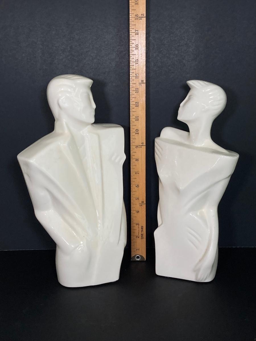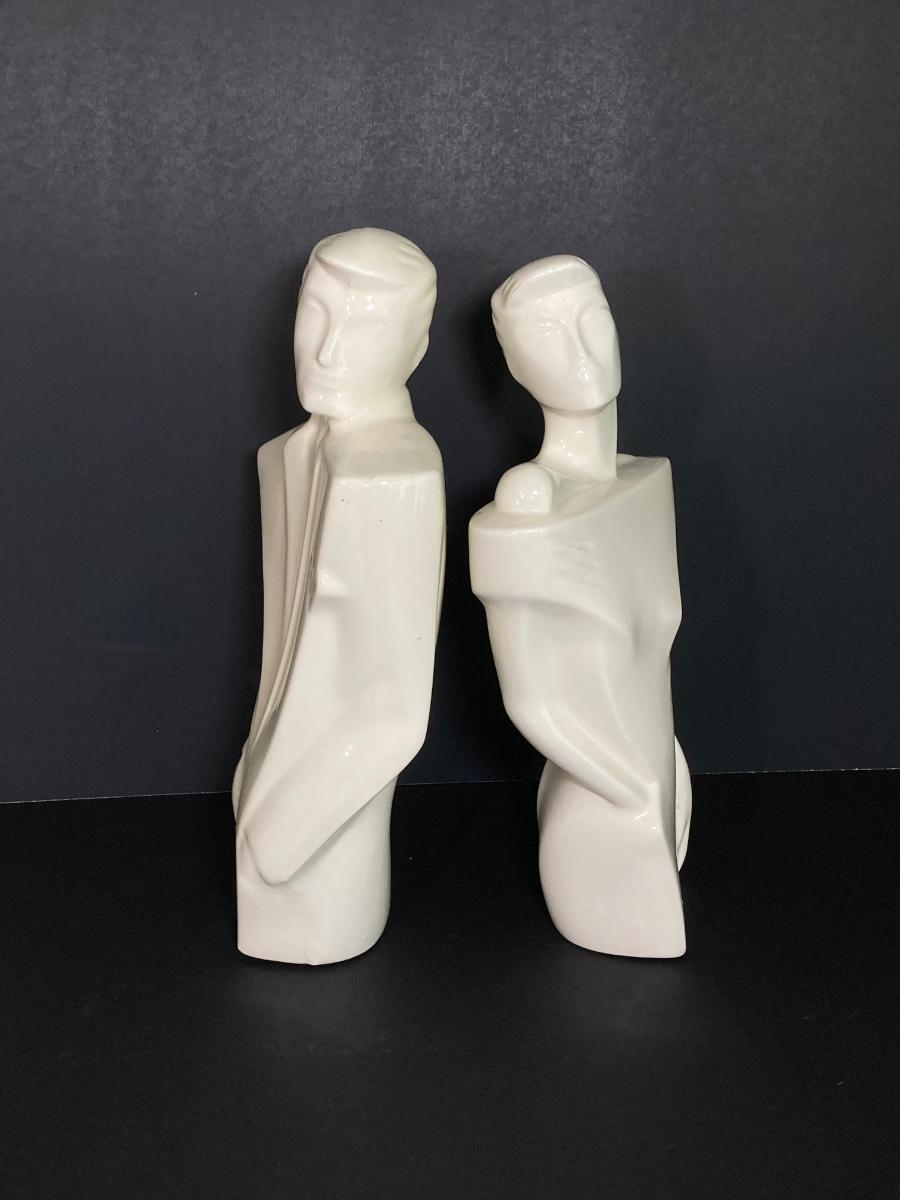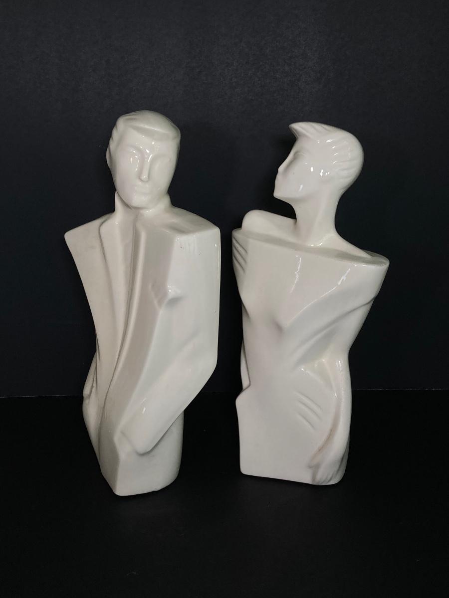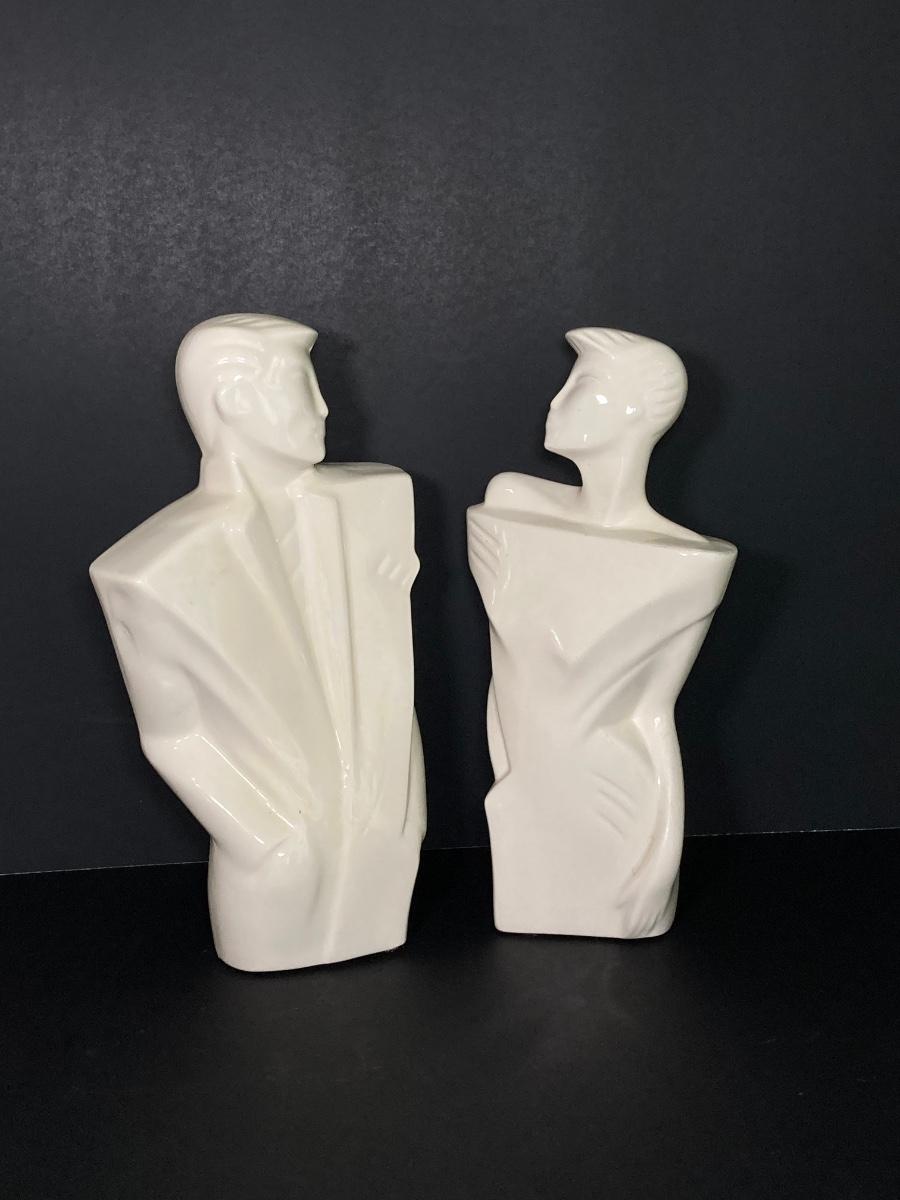 LOT 59: Art Deco / 80's Modern Ceramic Man and Women Statues