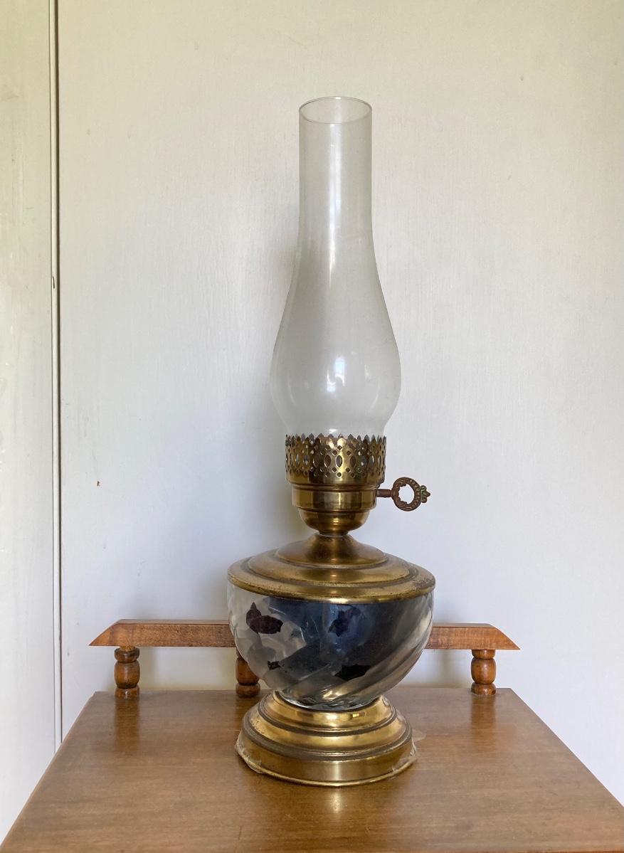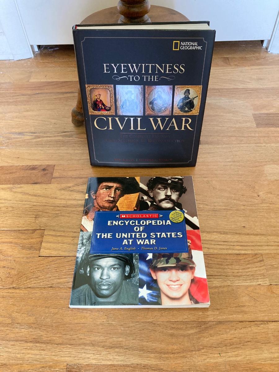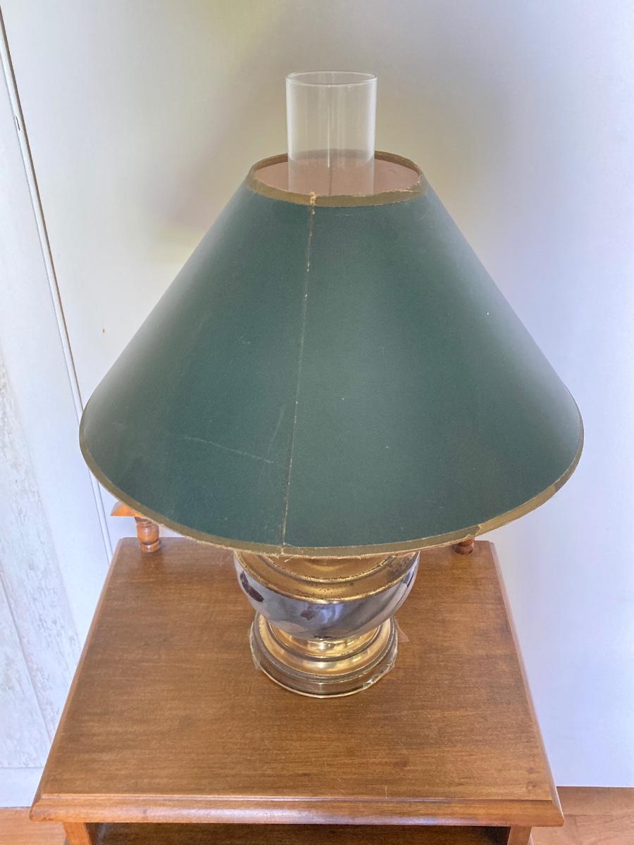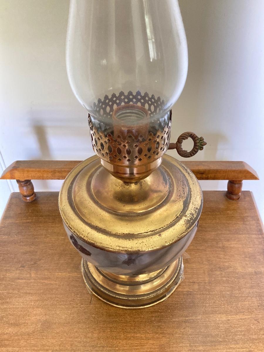 LOT 69: Adorable Wooden Side / Book Table with Vintage Lantern Style Lamp and Collection of American History / War Books