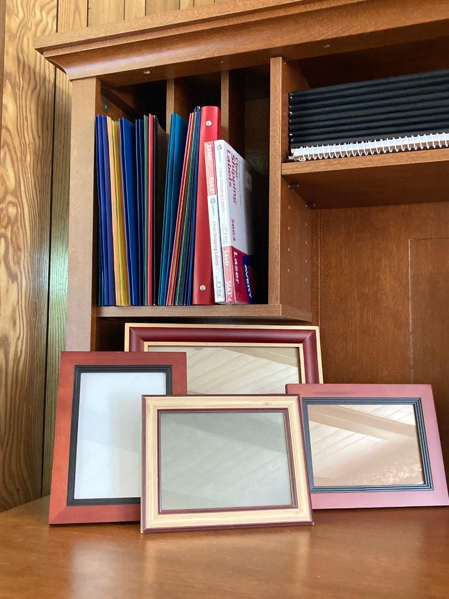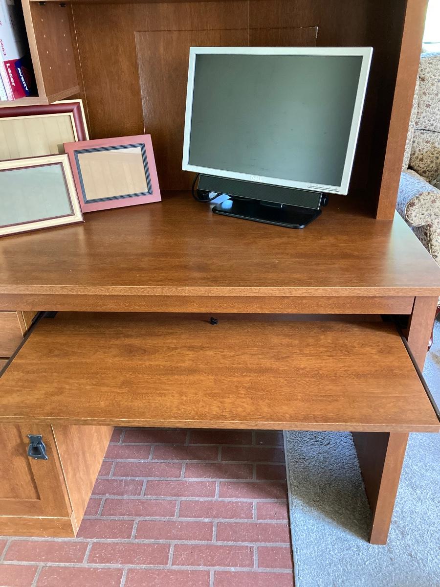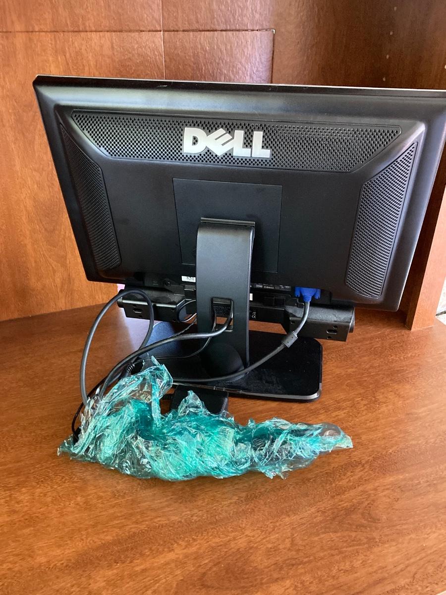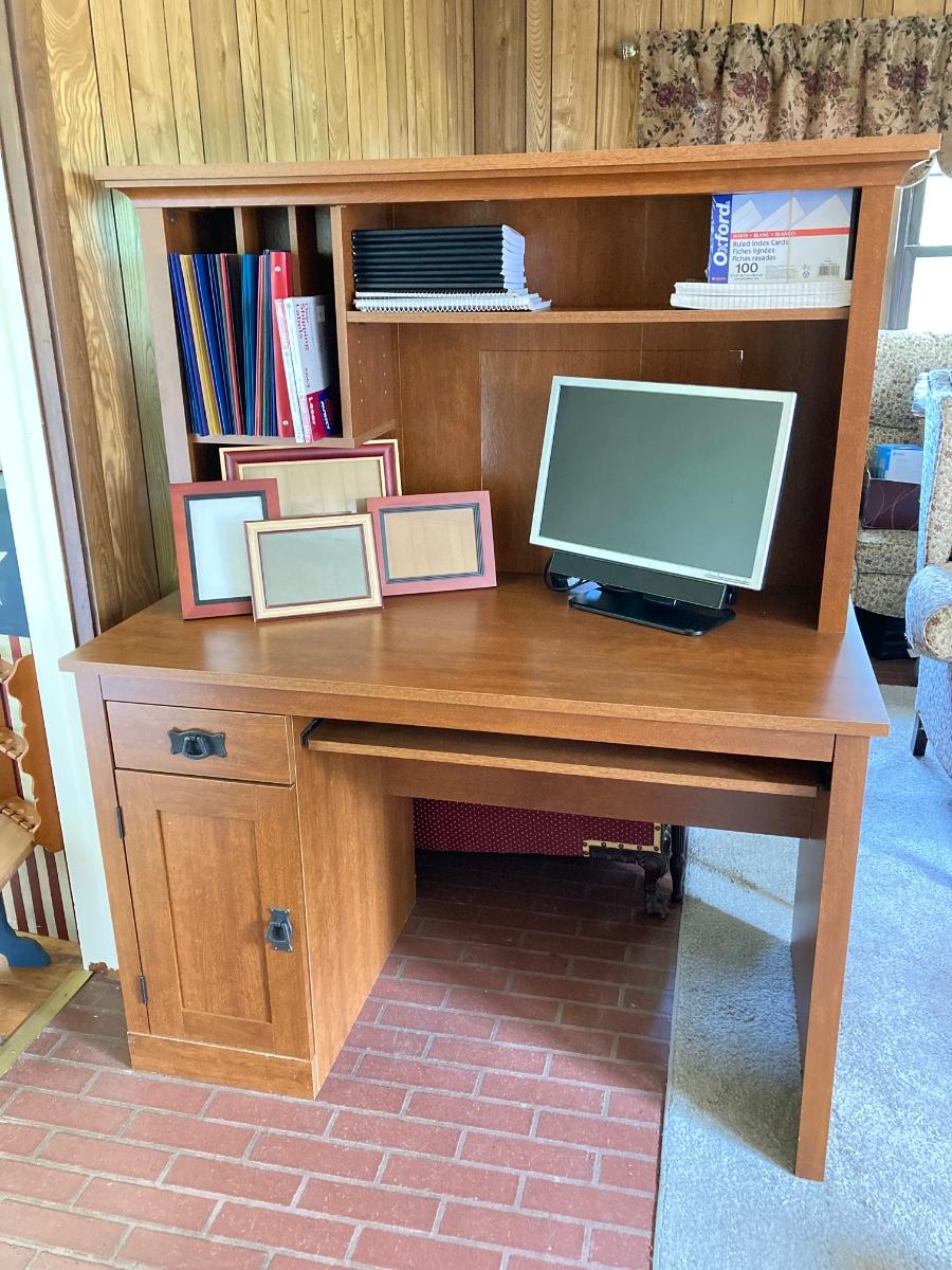 LOT 70: Office Desk with Contents - Dell Monitor SE198WFPv, Tablets, Paper, Picture Frames and More