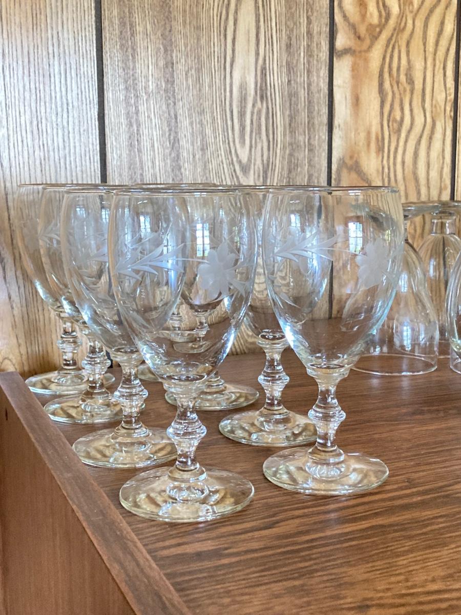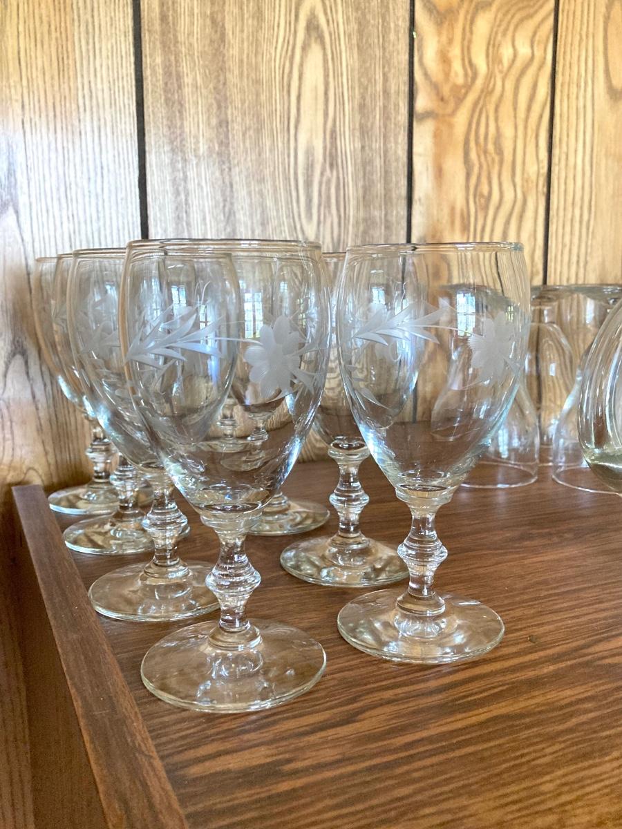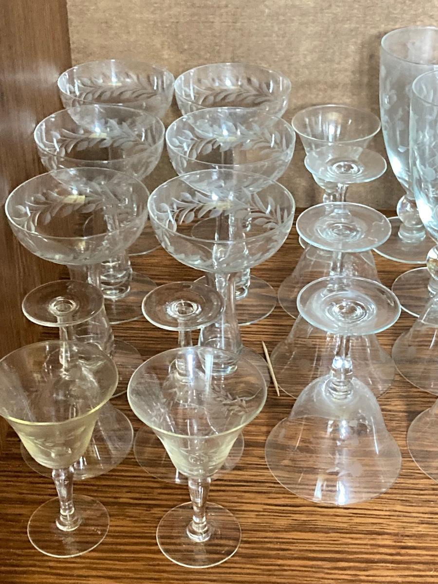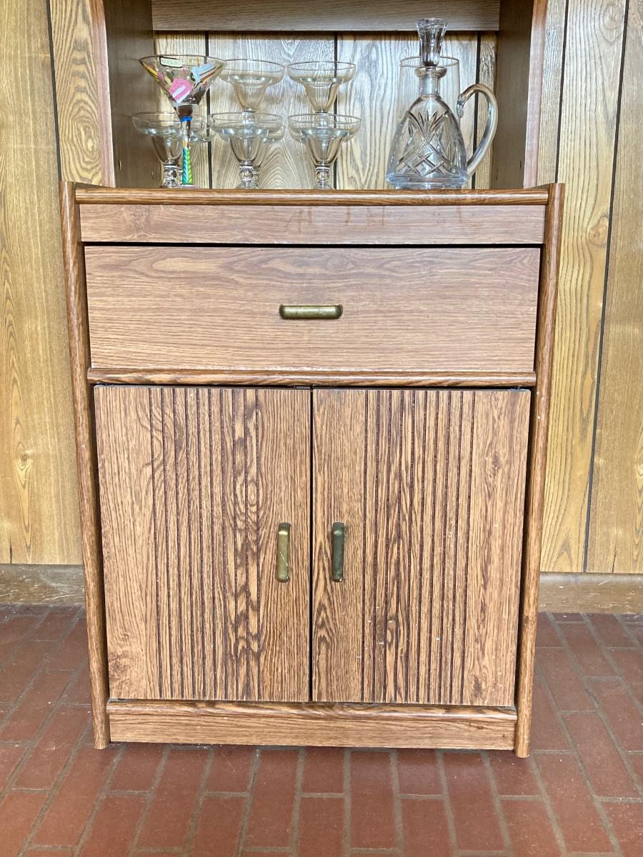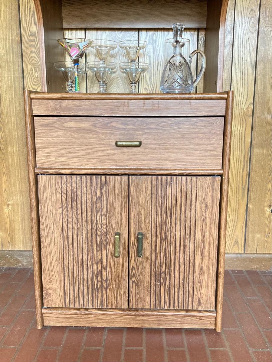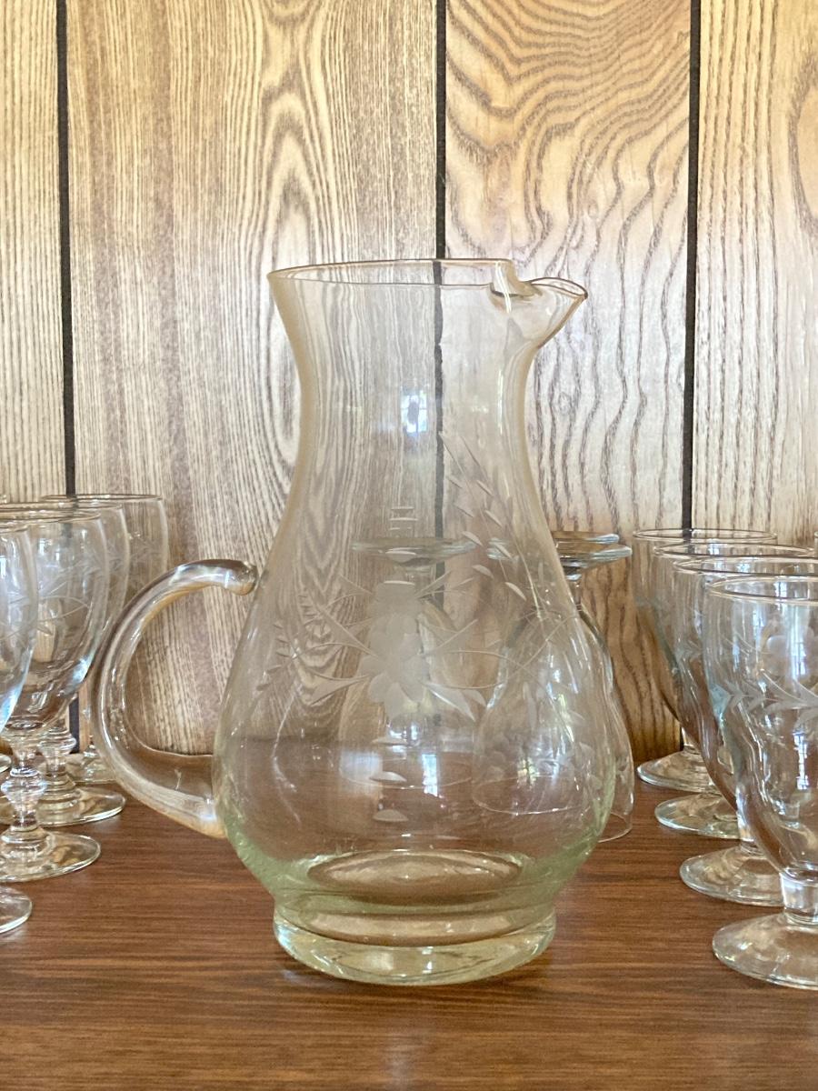 LOT 75: Cabinet / Bar with Contents and Large Collection of Glasses, Decanters, Pitchers and More