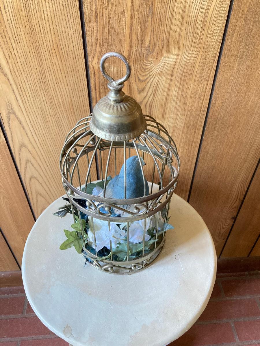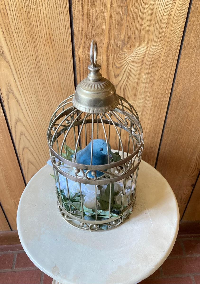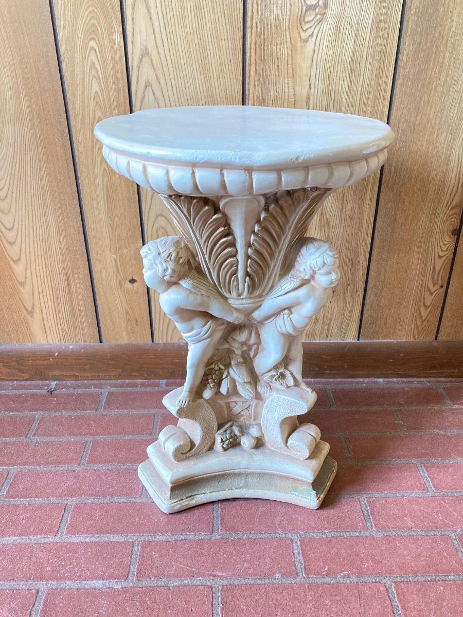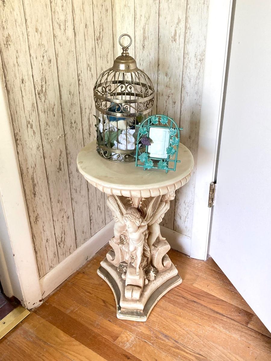 LOT 77: Sweet Cherub Pedestal with Decorative Bird House and Picture Frame