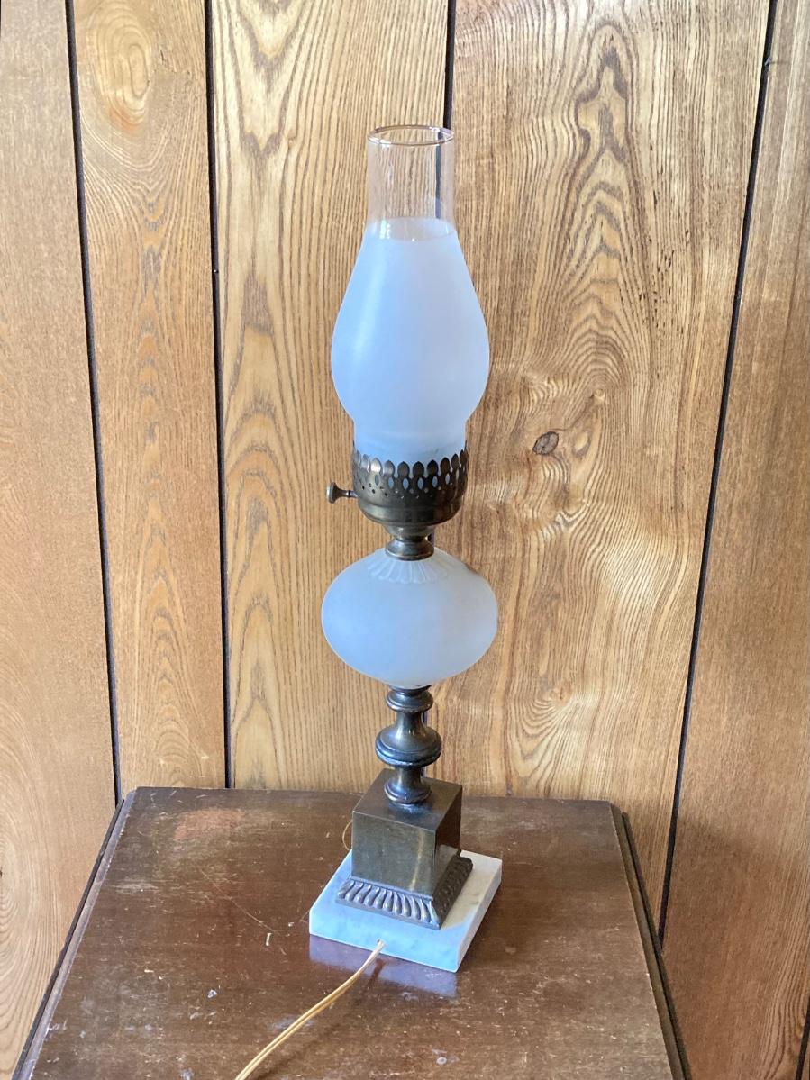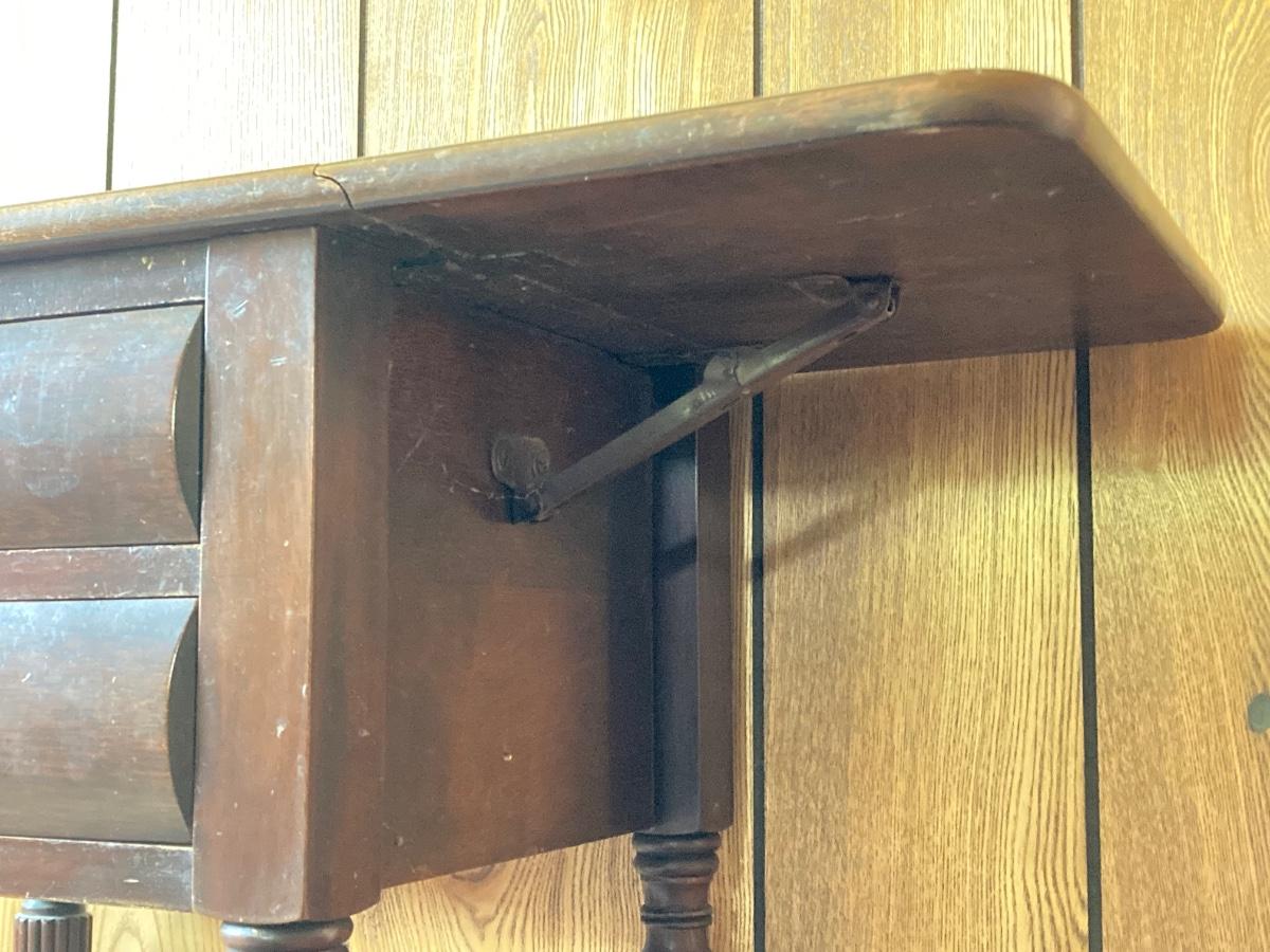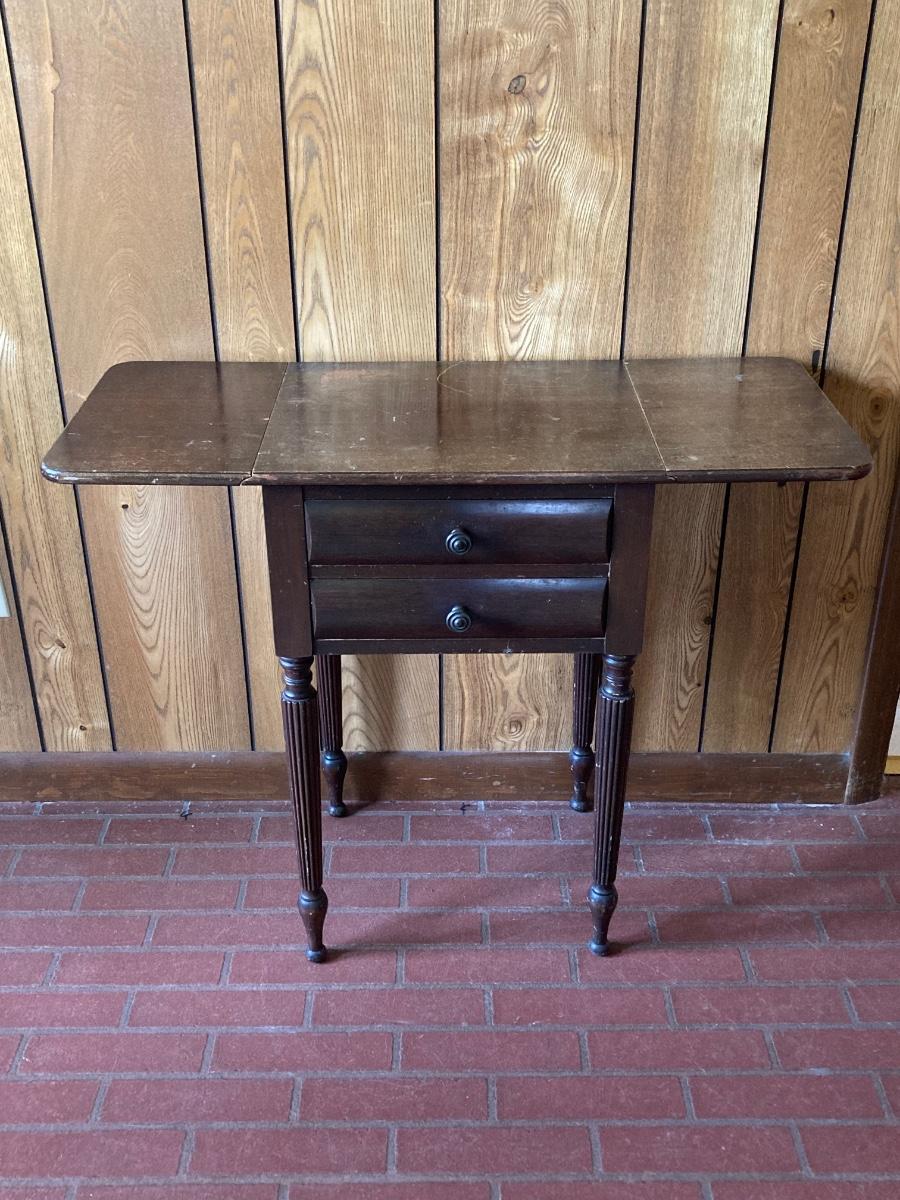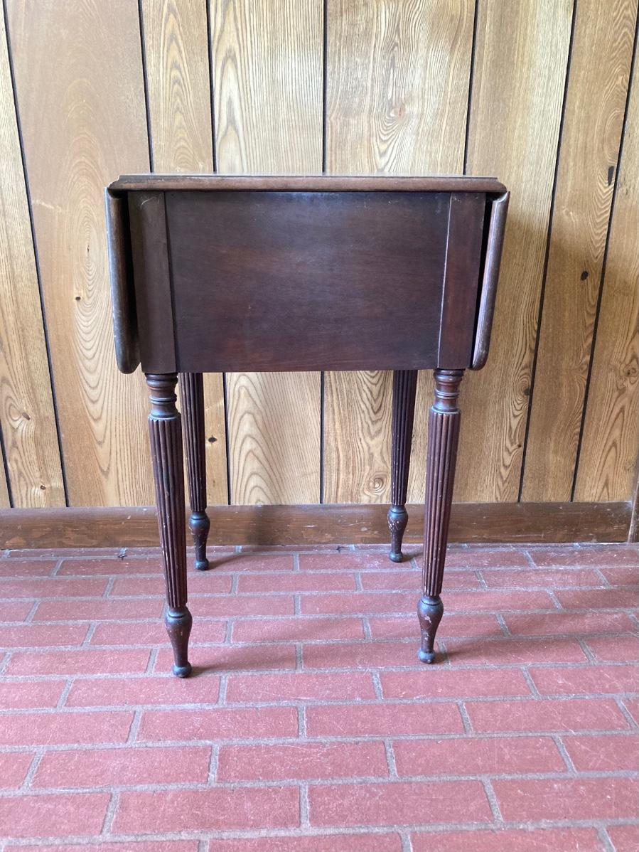 LOT 78: Beautiful Painted Glass Lamp with Mahogany Drop Leaf Side Table
