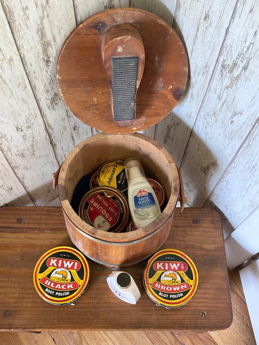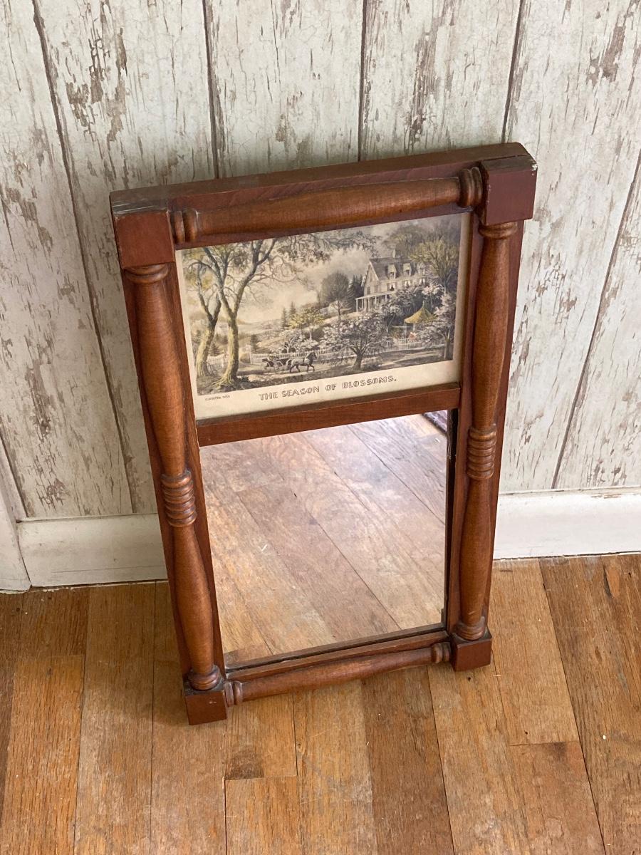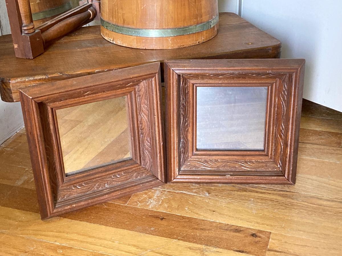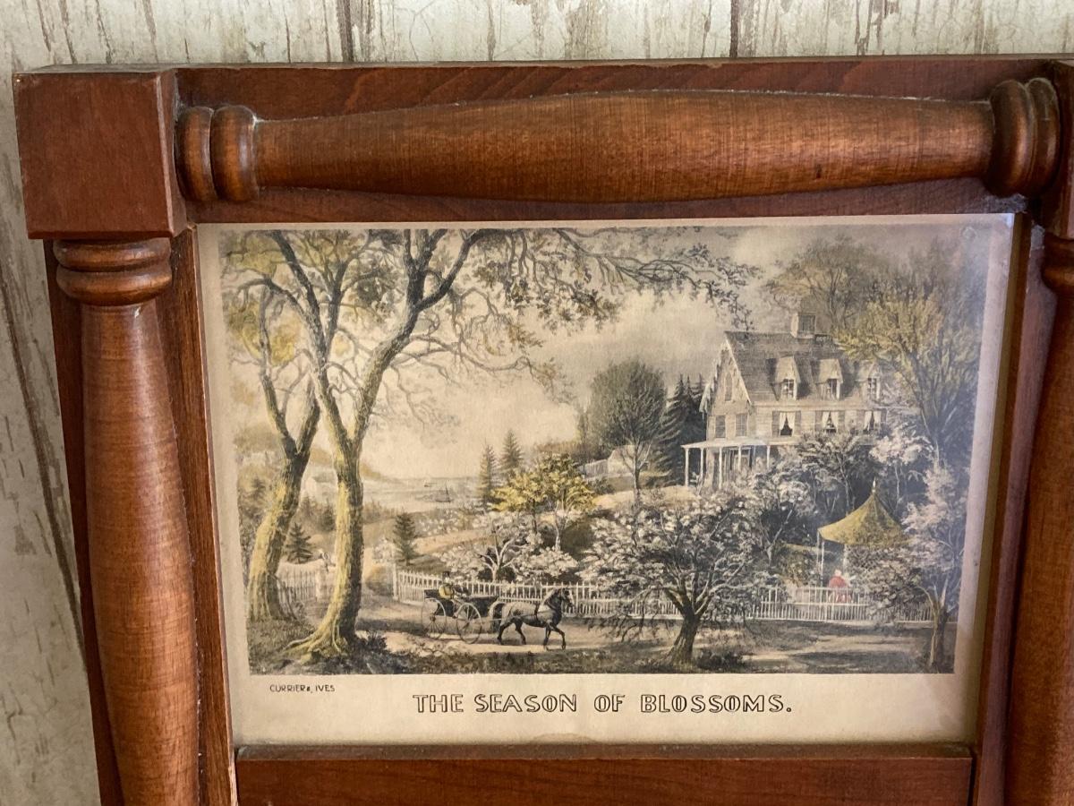 LOT 80: Vintage Wooden Decor Collection - Step Stool, Carved Mirrors, The Season of Blossoms Mirror and Shoe Shine Bucket