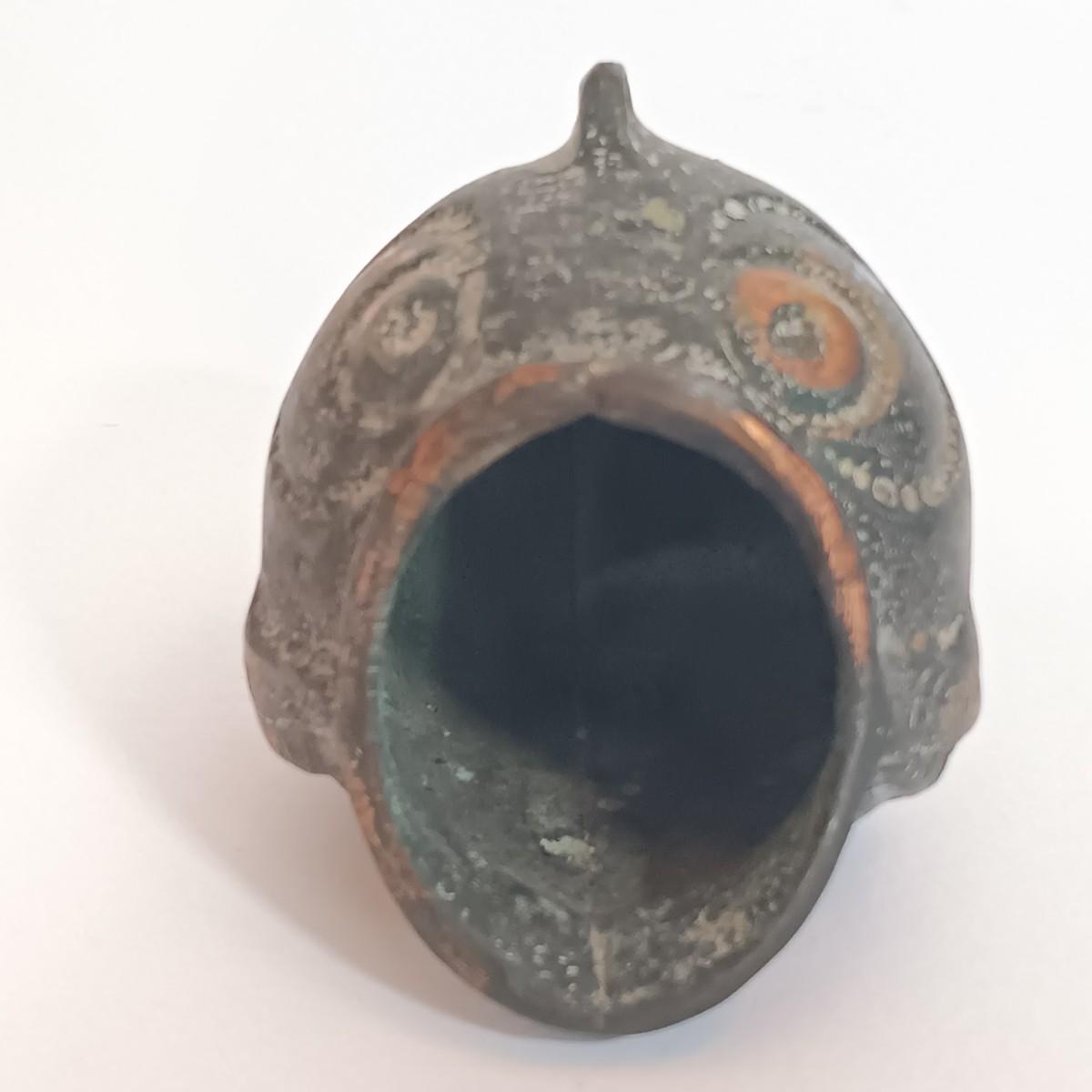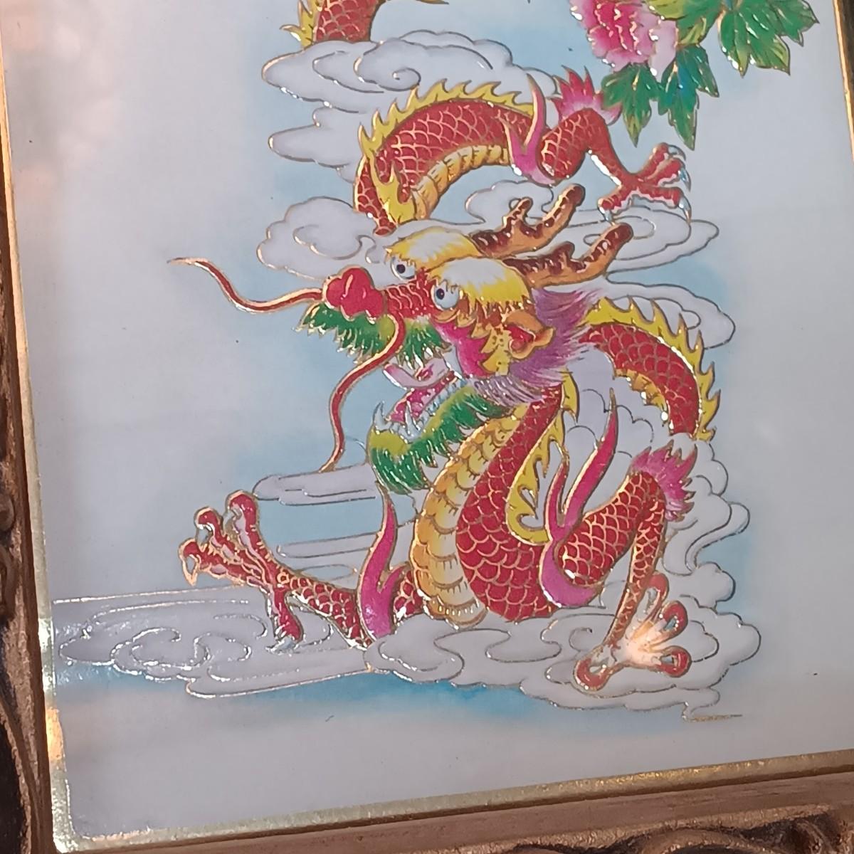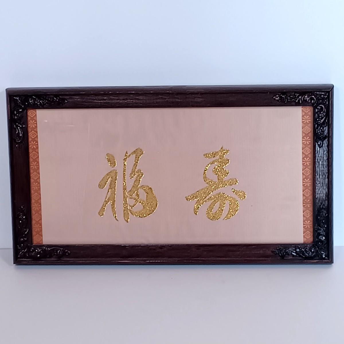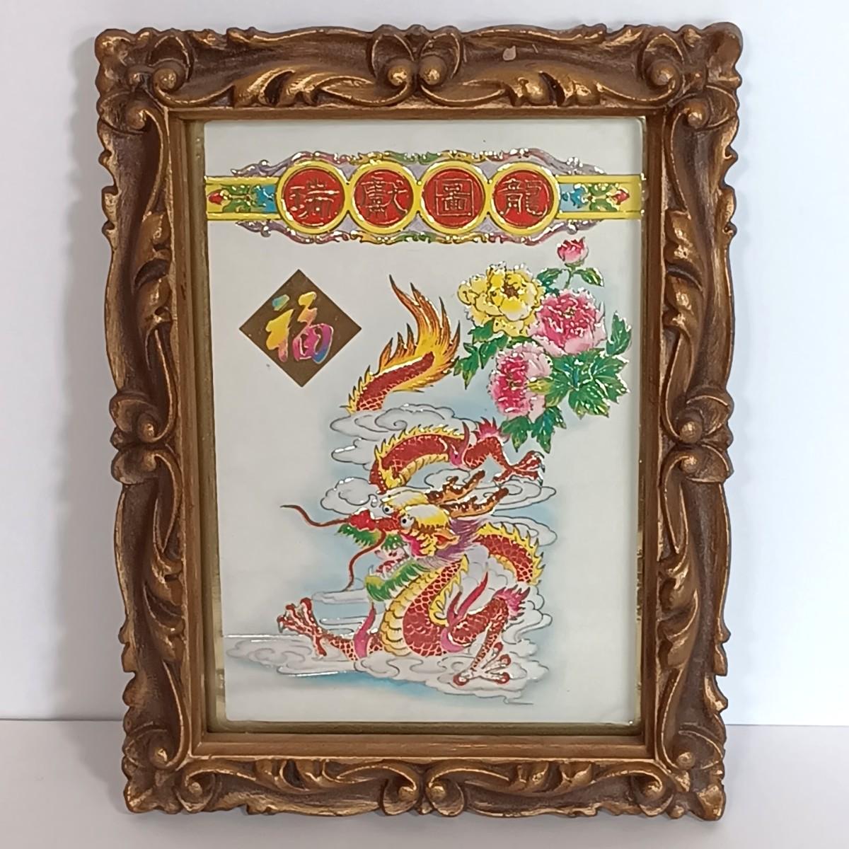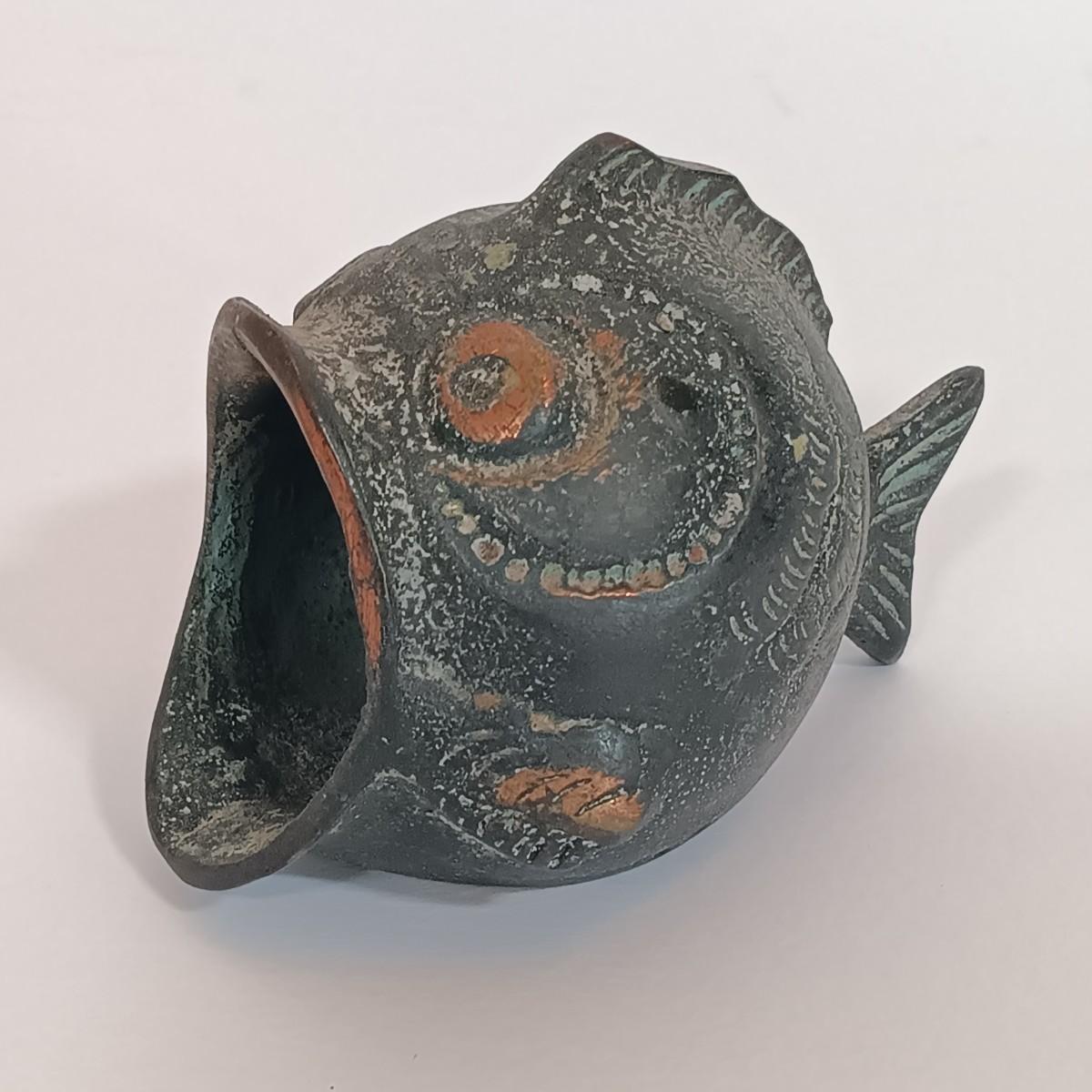 LOT 3H: Vintage Bronze Fish Ash Tray w/ Framed Art Card & Embroidered Chinese Characters on Silk