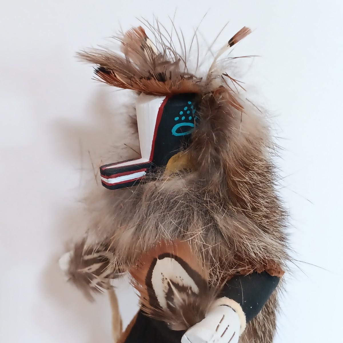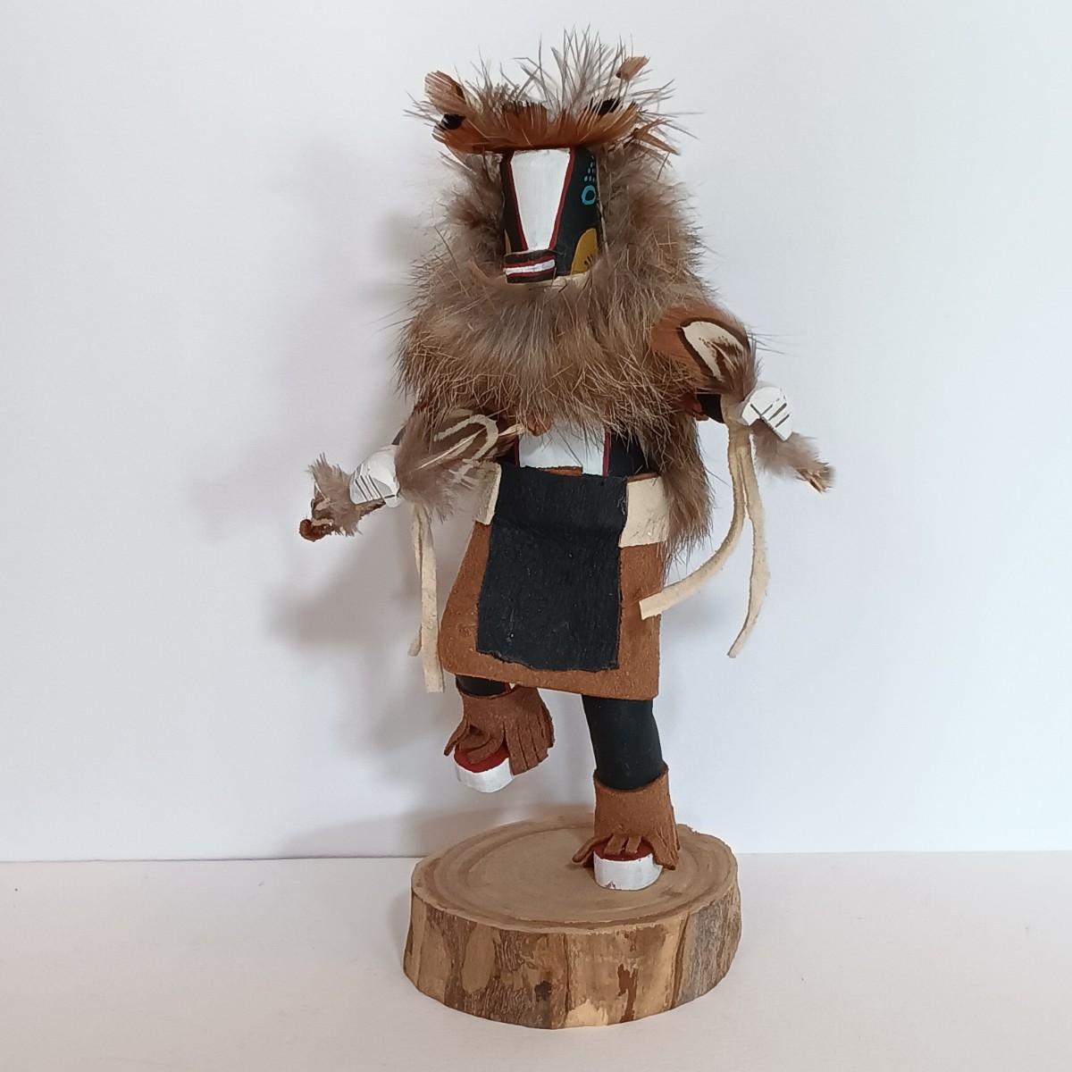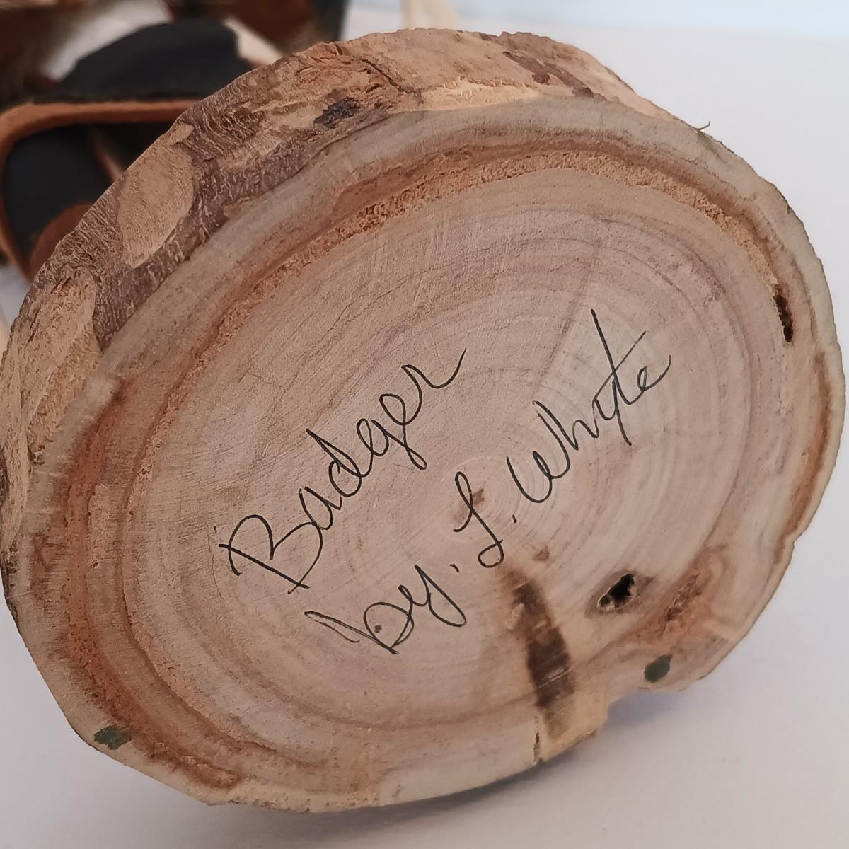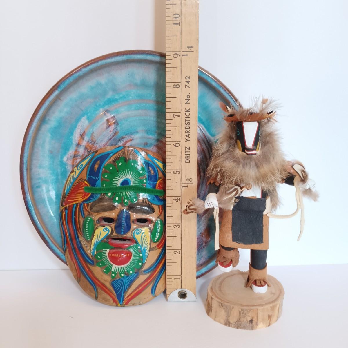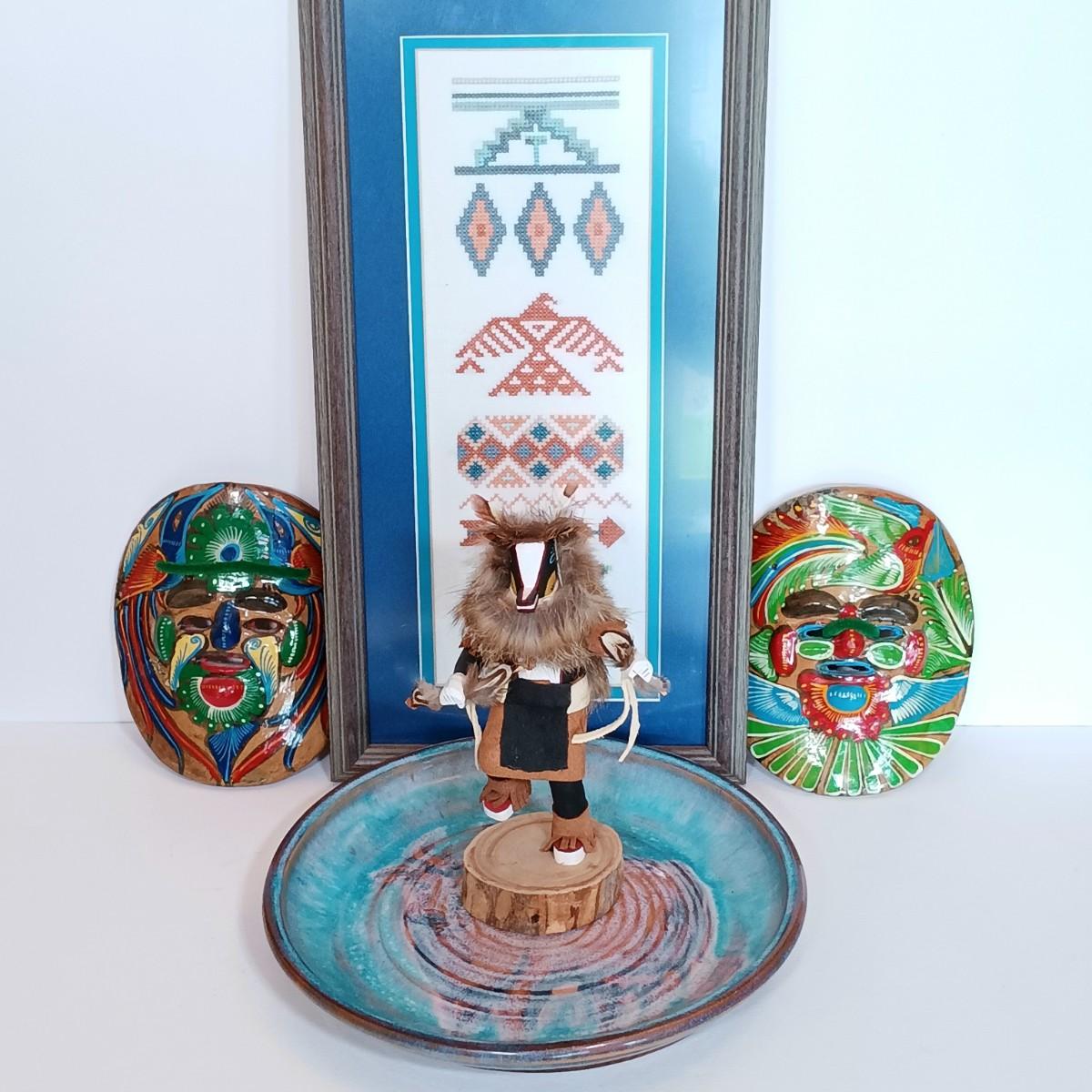 LOT 11L: L. White Signed Badger Kachina Figurine, Signed Water Buffalo Plate, Framed Embroidery & More