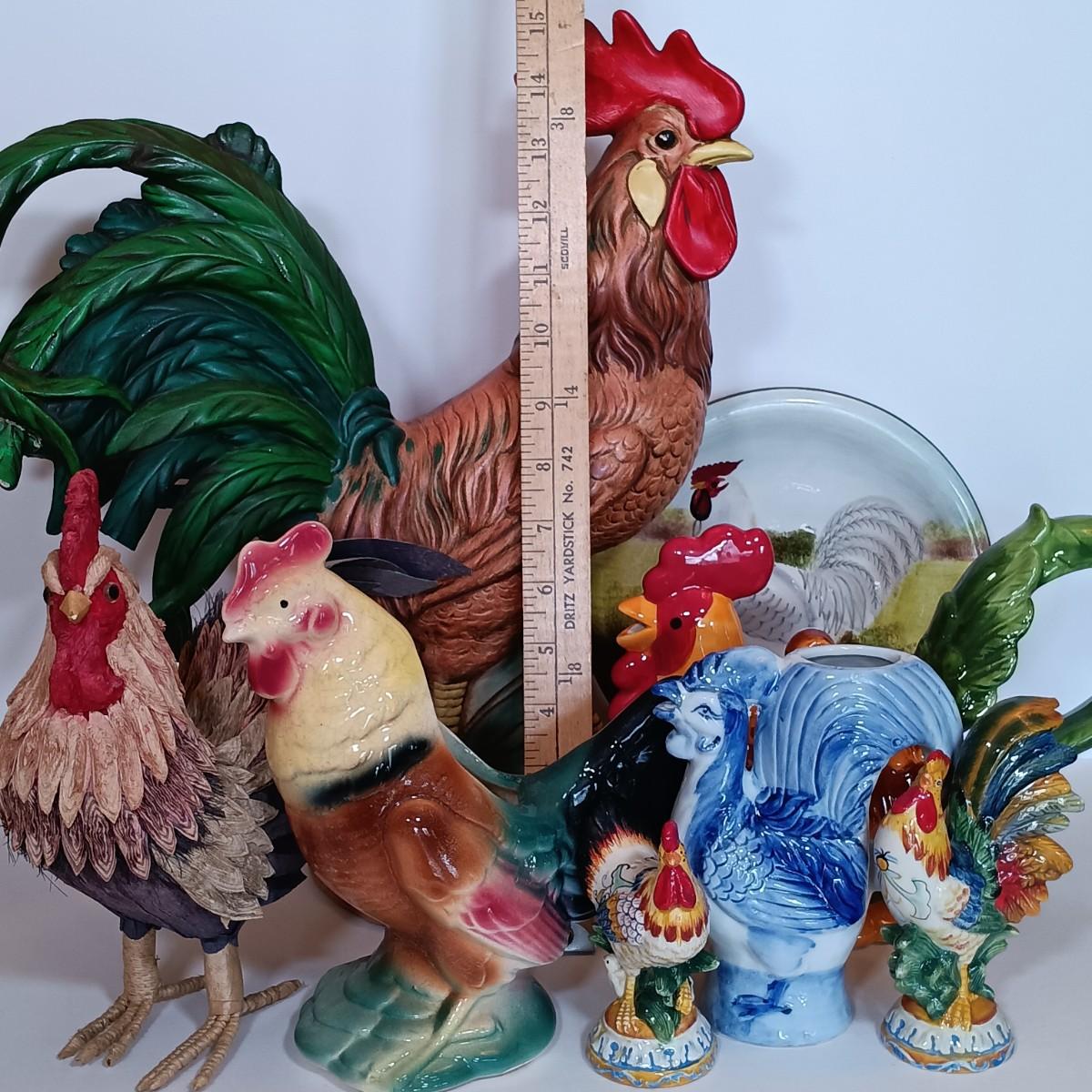 LOT 12L: Fitz and Floyd Salt and Pepper Shakers, Collections ETC Rooster Teapot, Chalkware Rooster & More