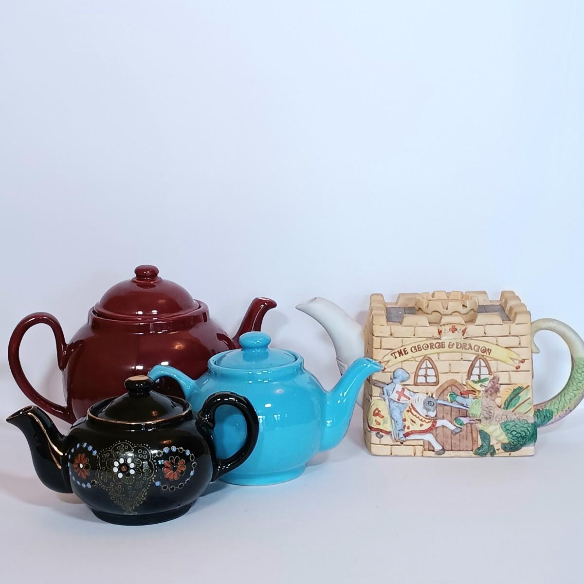LOT 14L: Christopher Wren 'George and the Dragon' Pub Teapot, Price & Kensington Teapot, Japanese Enameled Teapot & More