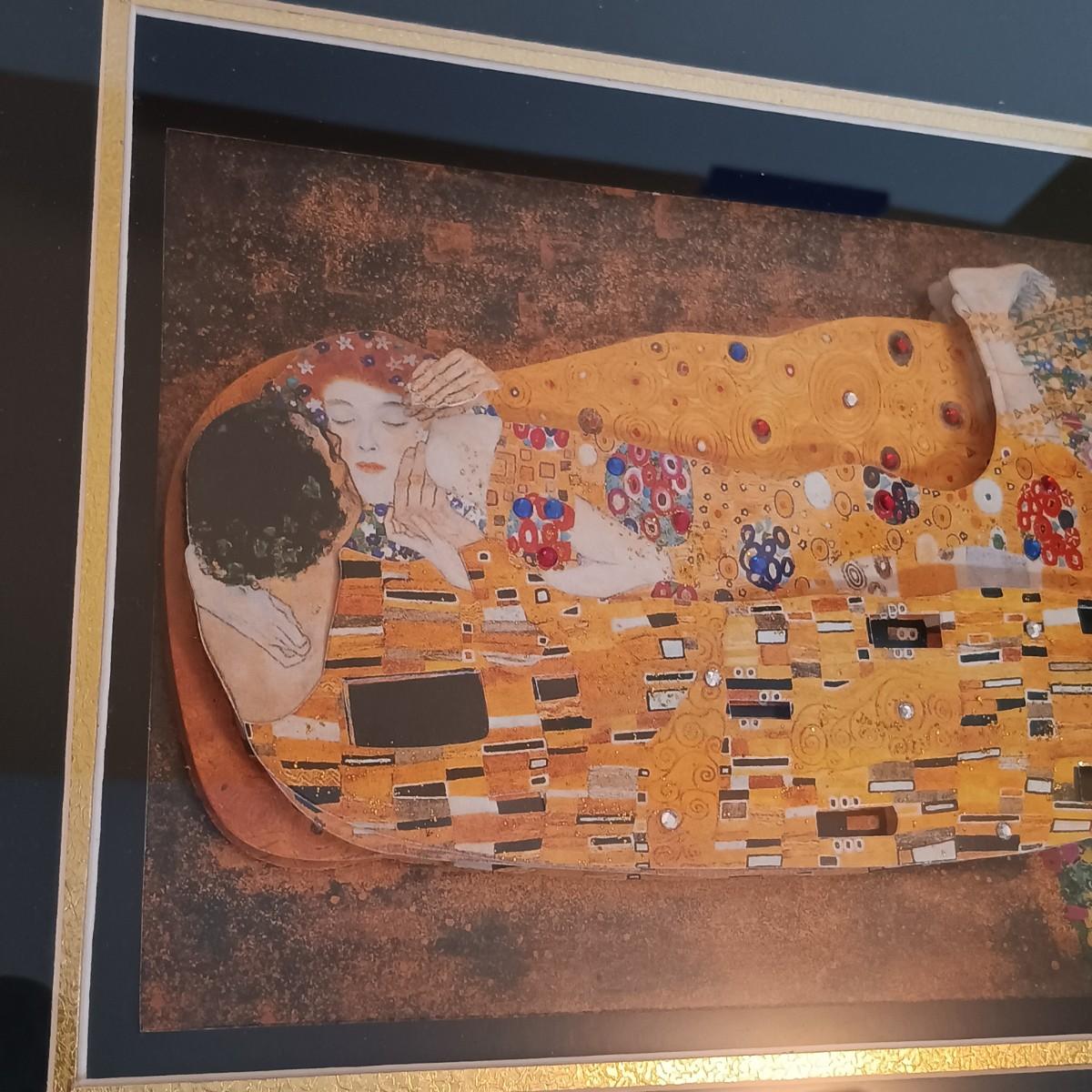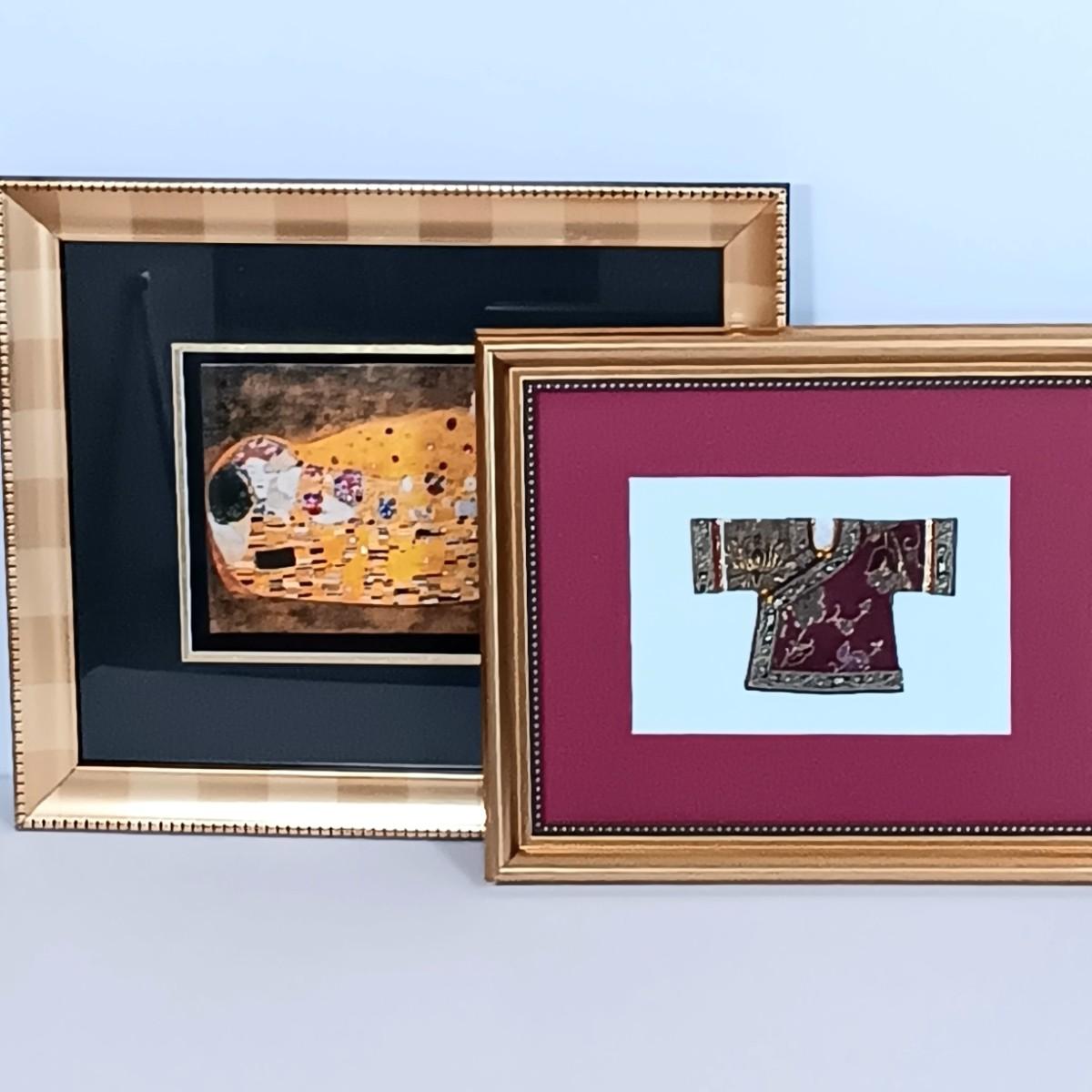 LOT 16L: Gustav Klimt 'The Kiss' 3D Paper Art & Miniature Chinese Embroidered Silk Robe