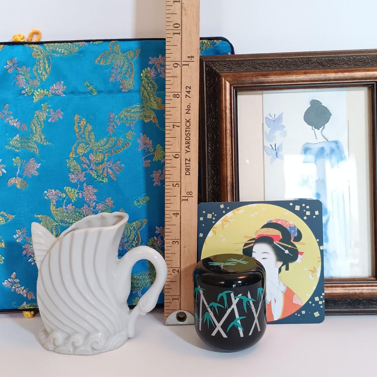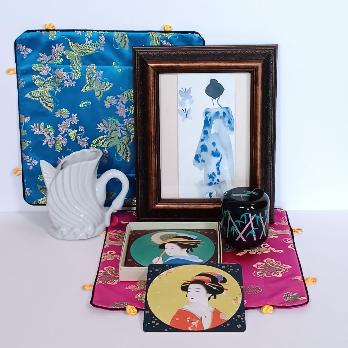 LOT 20L: Anne Cluzel 'Madame Butterfly' Print, Northwest Airlines Tea Caddy, Geisha Themed Coasters & More