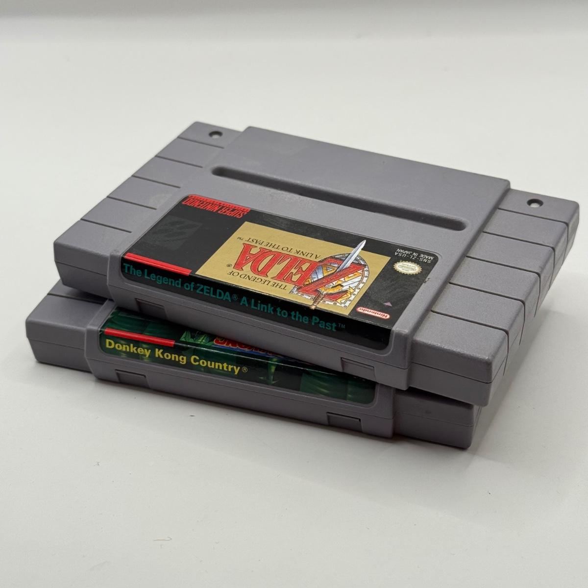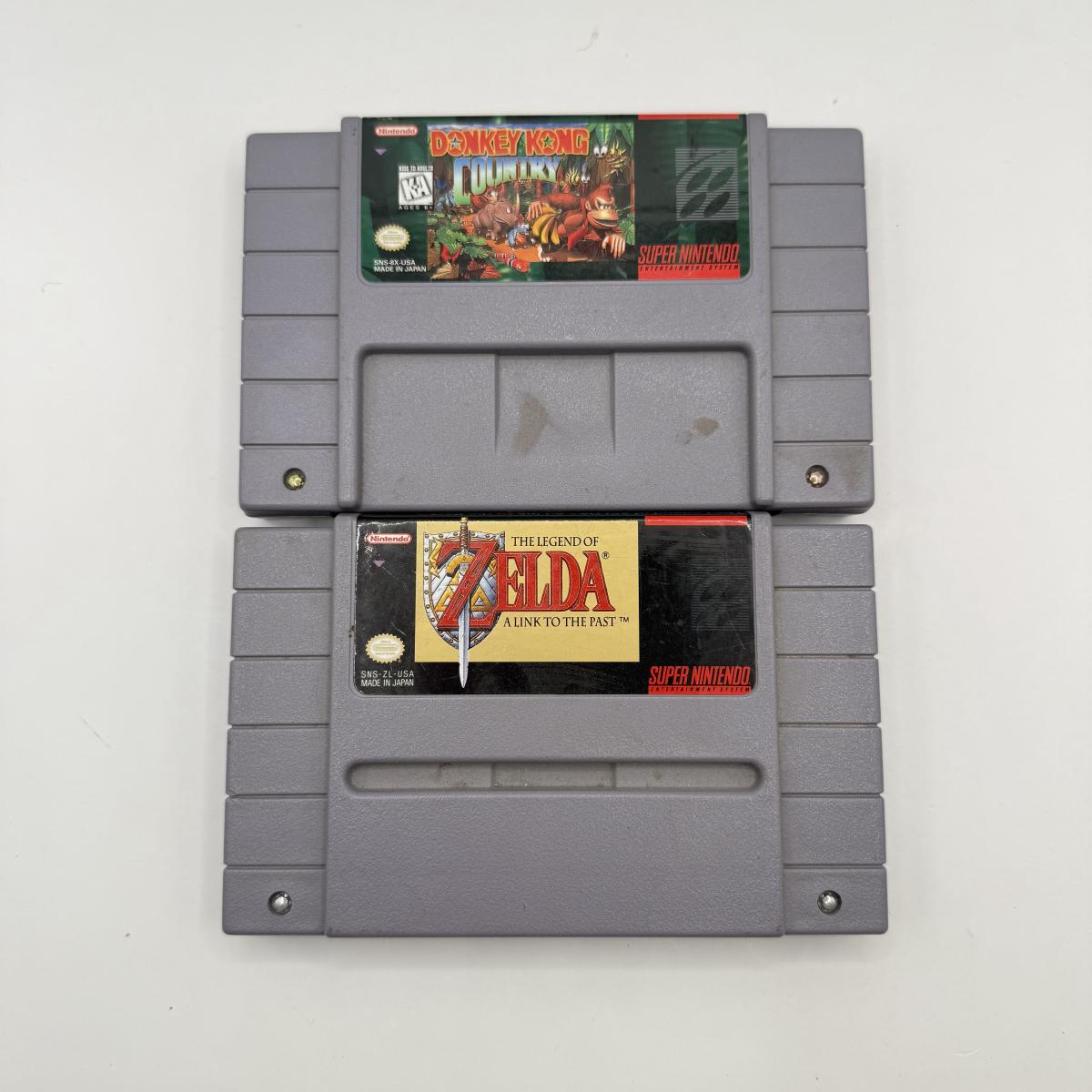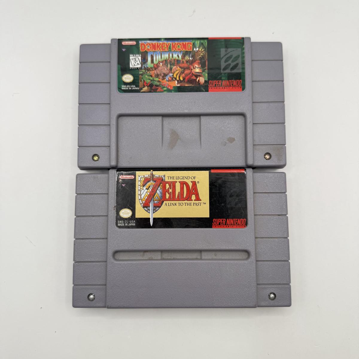LOT 32H: Vintage Super Nintendo Video Game Cartridges: Donkey Kong Country & Legend of Zelda: Link to the Past