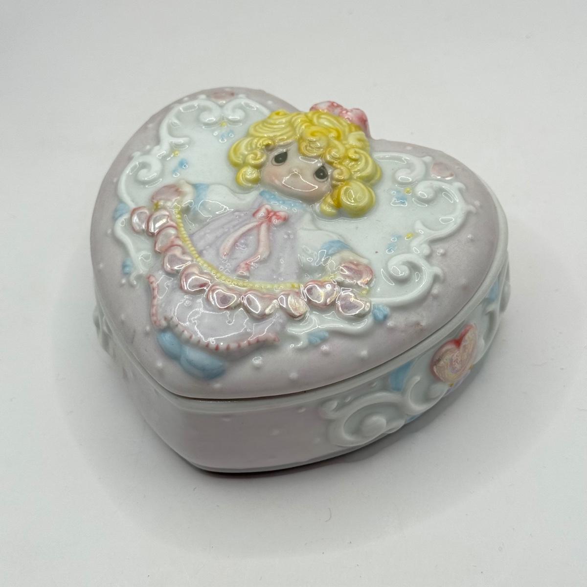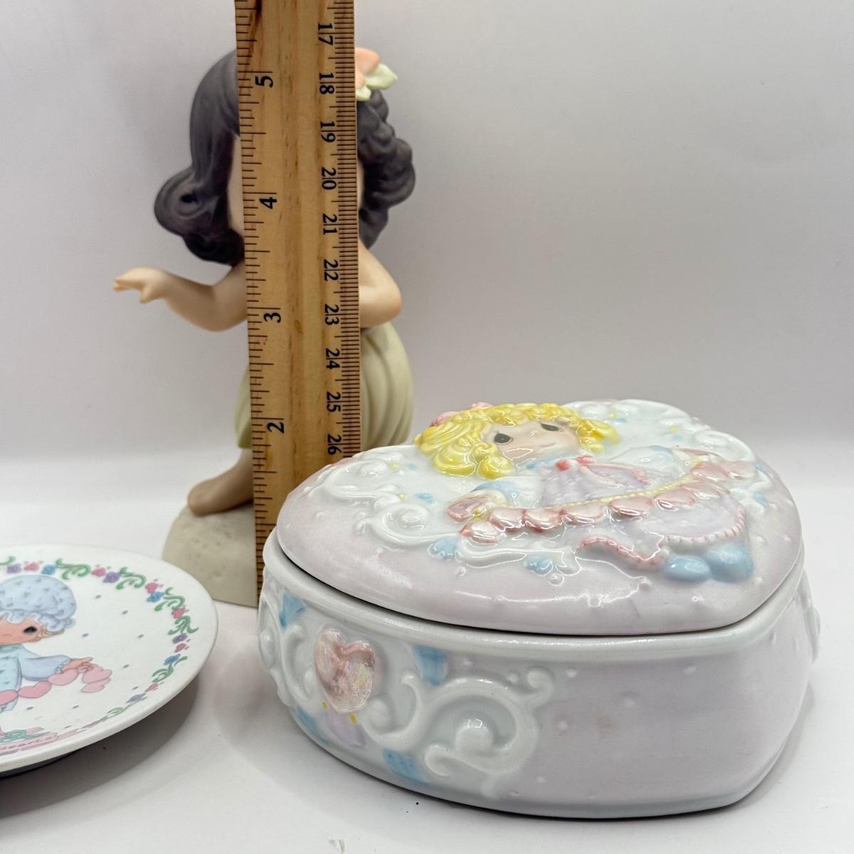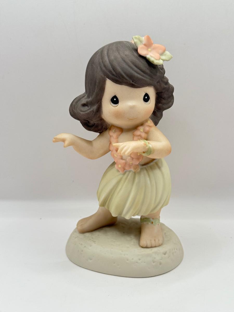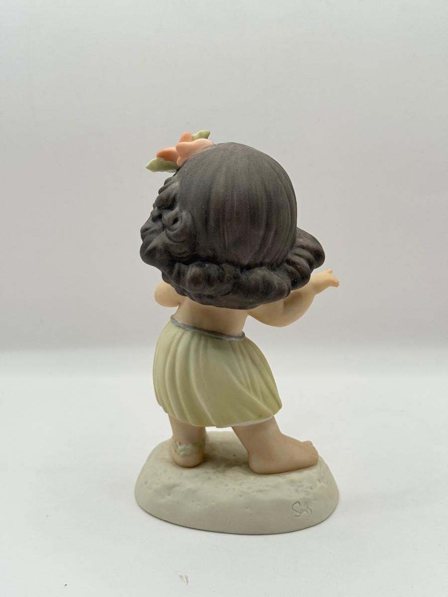 LOT 38H: Precious Moments: 1995 Happy Hula Days Figurine, 1995 Heart Trinket Box & Small Trinket Dish