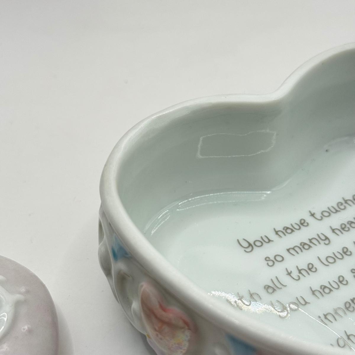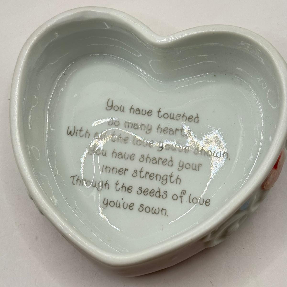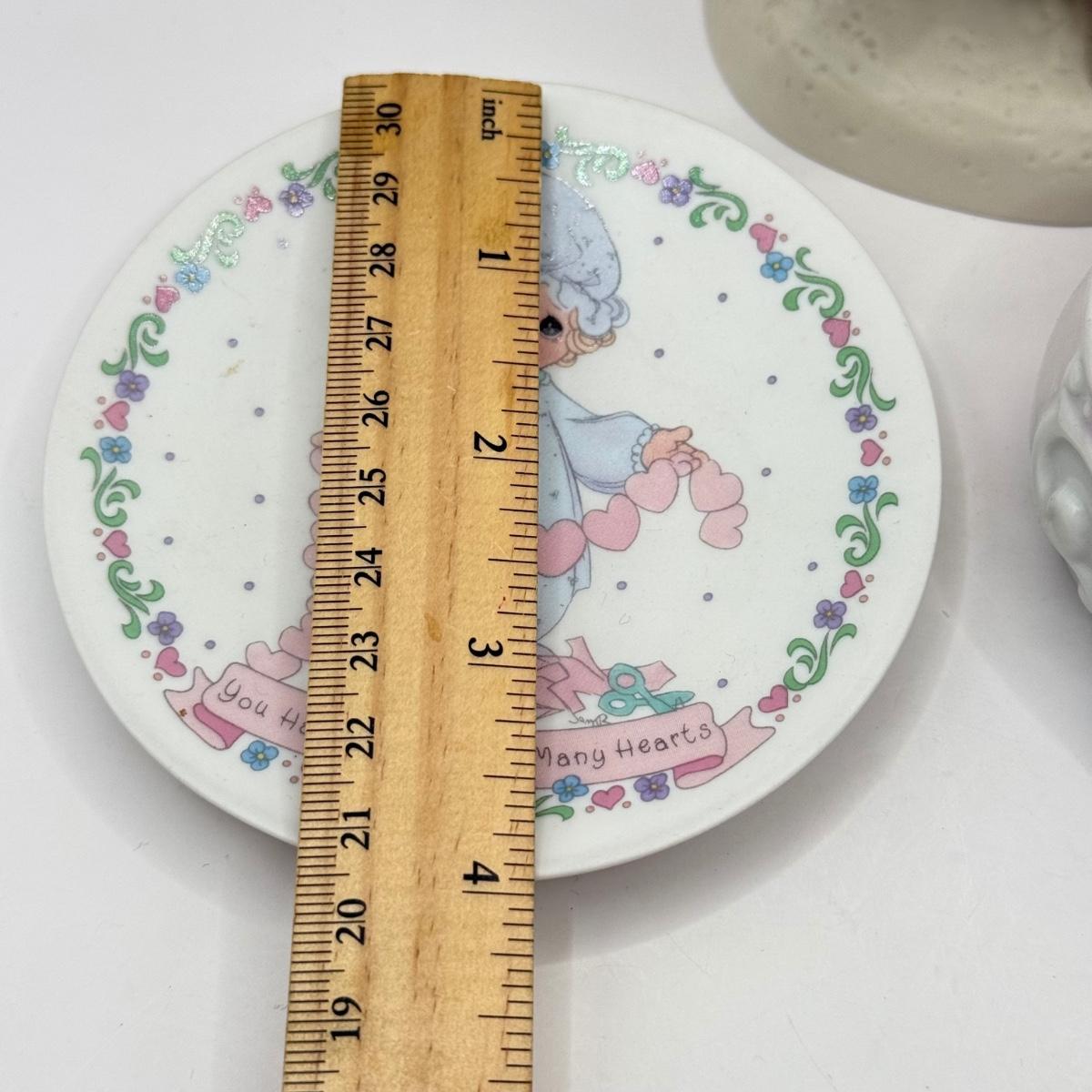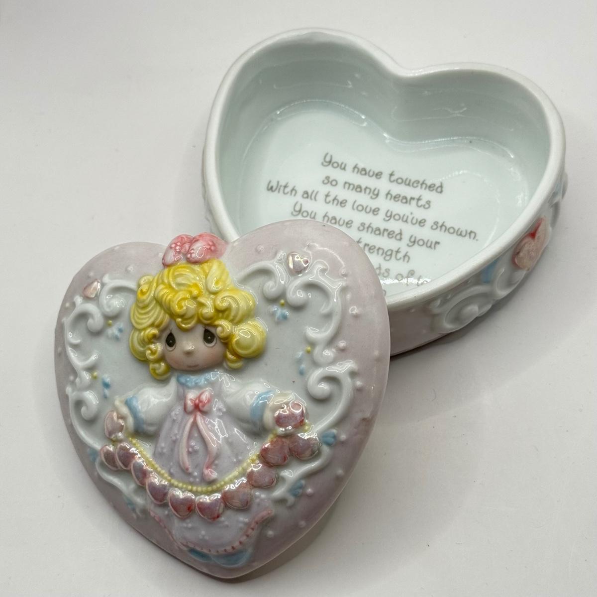 LOT 38H: Precious Moments: 1995 Happy Hula Days Figurine, 1995 Heart Trinket Box & Small Trinket Dish