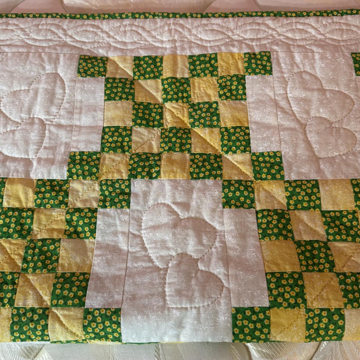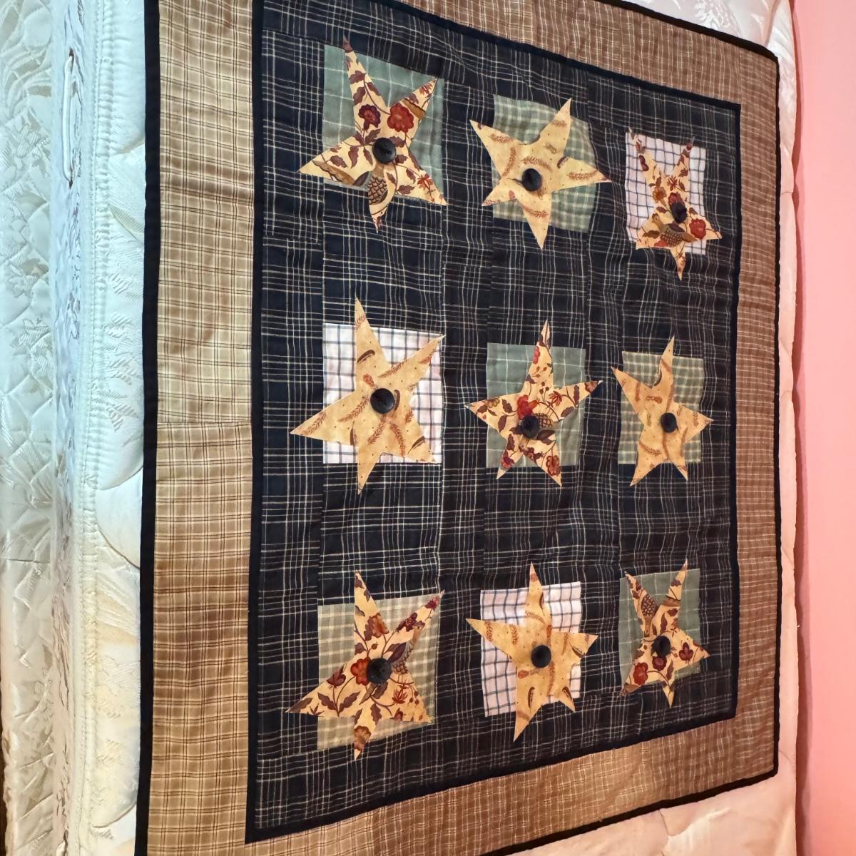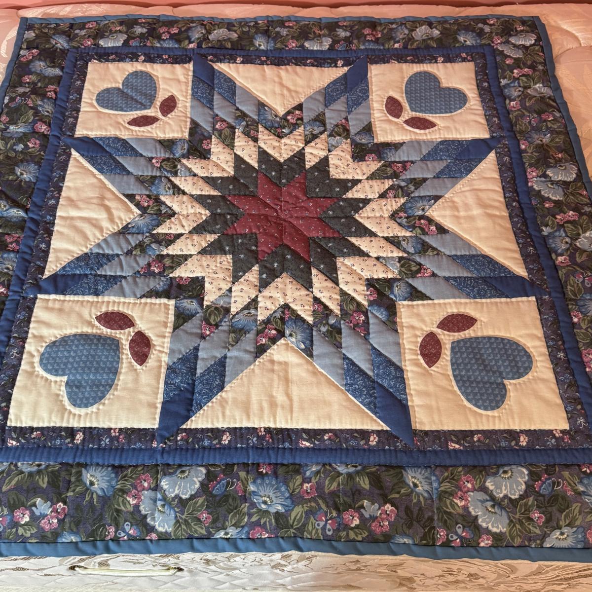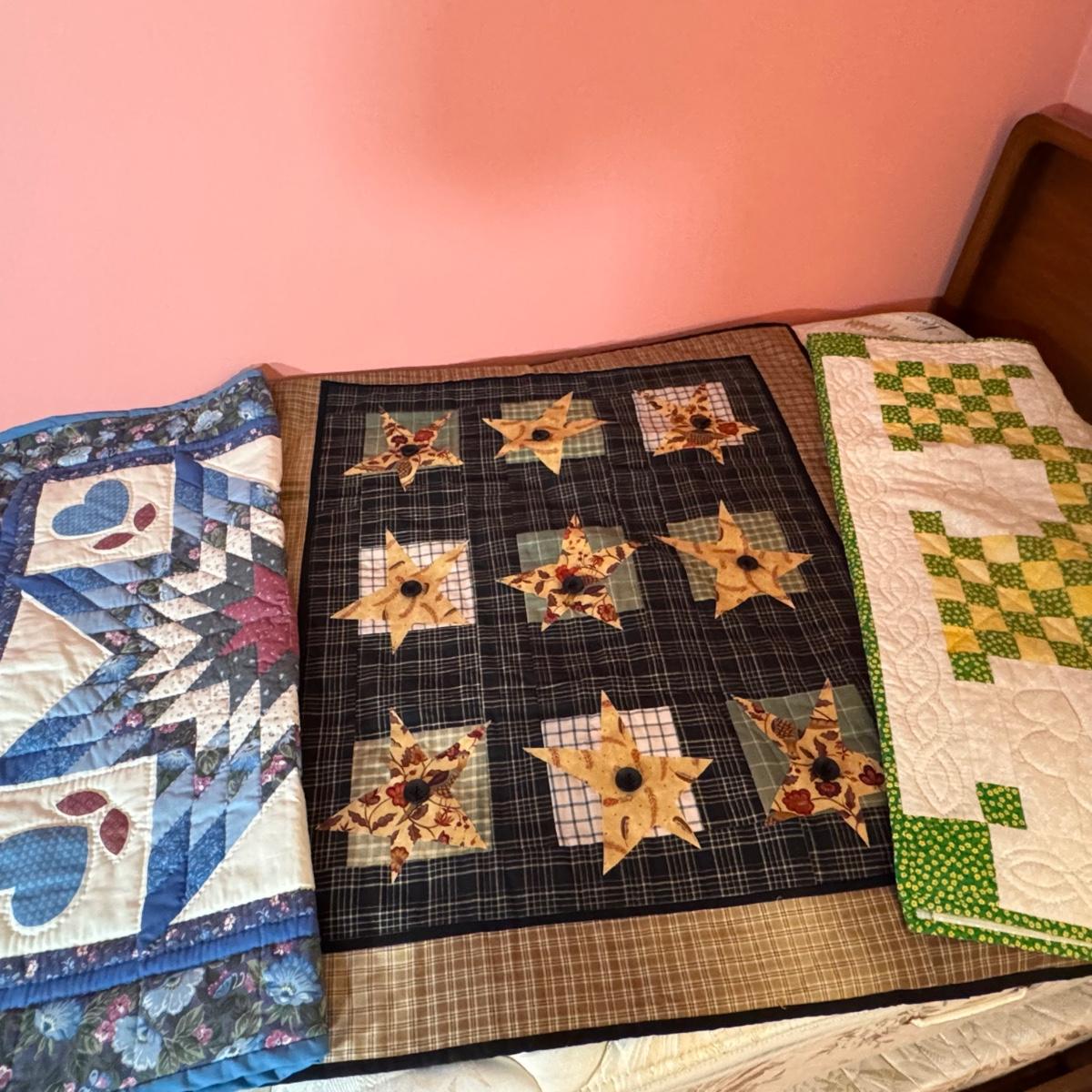 Measurements: Double Irish Chain 35 1/2" L X 28" W, Repeating Star 38 1/4" L X 32 1/2" W, Stars & Hearts Floral 34 1/2" W X 34 1/2" L