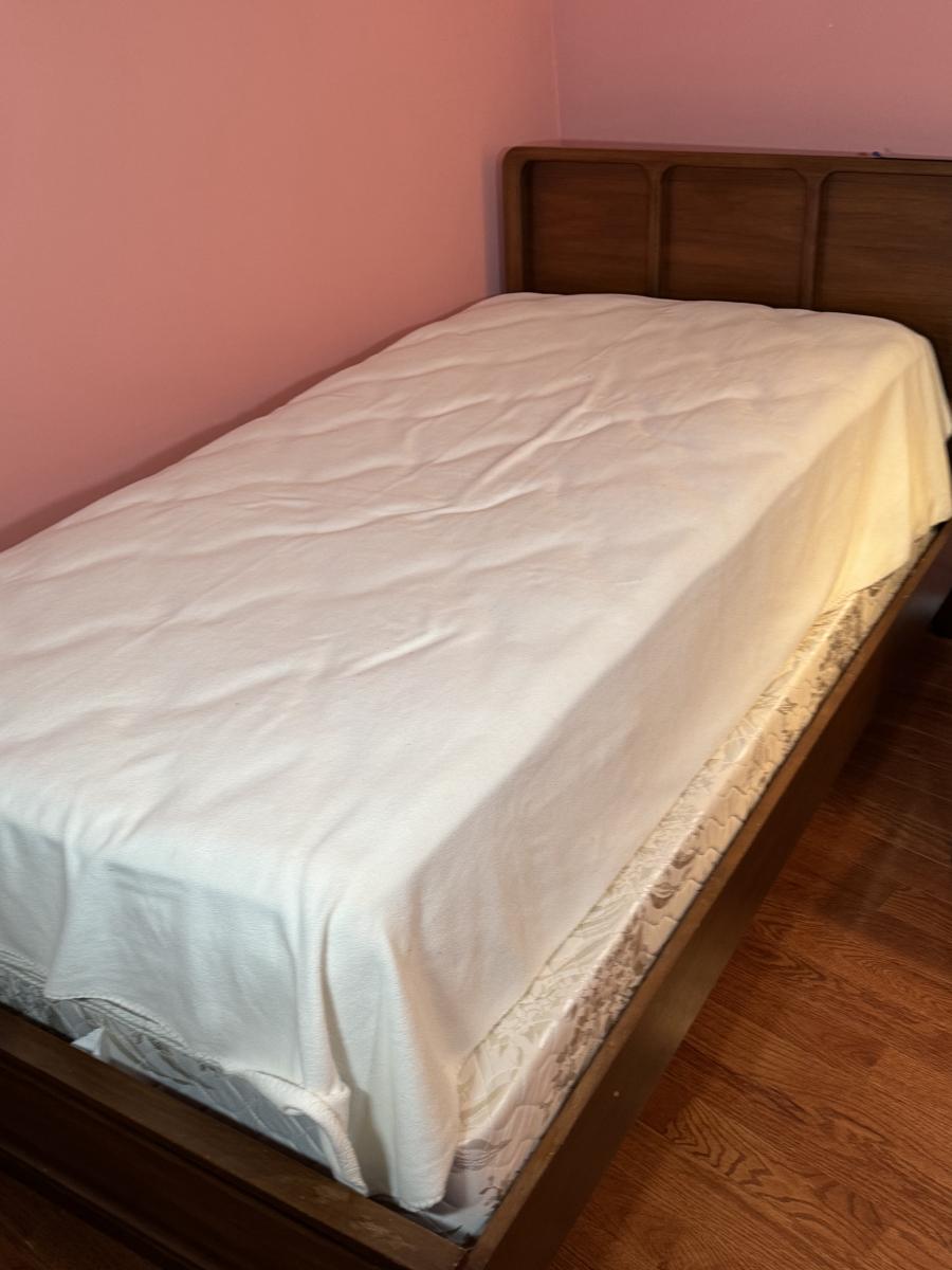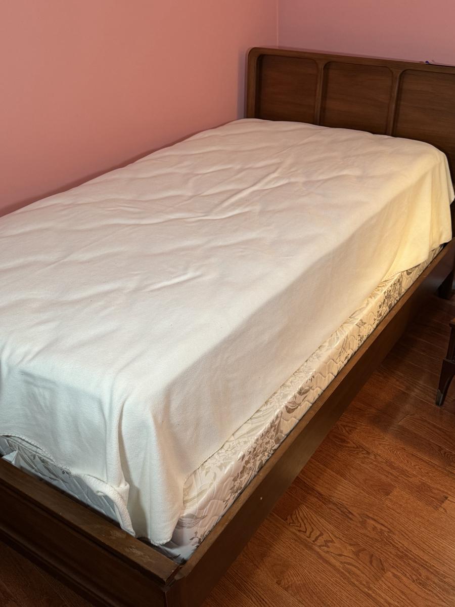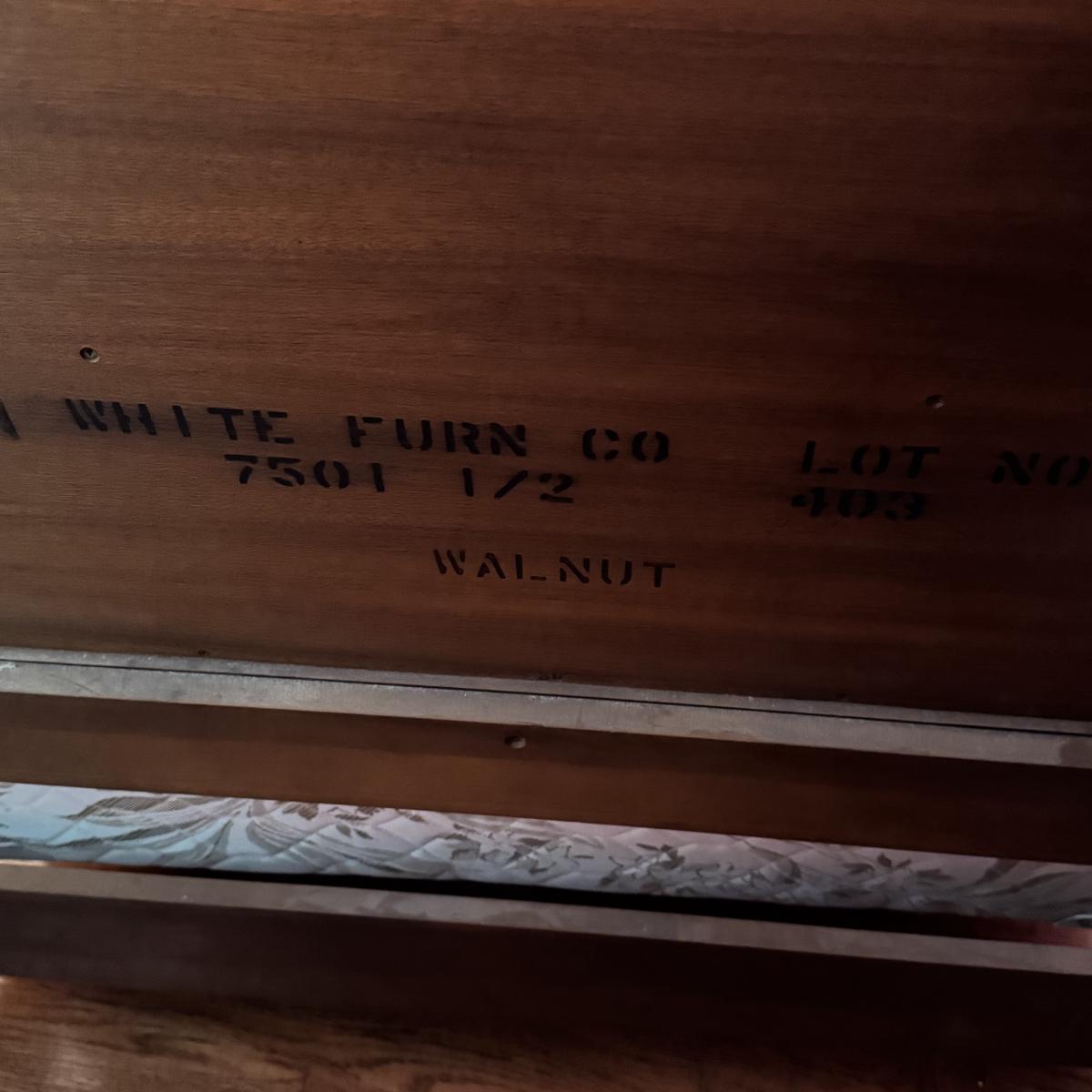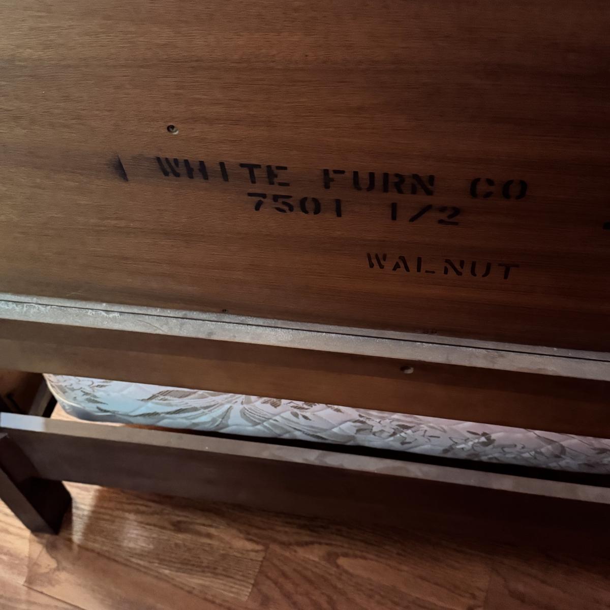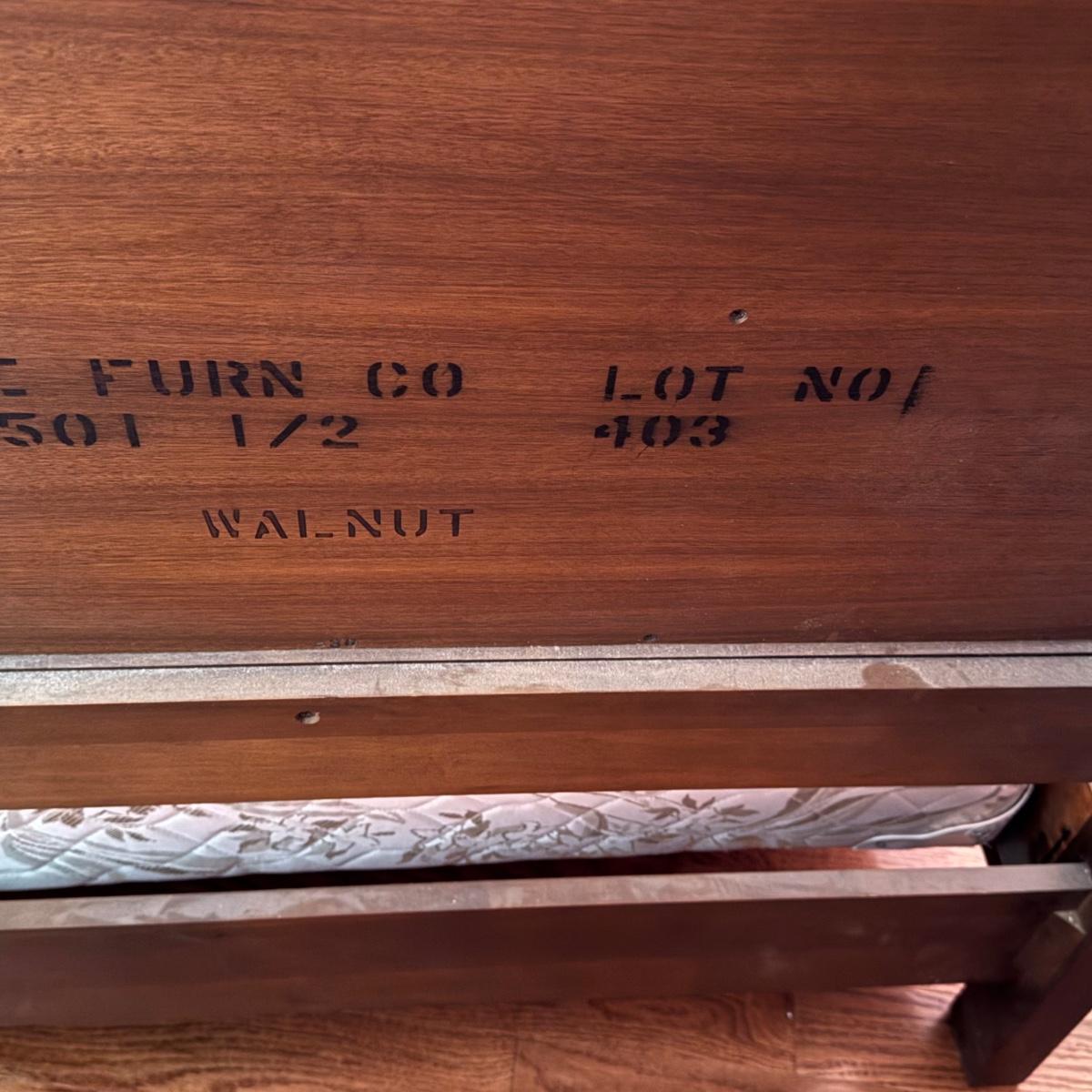 LOT 52X: Vintage White Furniture Co Walnut Twin Sized Wooden Bed Frame with Headboard and Footboard.