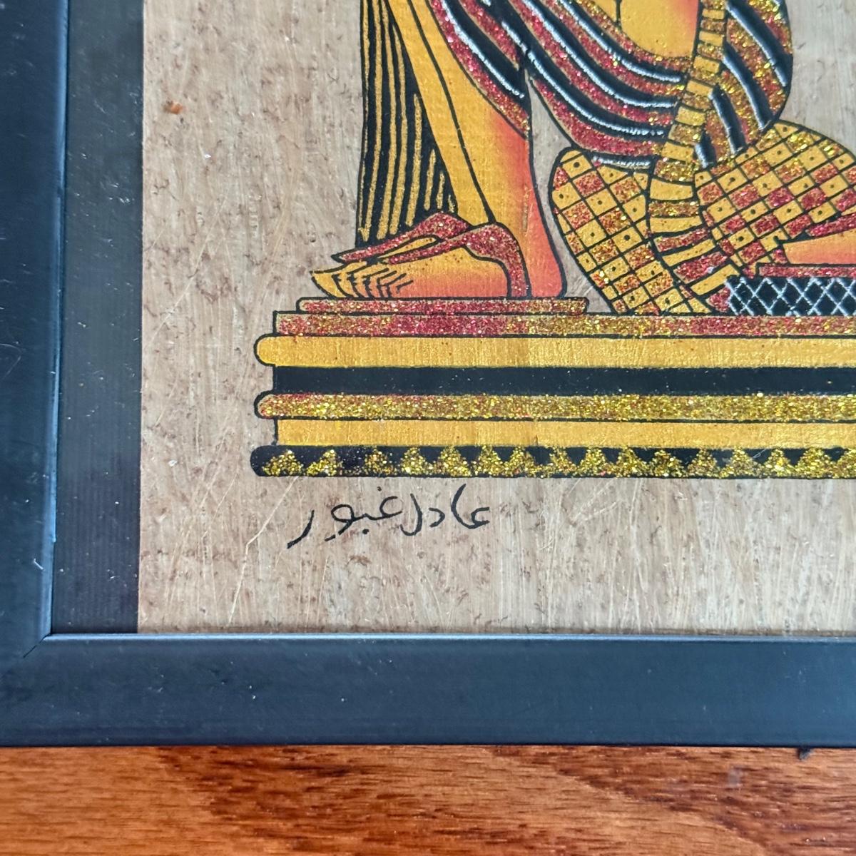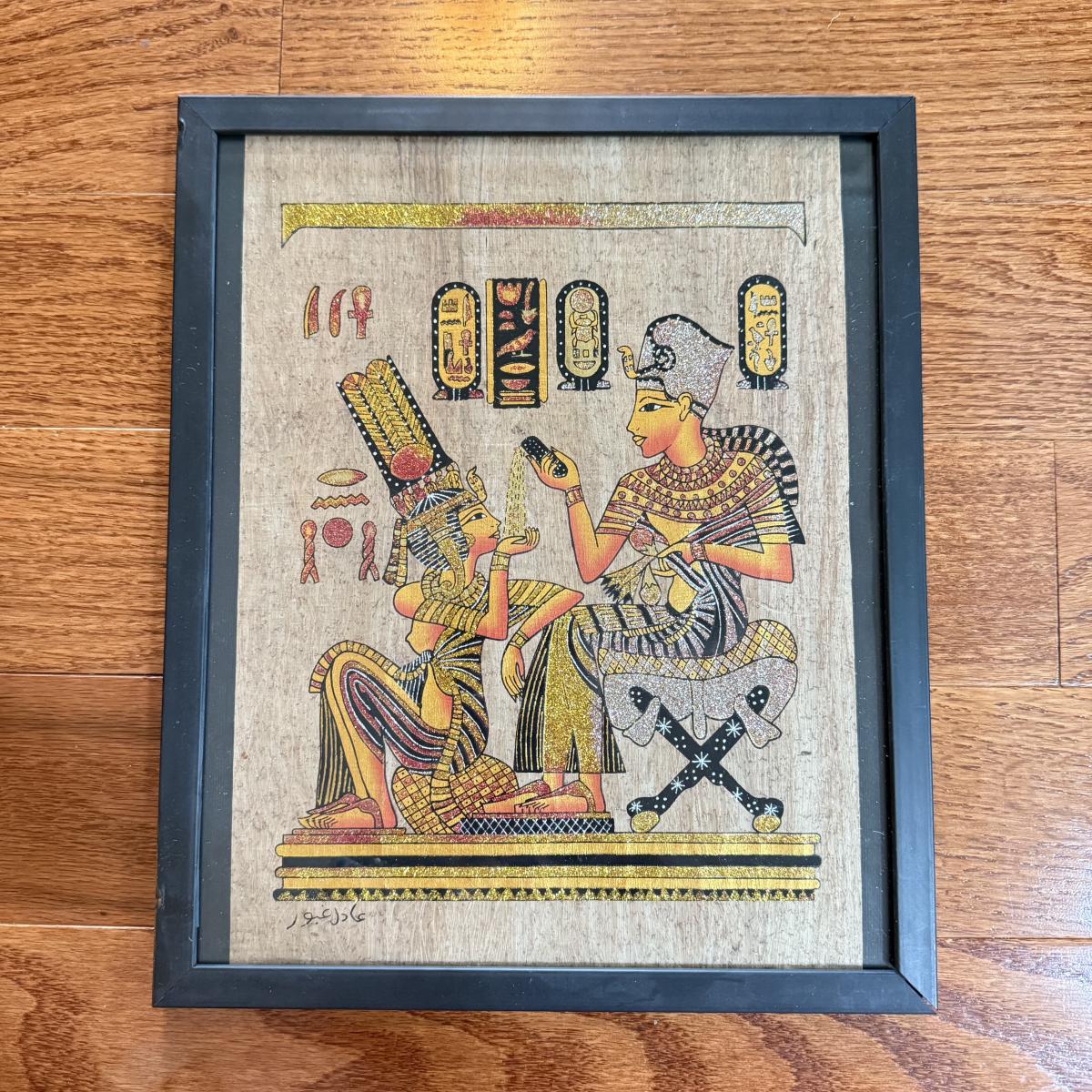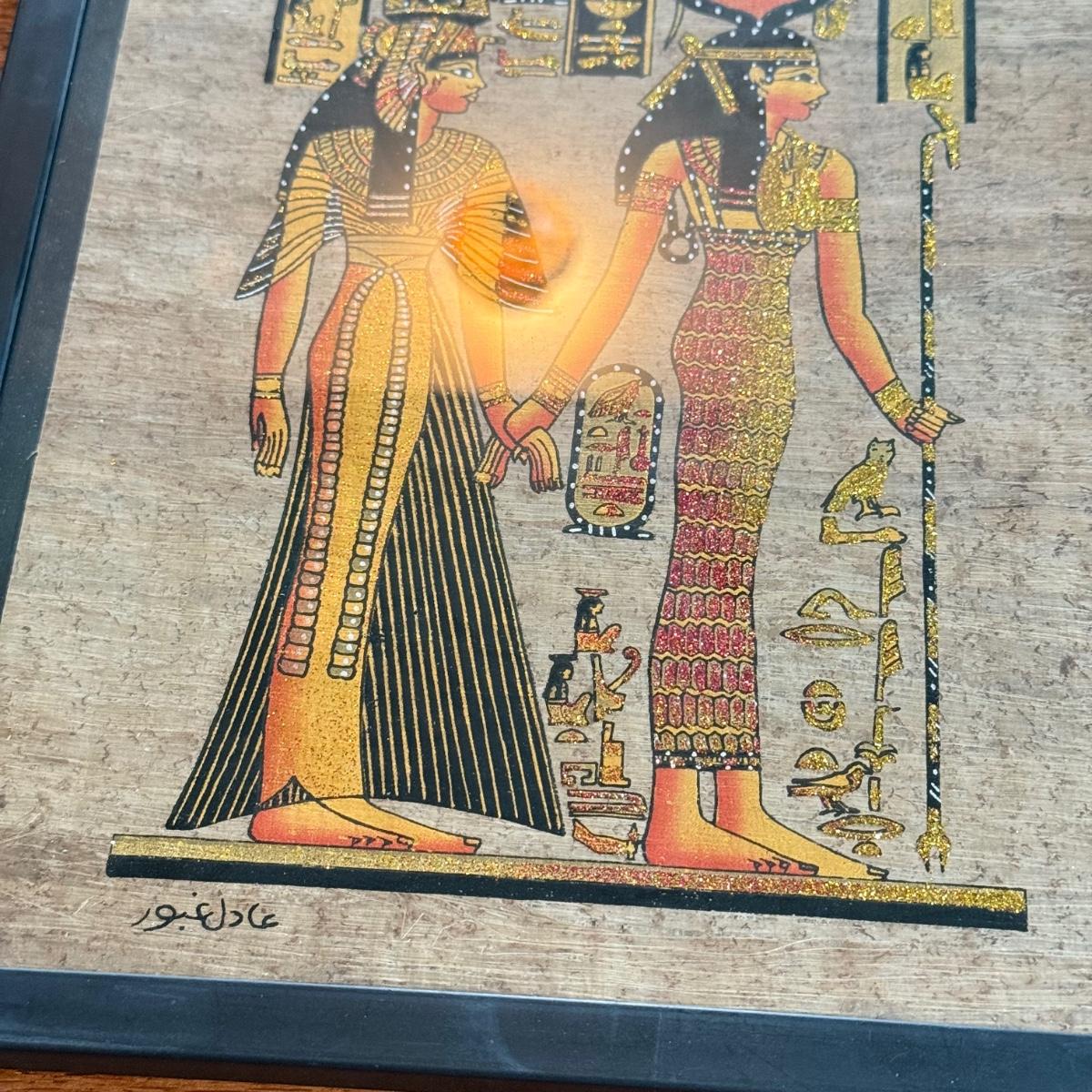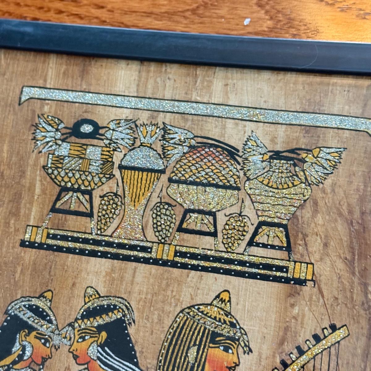 LOT 62L: Framed Glittery Hieroglyph Egyptian Revival Artwork