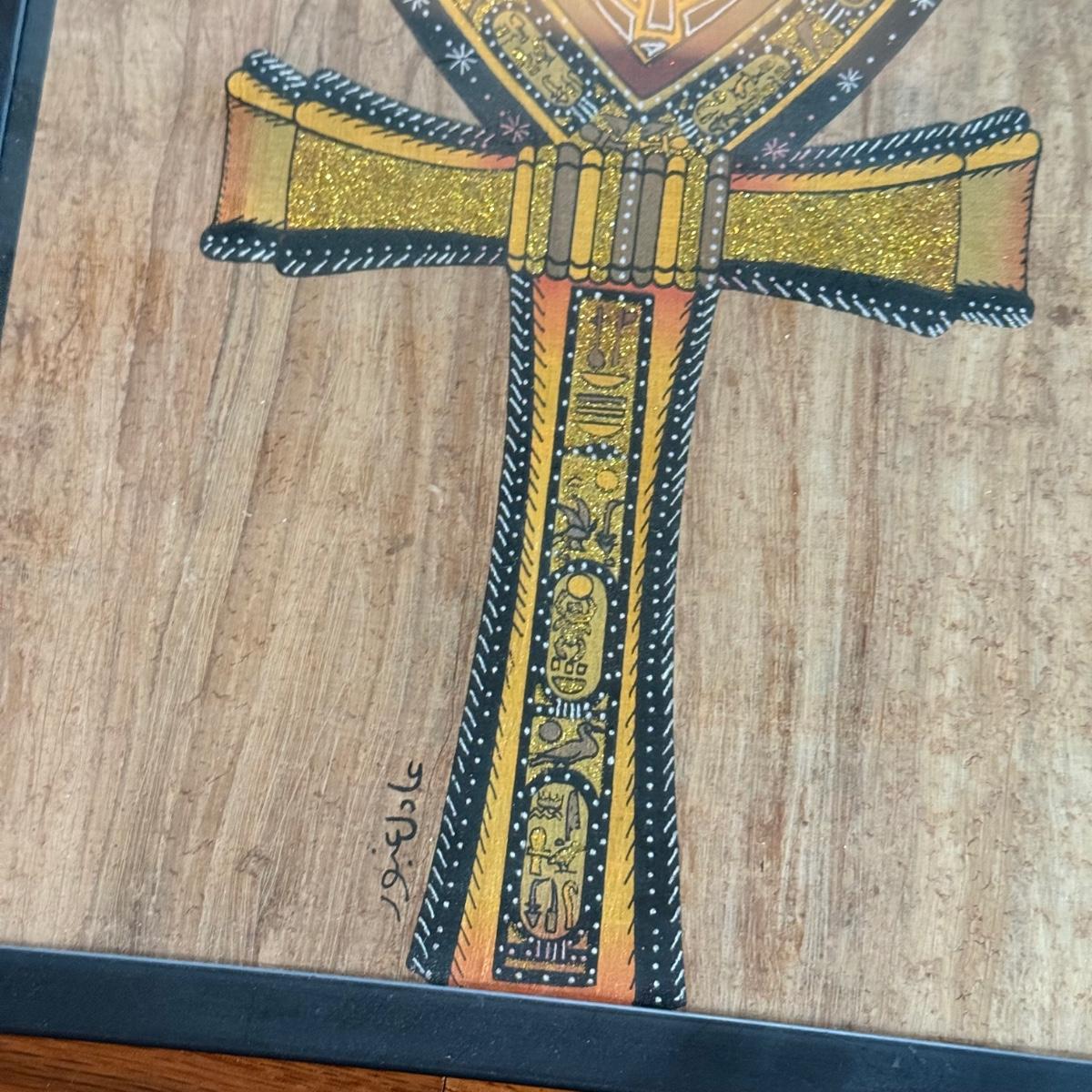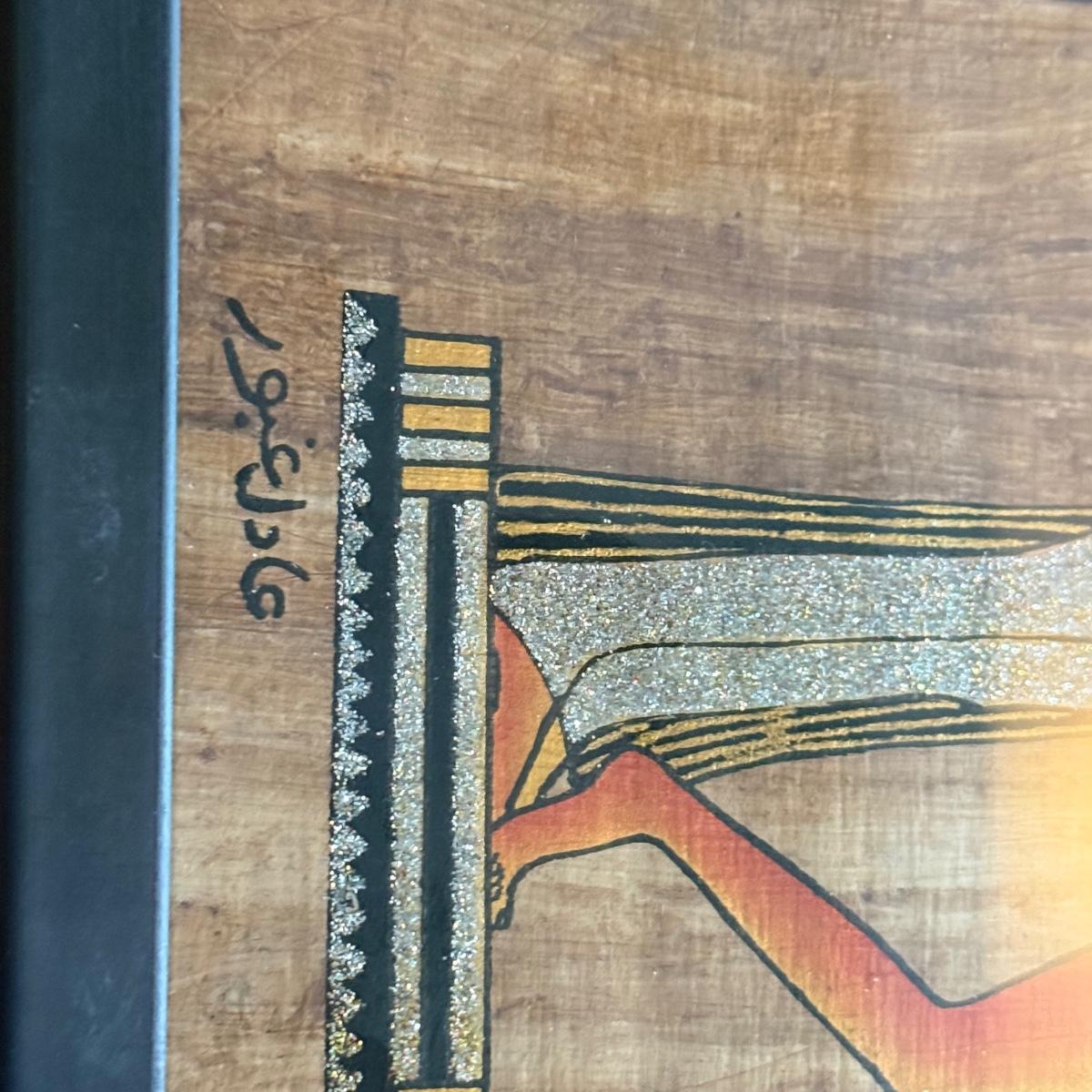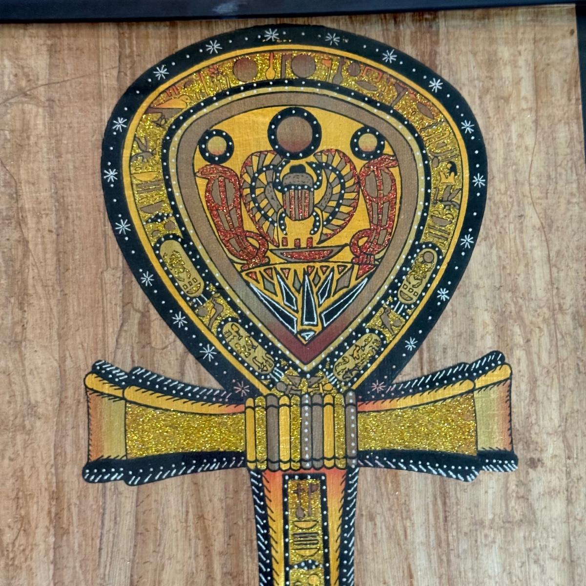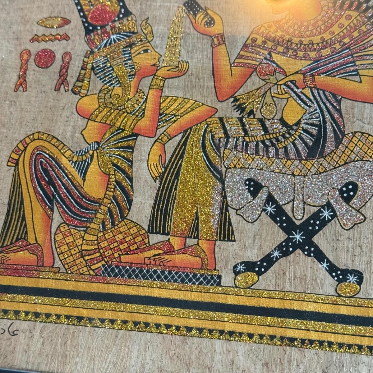 LOT 62L: Framed Glittery Hieroglyph Egyptian Revival Artwork