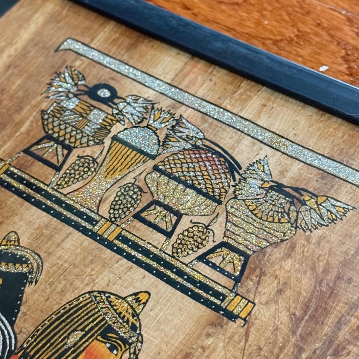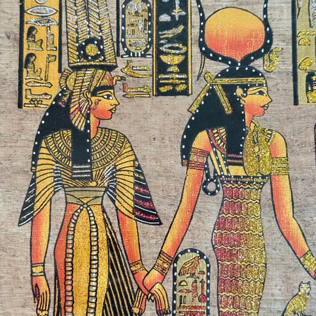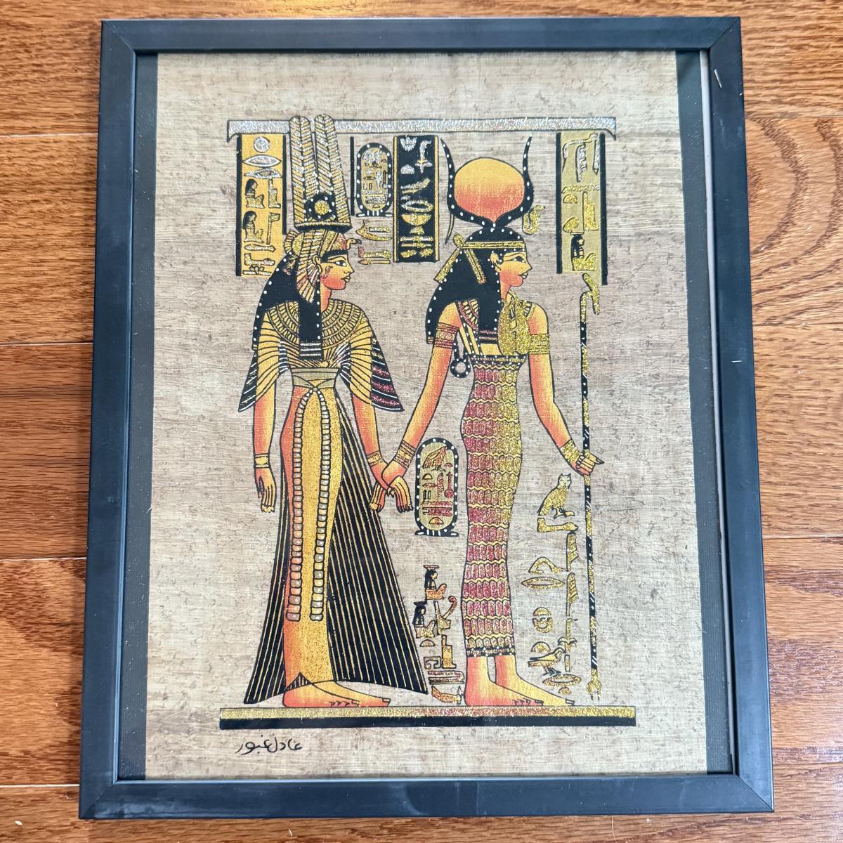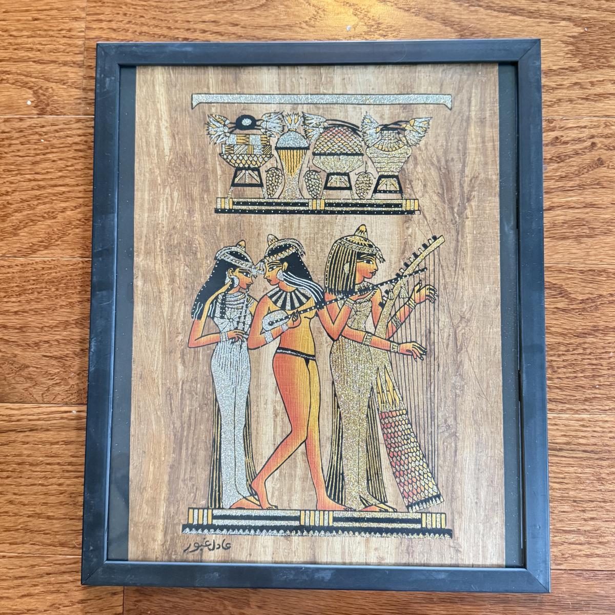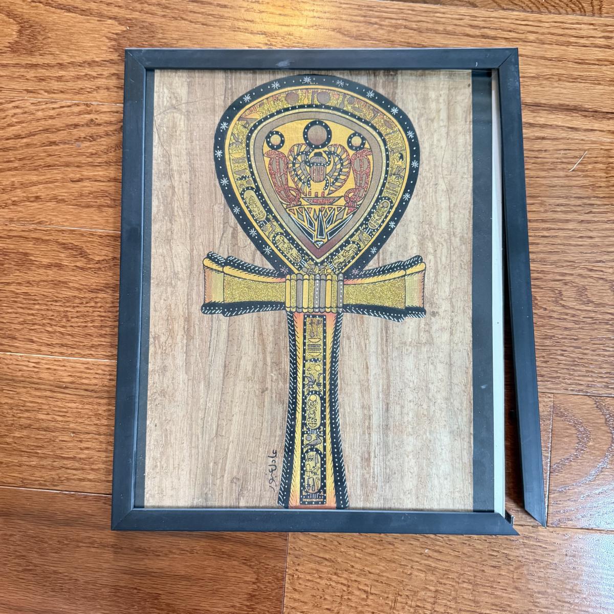 LOT 62L: Framed Glittery Hieroglyph Egyptian Revival Artwork
