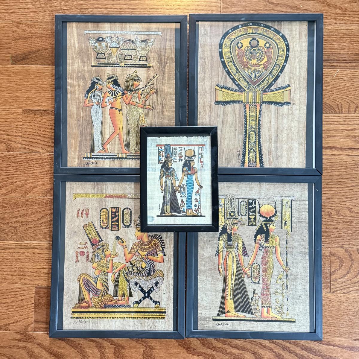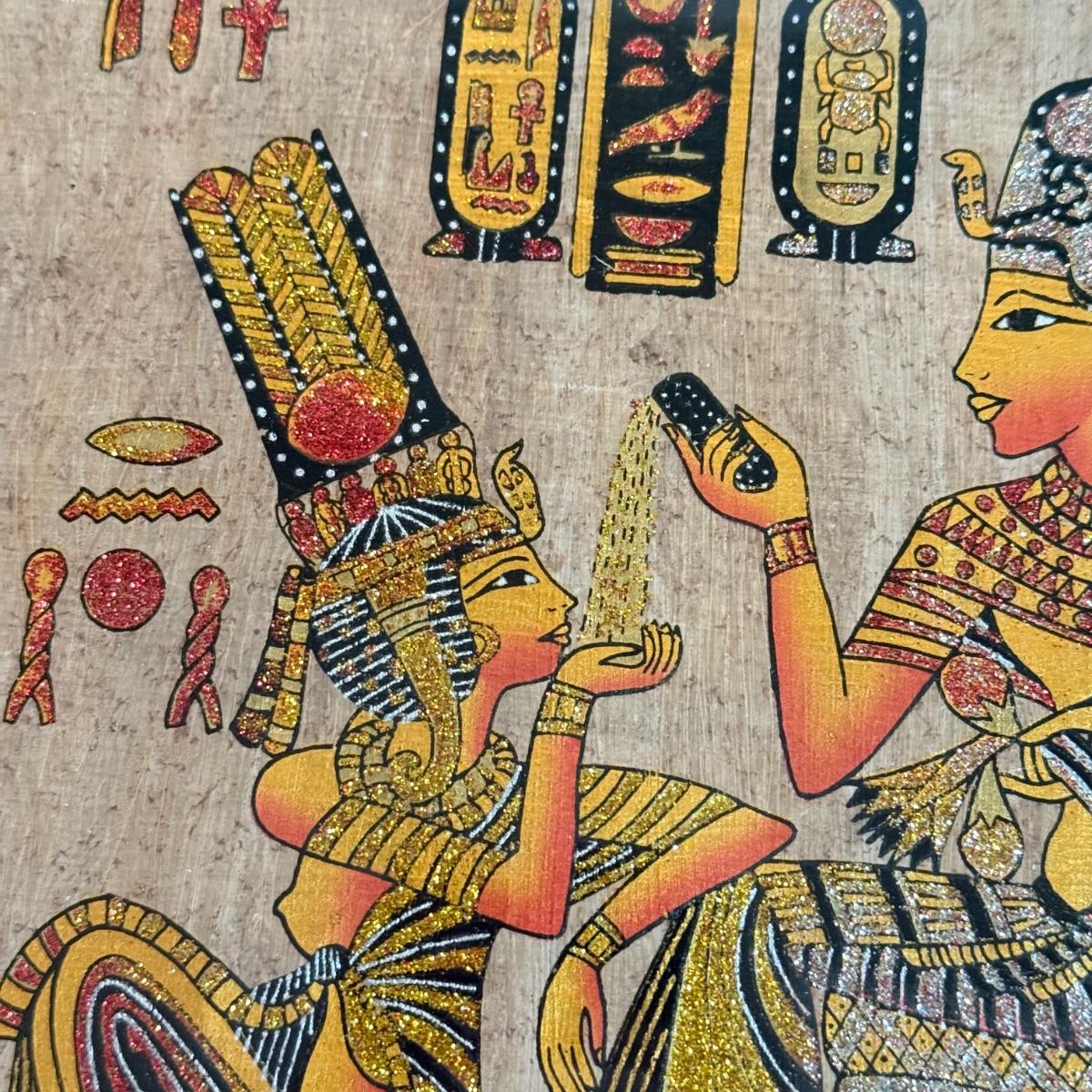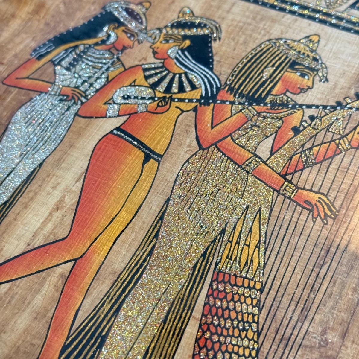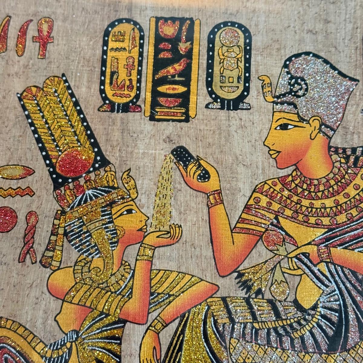 LOT 62L: Framed Glittery Hieroglyph Egyptian Revival Artwork