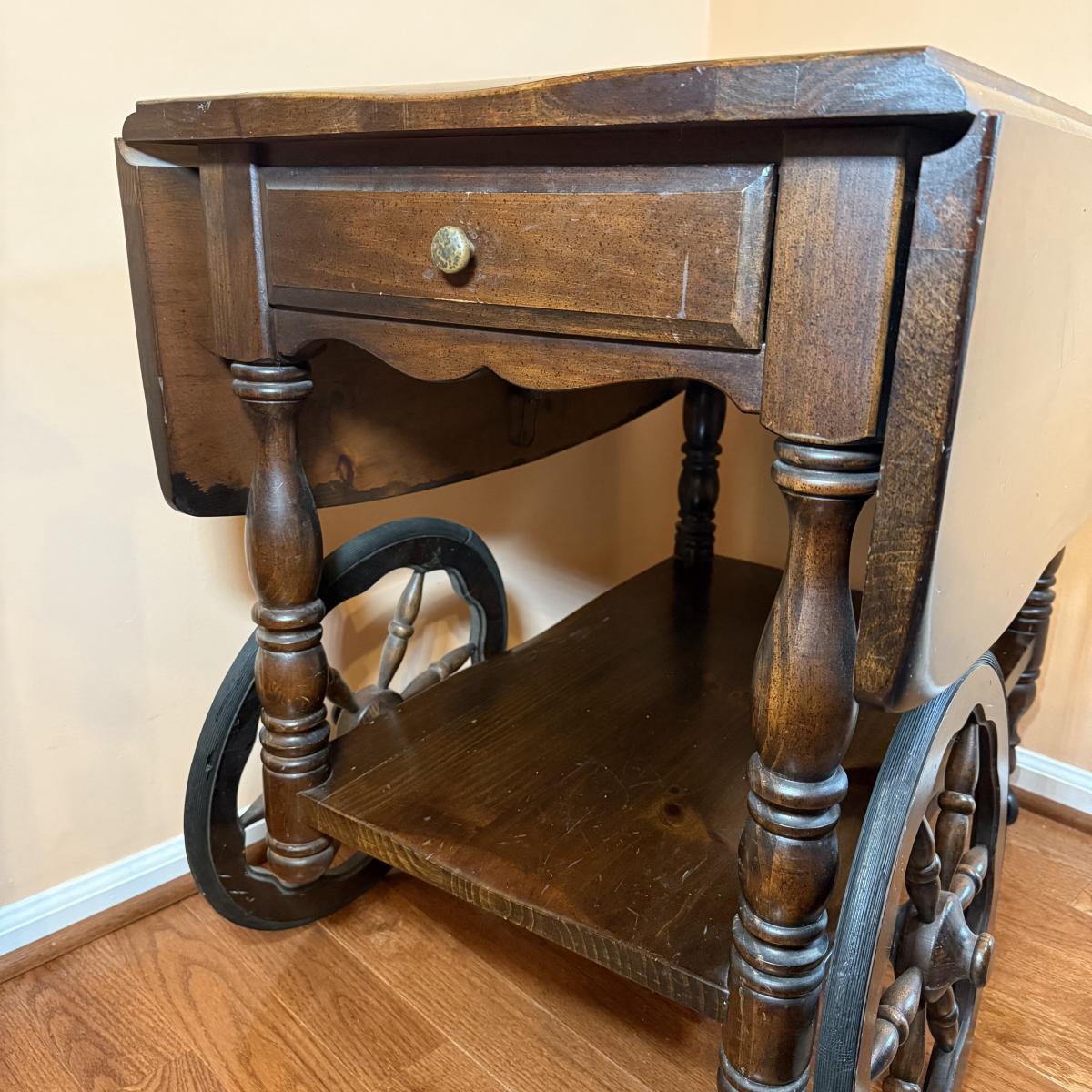 LOT 63D: Vintage Wooden Drop Leaf Tea Cart
